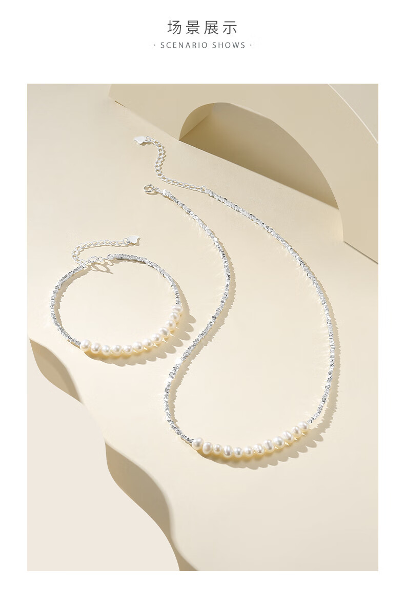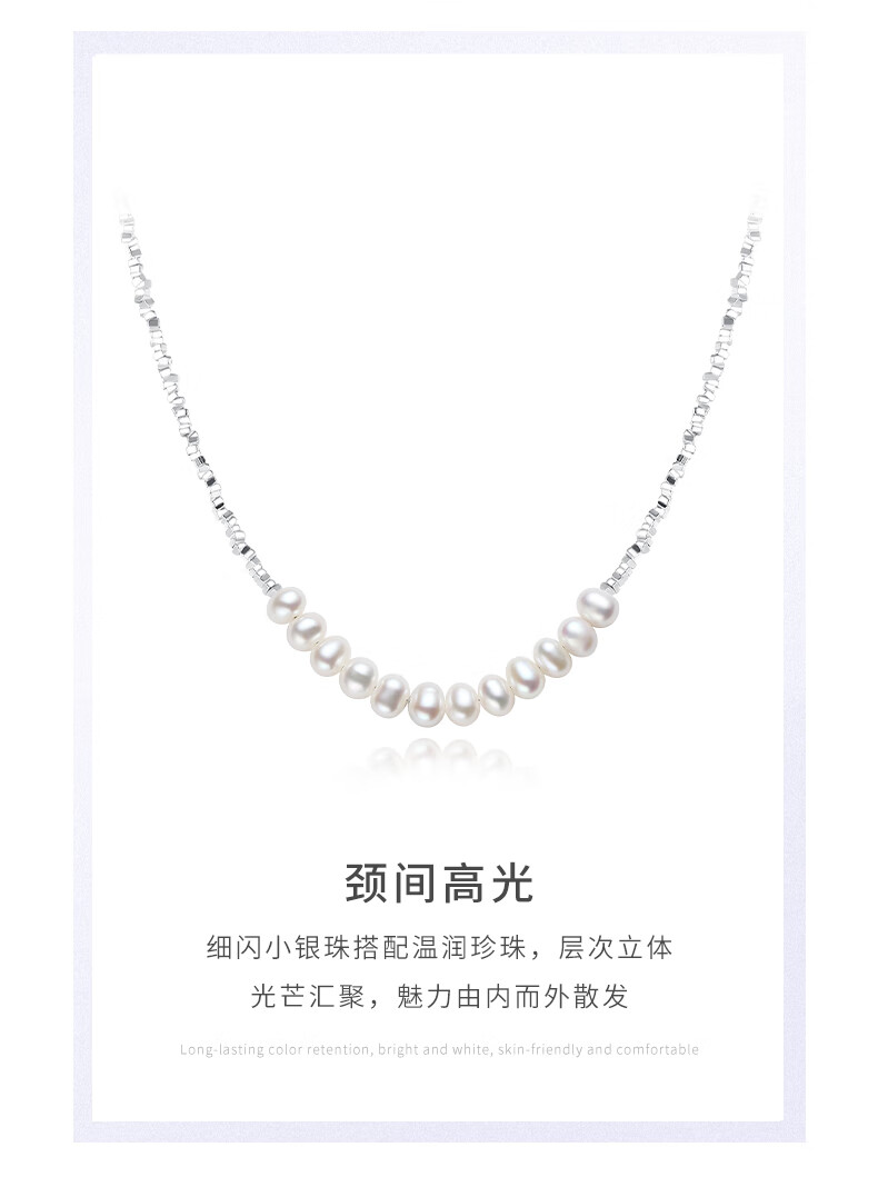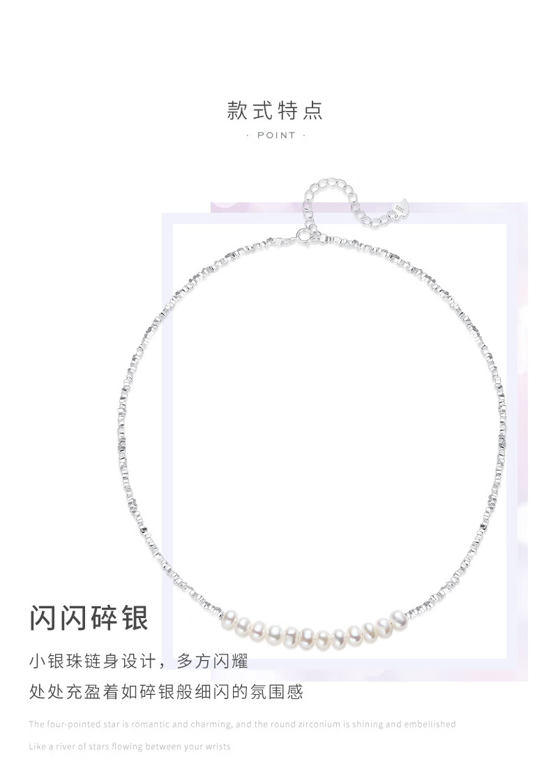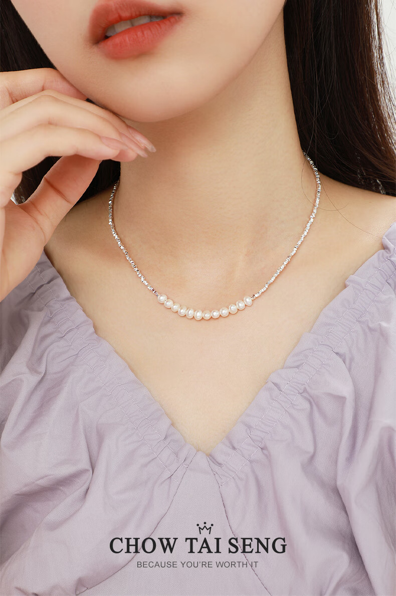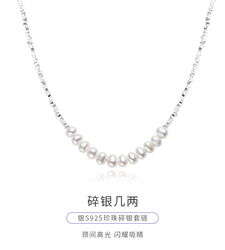 周大生【新年礼物】碎银子珍珠项链轻奢小众碎银几两锁骨链送女友