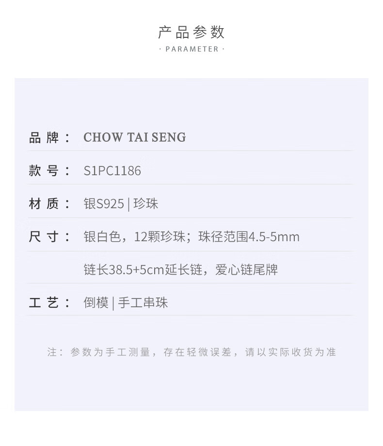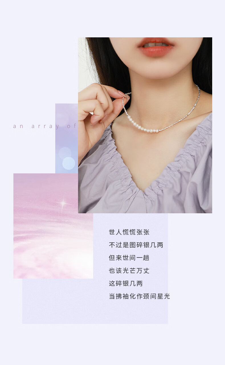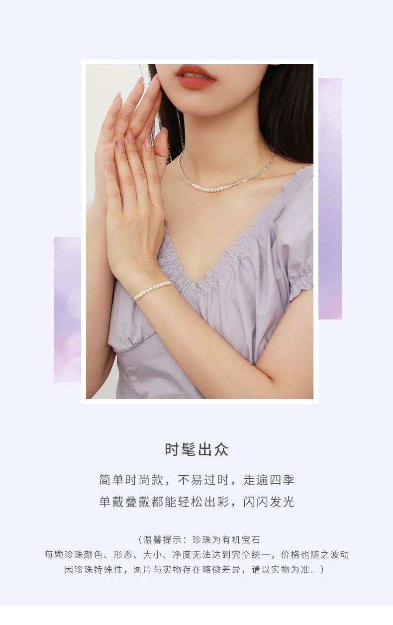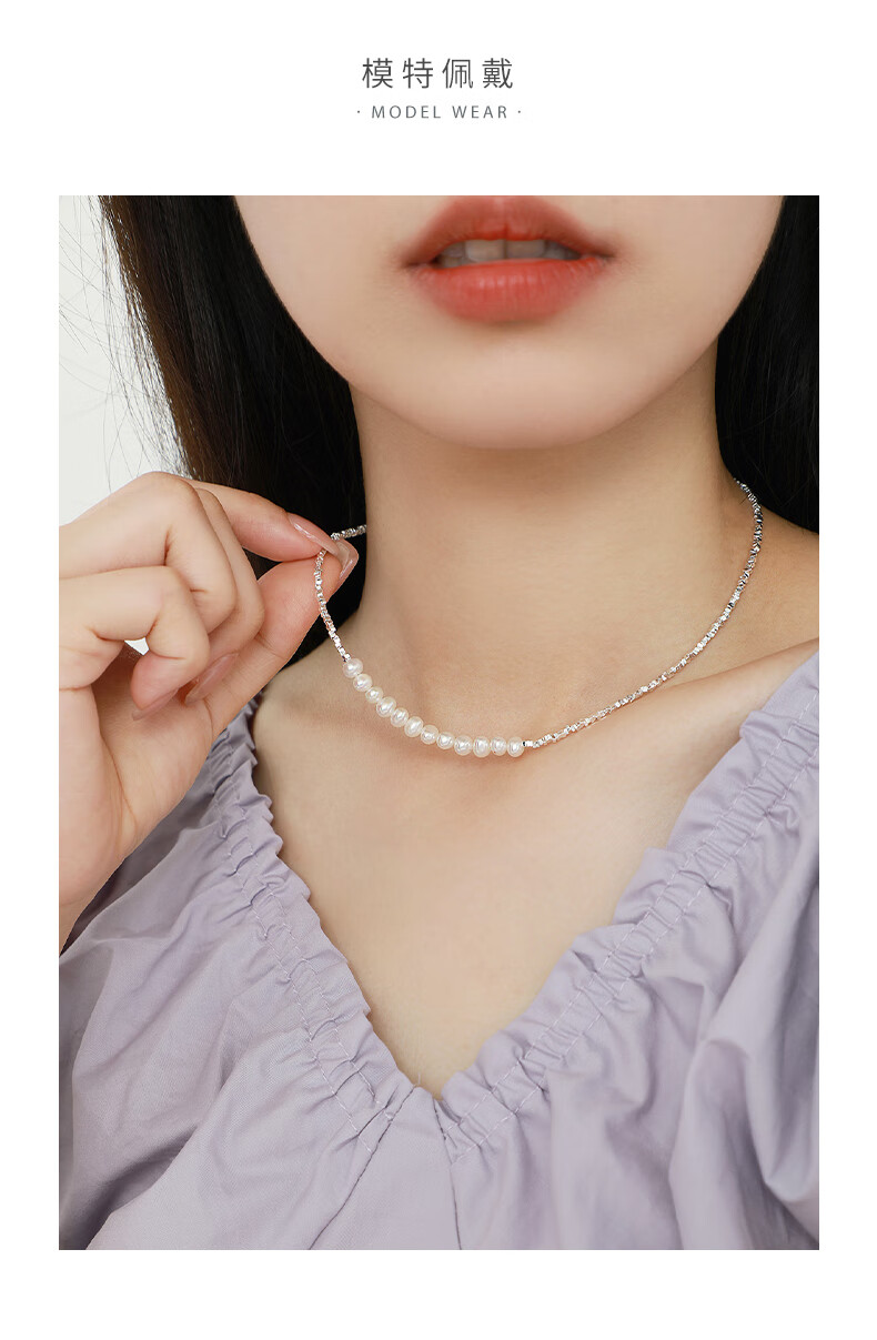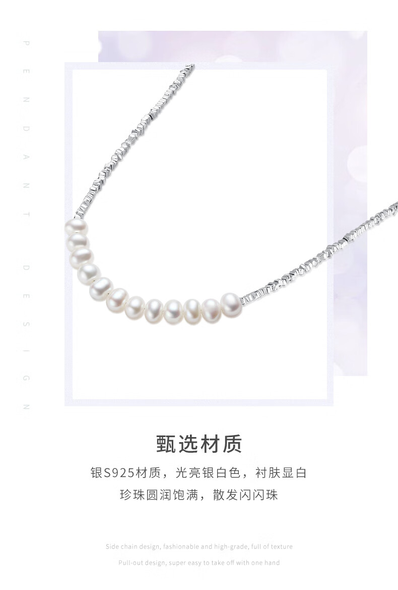 周大生【新年礼物】碎银子珍珠项链轻奢小众碎银几两锁骨链送女友
