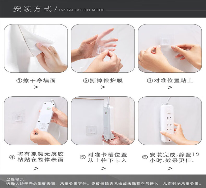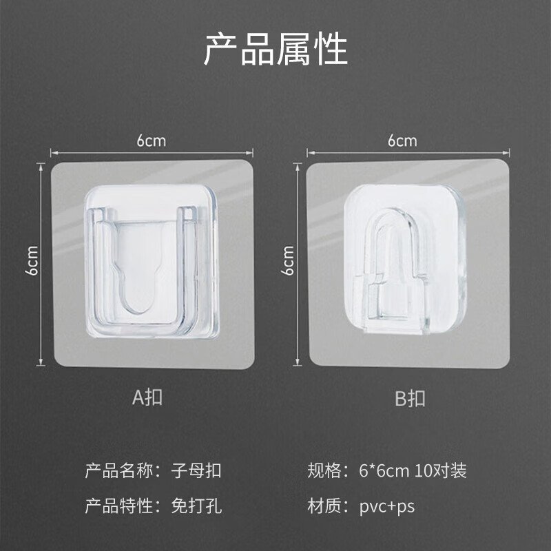 妙馨思无痕子母扣粘贴片免打孔插排固定器透明挂钩强力贴免钉胶壁挂卡扣 免打孔无痕子母扣/10对装