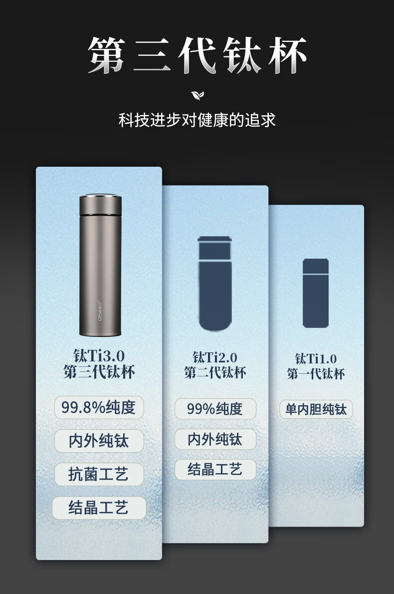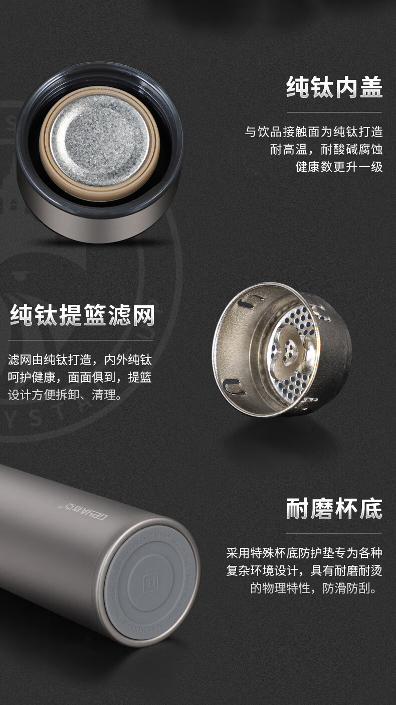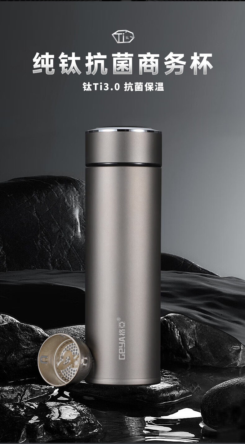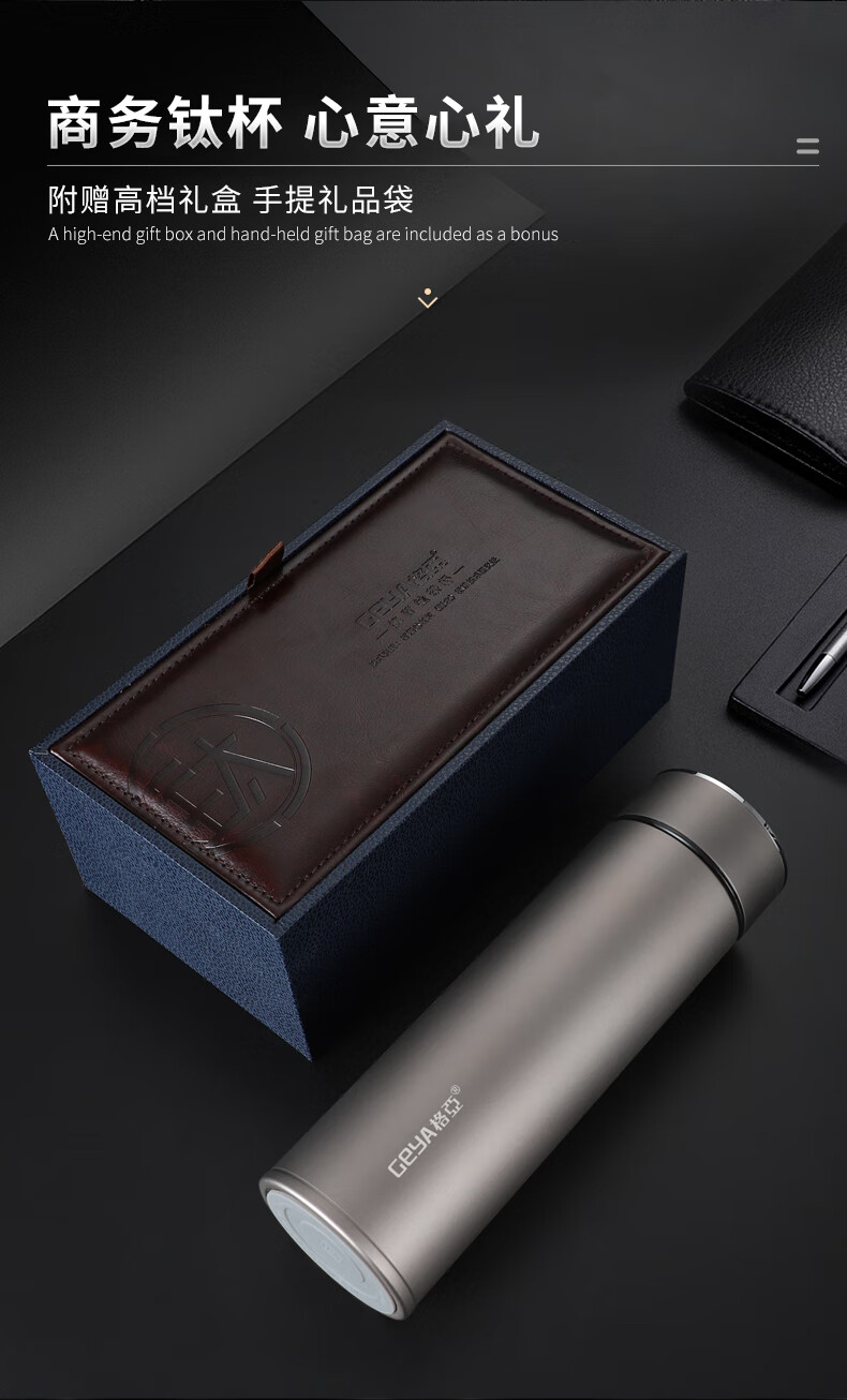 格亚(GEYA)抗菌纯钛保温杯 高端商务纯钛杯保温茶杯保温水杯定制杯子礼盒装 机械温显款【高档礼盒】500ml