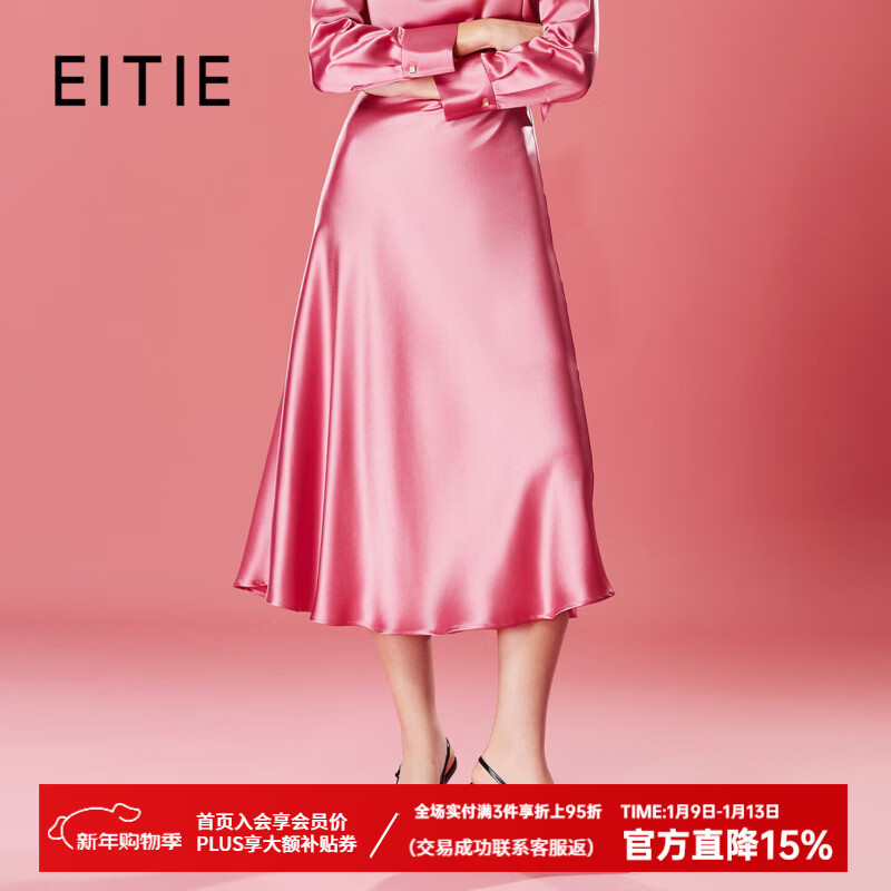 爱特爱(EITIE)醋纤缎面粉色半身裙2025秋季新款靓丽时尚复古显瘦A字裙7906608 珊红65 S (155)