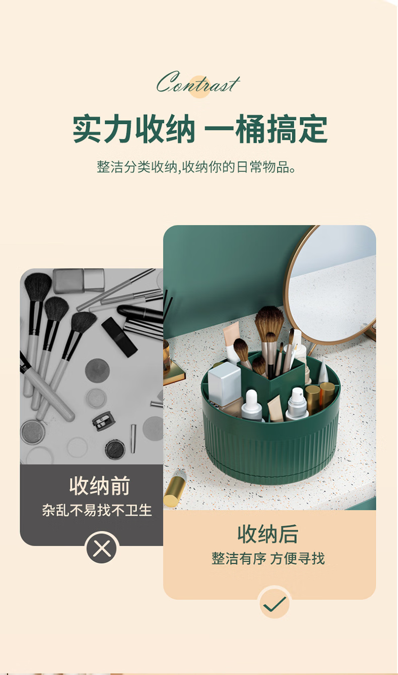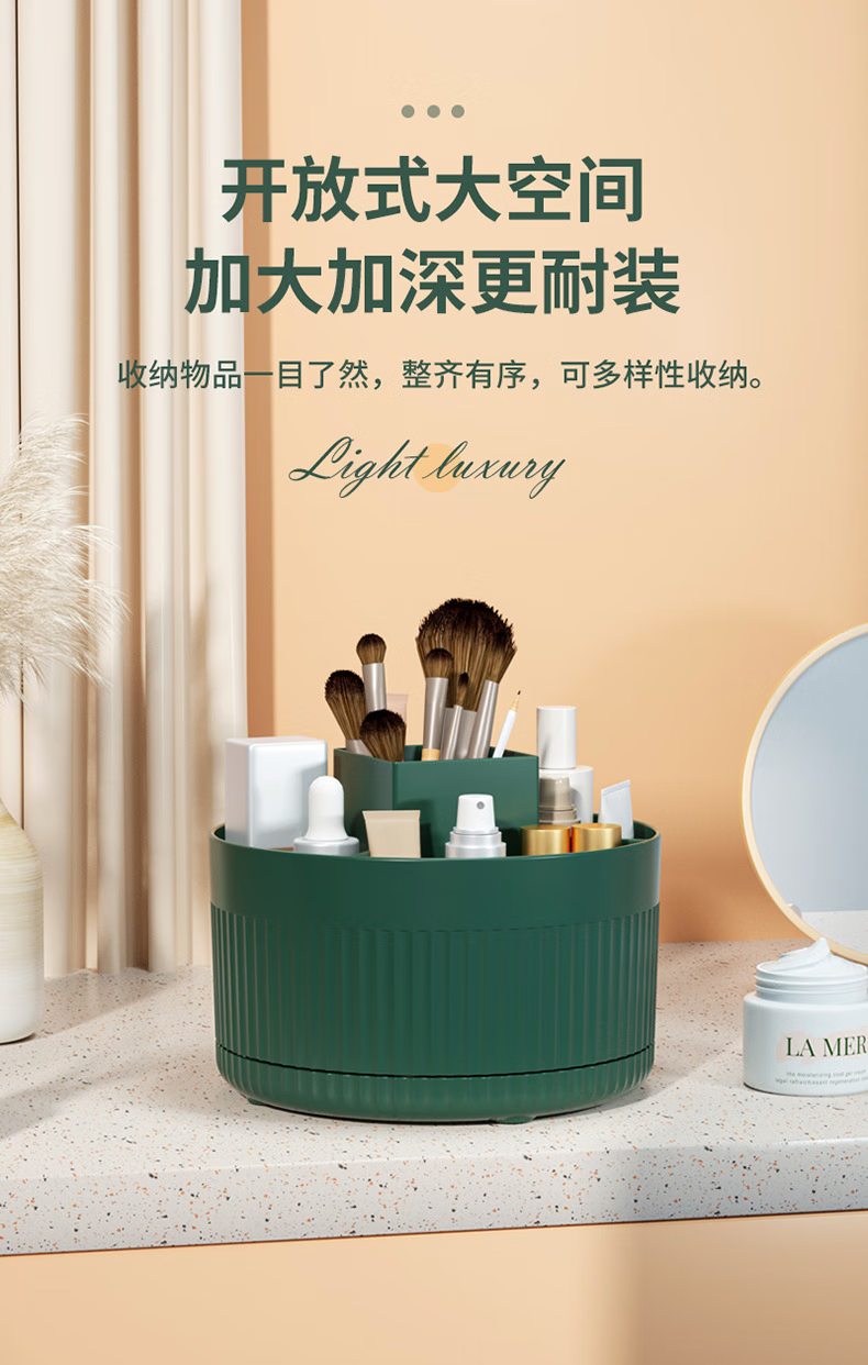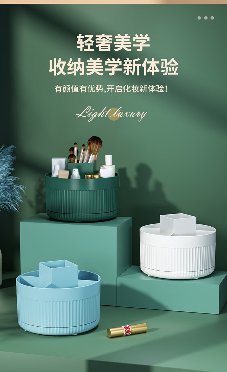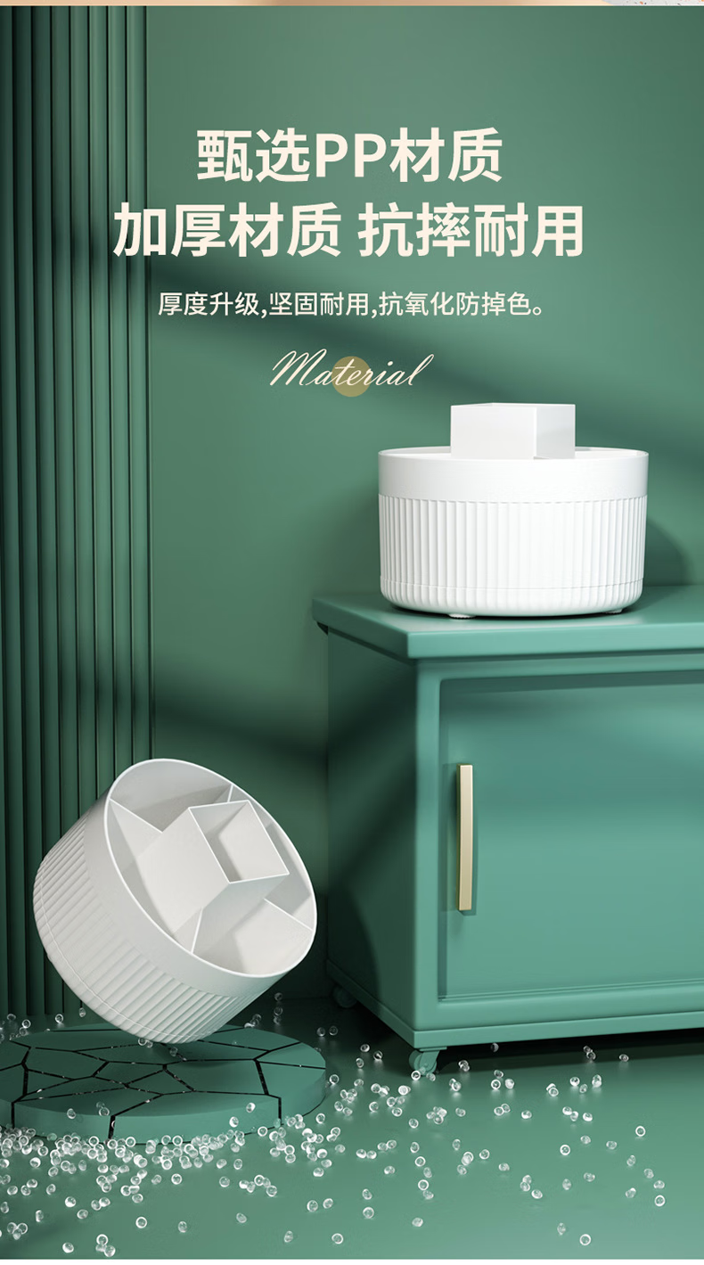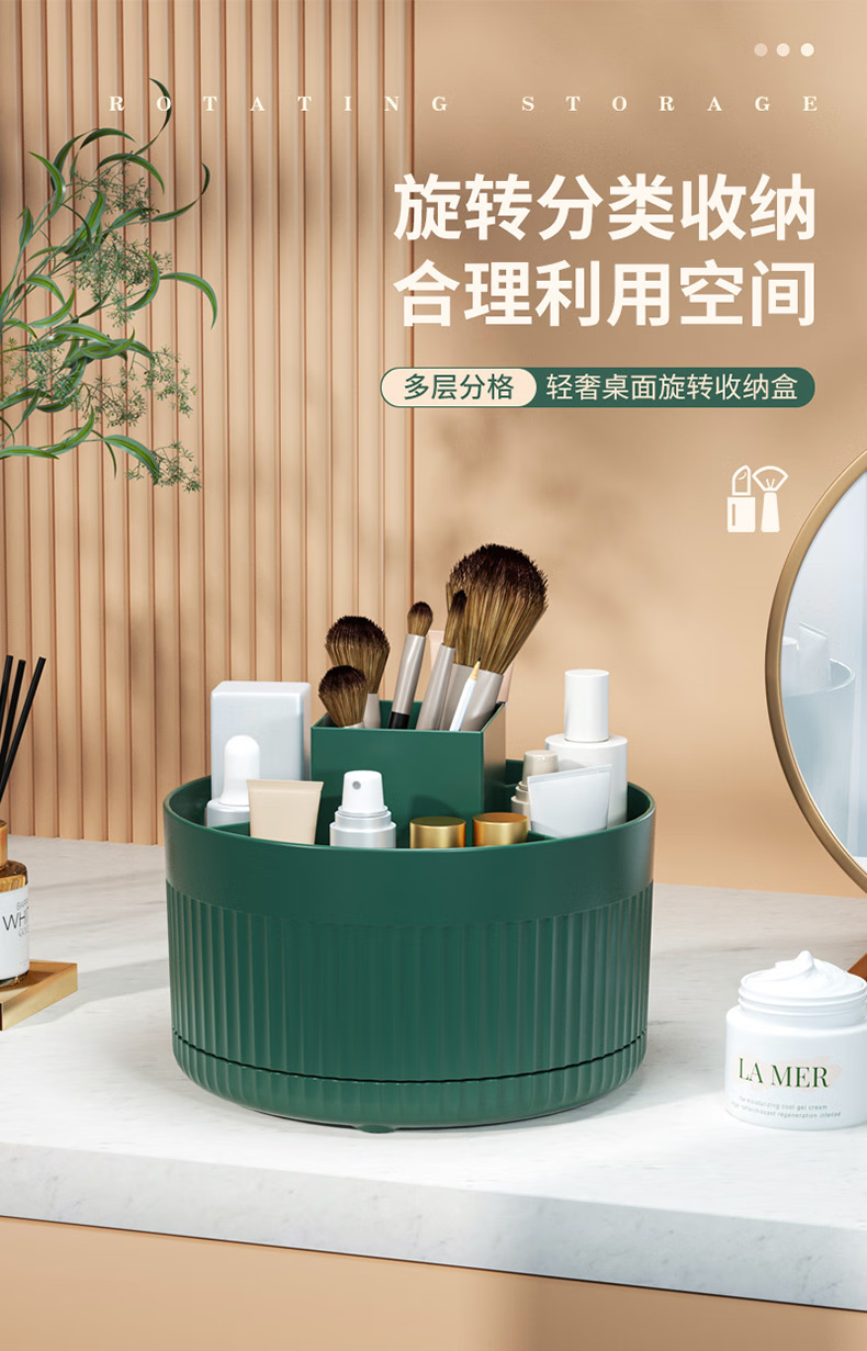 桌面旋转化妆刷收纳筒化妆品置物架桌上梳妆台眼影刷子旋转口红盒 白色