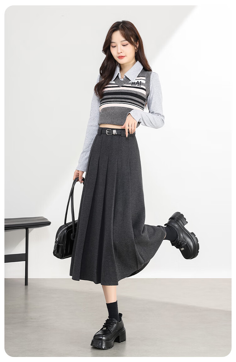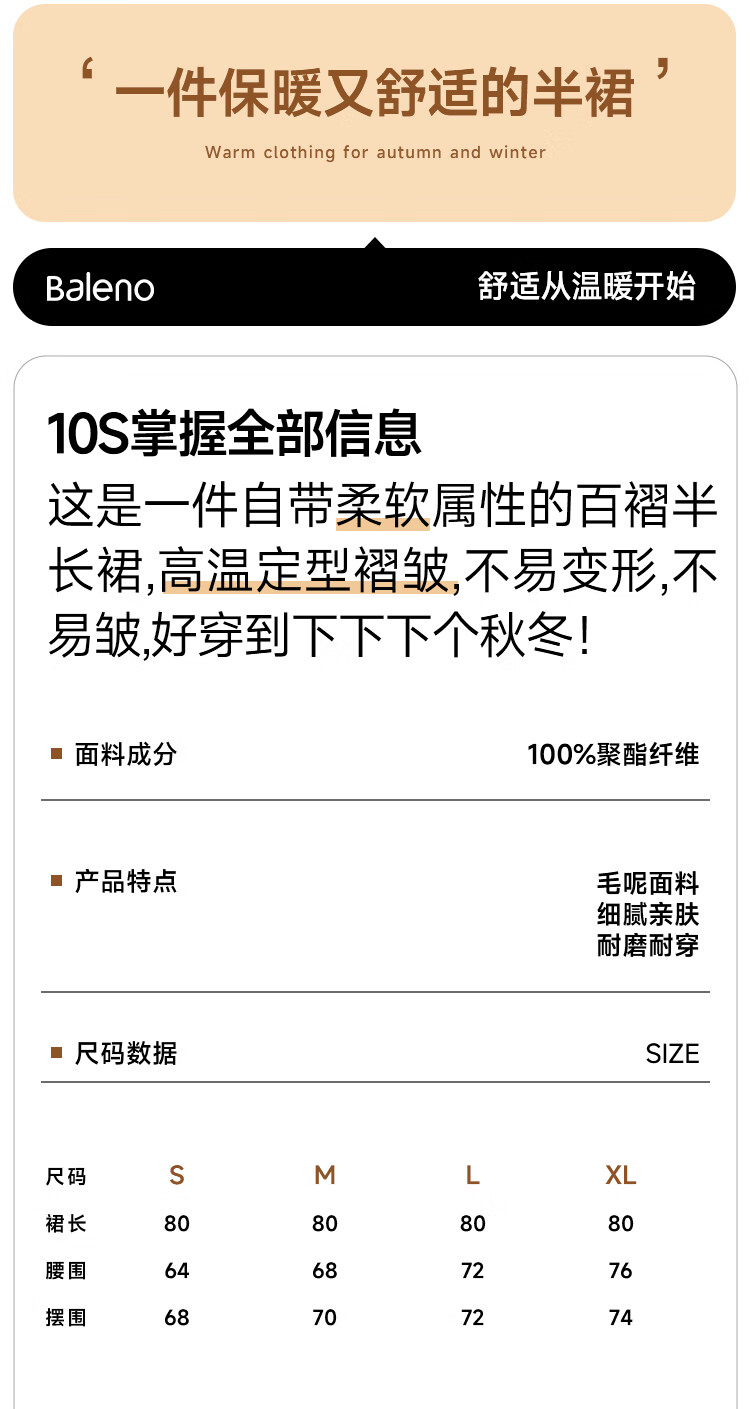 班尼路(Baleno)百褶半裙女冬季新款户外防寒锁温小香风轻奢潮流休闲时尚动感裙子