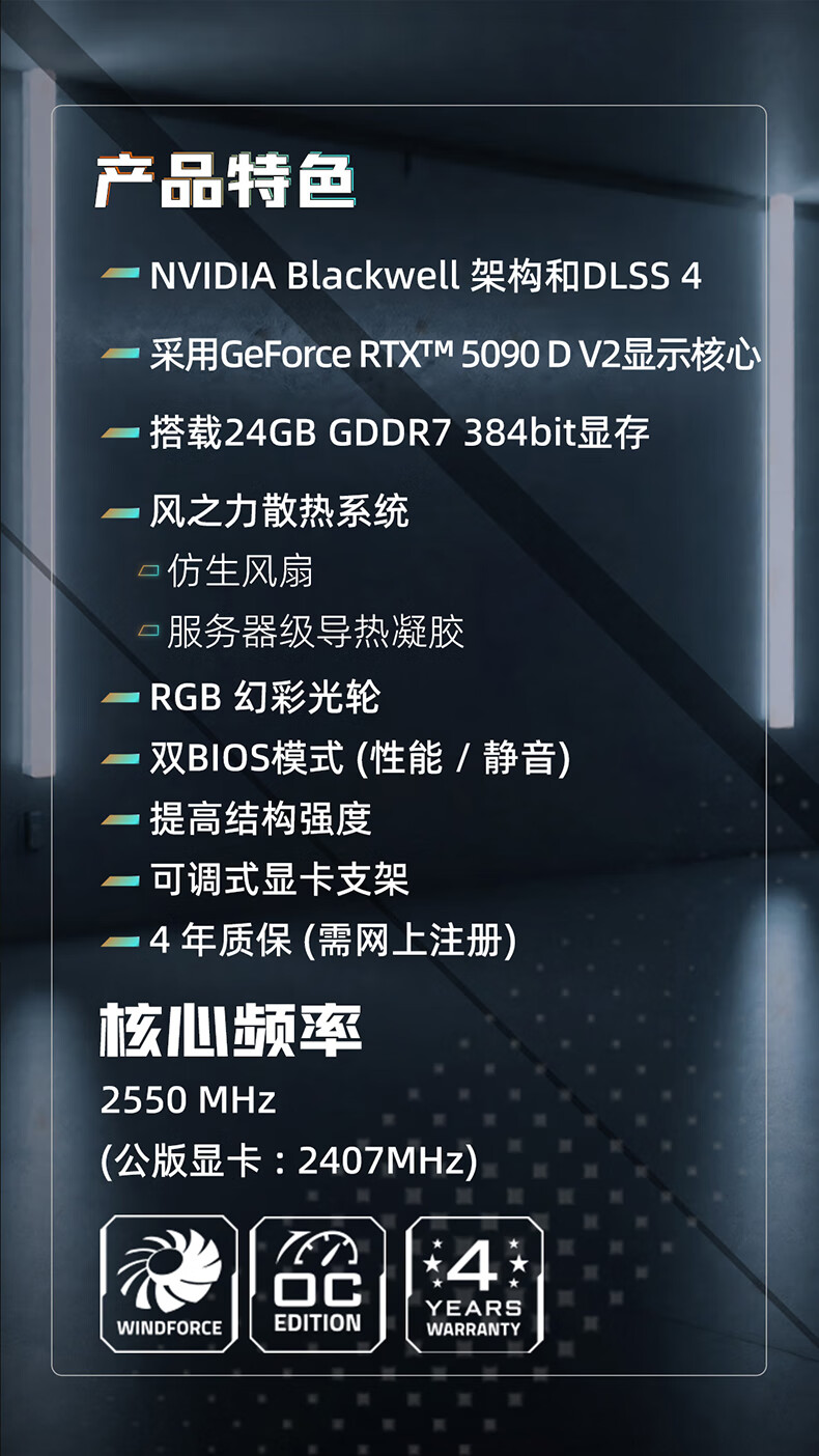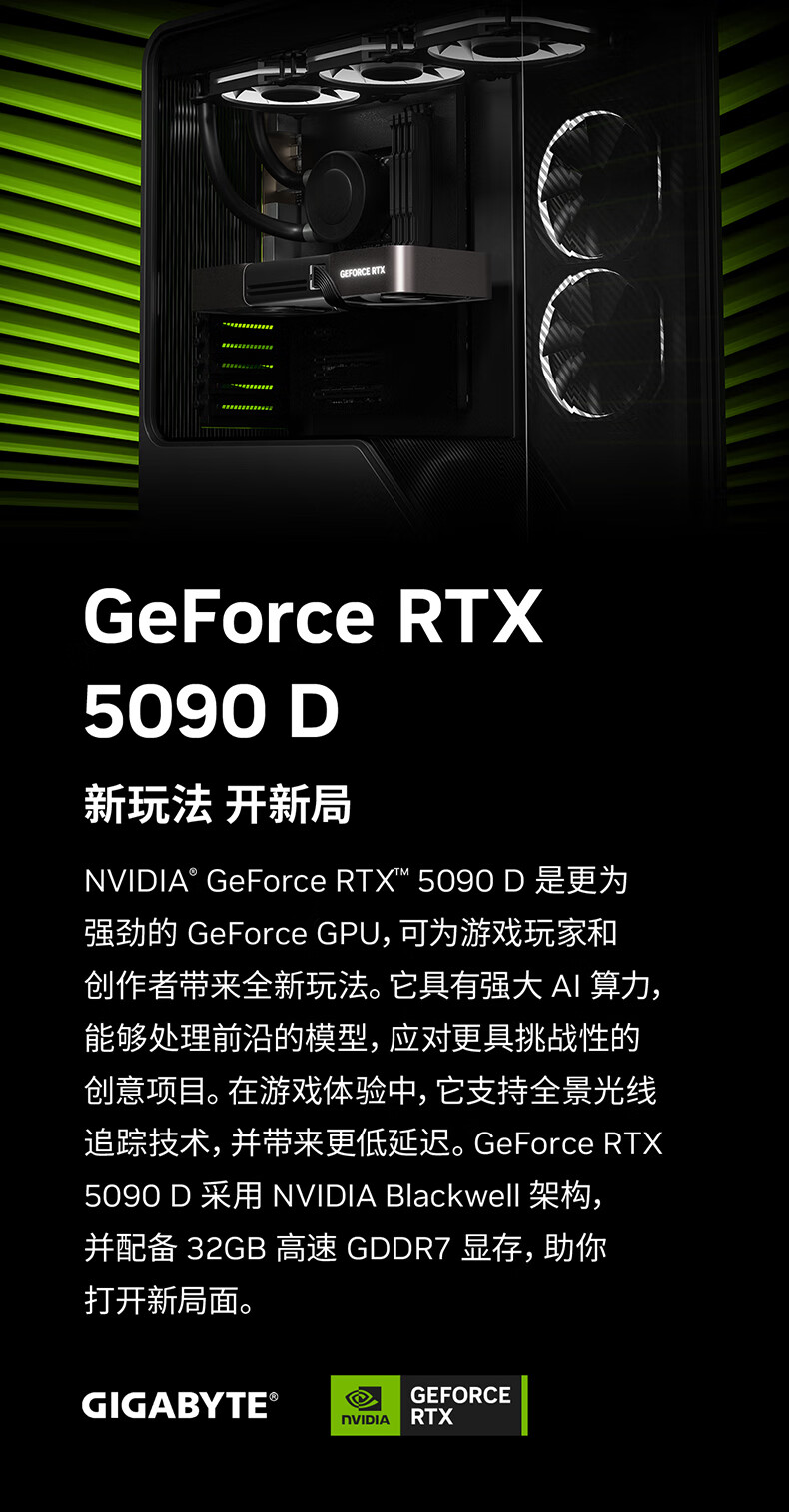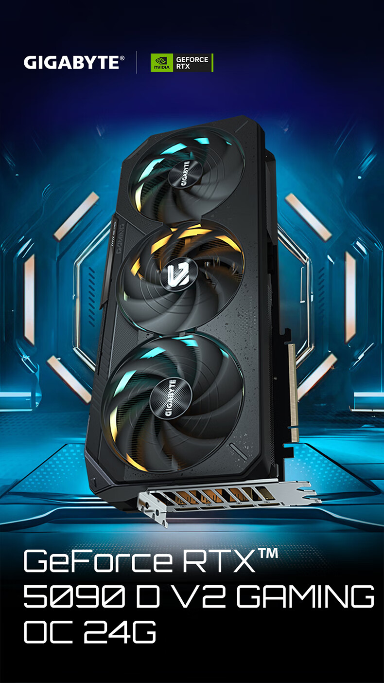 技嘉(GIGABYTE)5090 D v2显卡 魔鹰OC GeForce RTX 5090 D v2 Gaming OC 24G DLSS4电竞设计AI 【注册四年保】