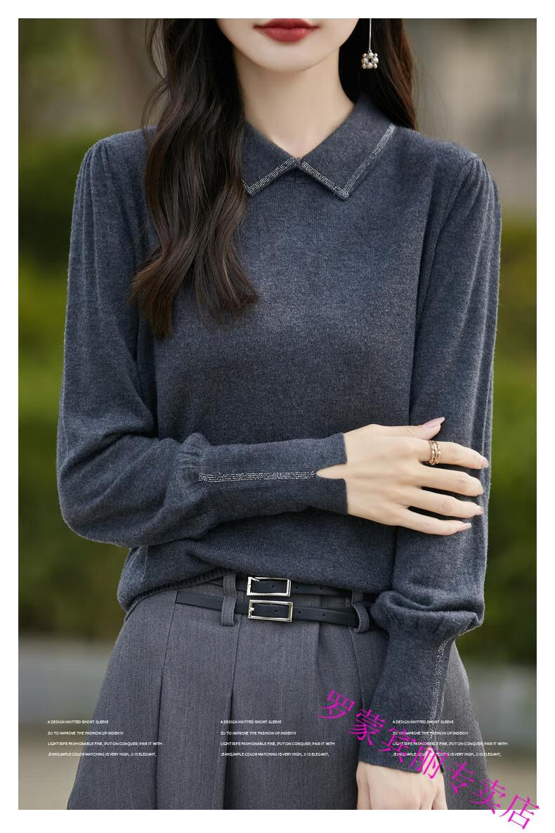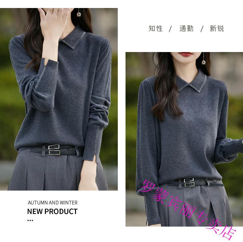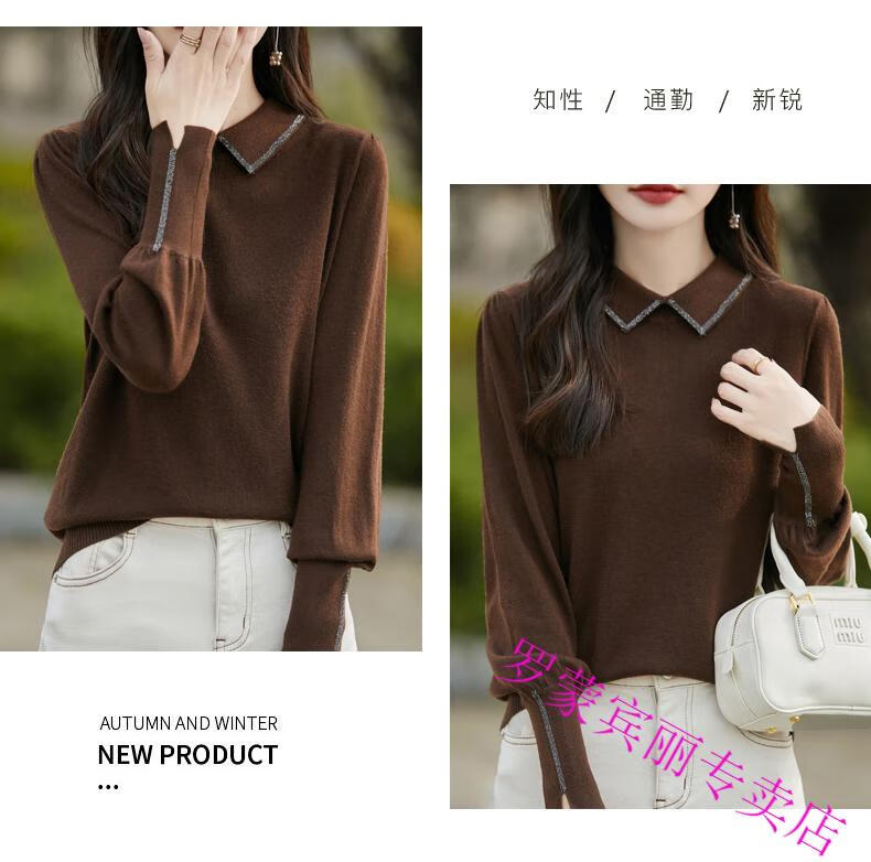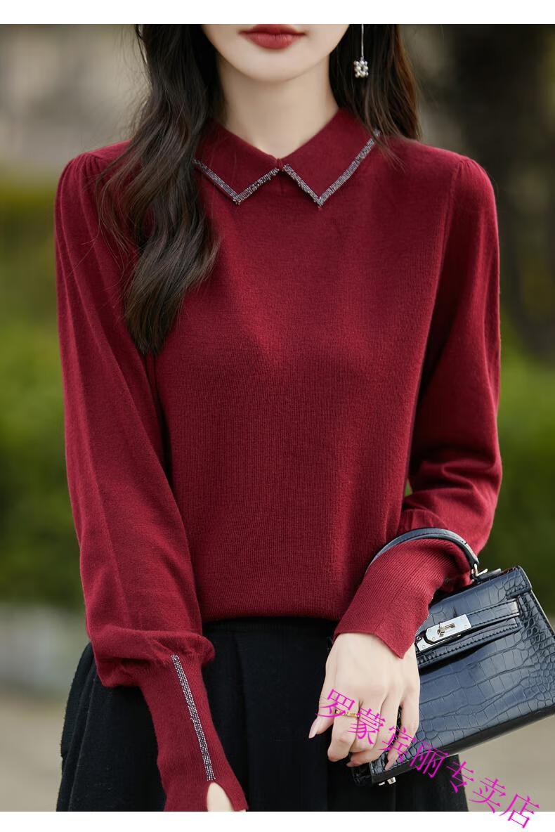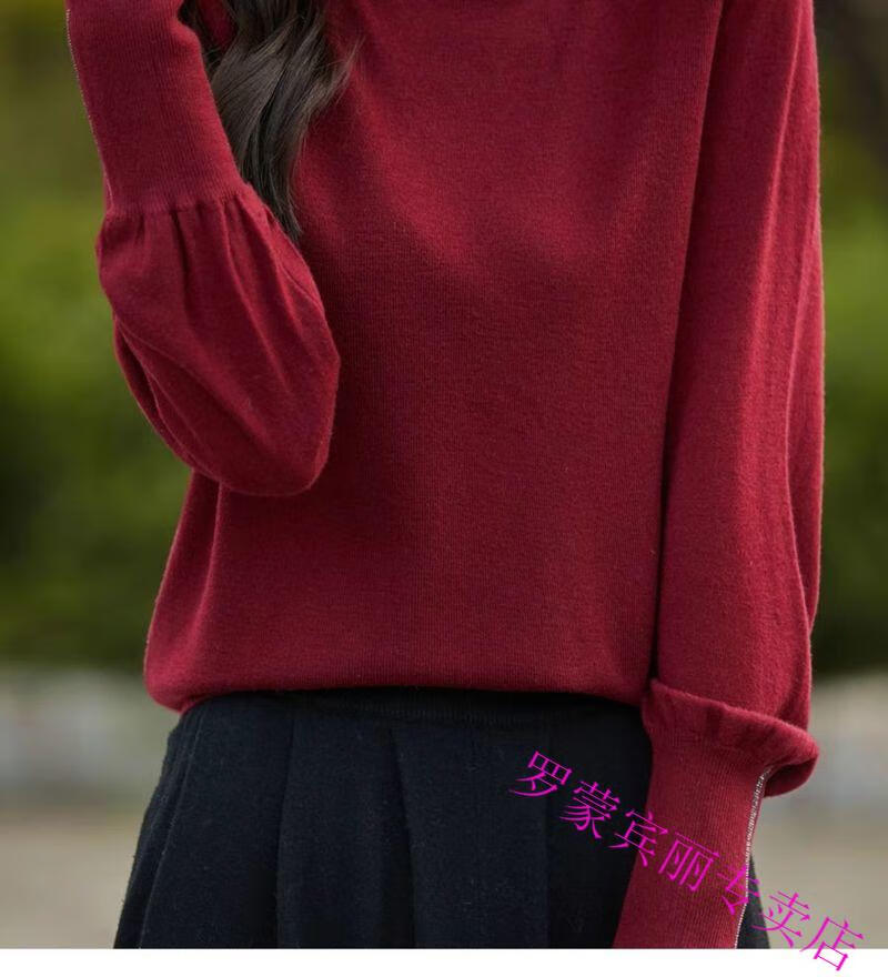 罗蒙(ROMON)纯羊毛衫打底衫女新款春秋红色翻领洋气显瘦针织上衣大码秋冬毛衣 100%羊毛绒-酒红色-女装十大品牌 5XL (170-200斤)