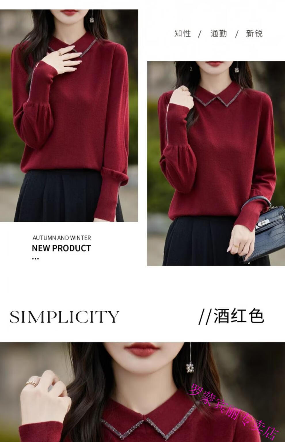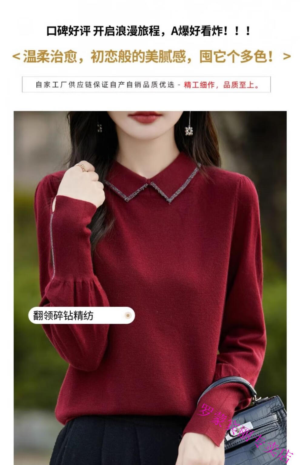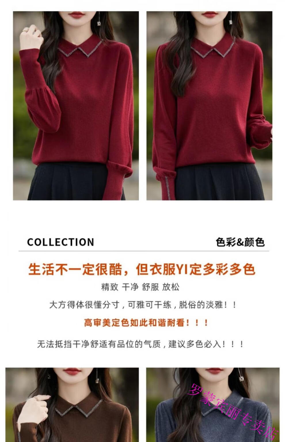 罗蒙(ROMON)纯羊毛衫打底衫女新款春秋红色翻领洋气显瘦针织上衣大码秋冬毛衣 100%羊毛绒-酒红色-女装十大品牌 5XL (170-200斤)