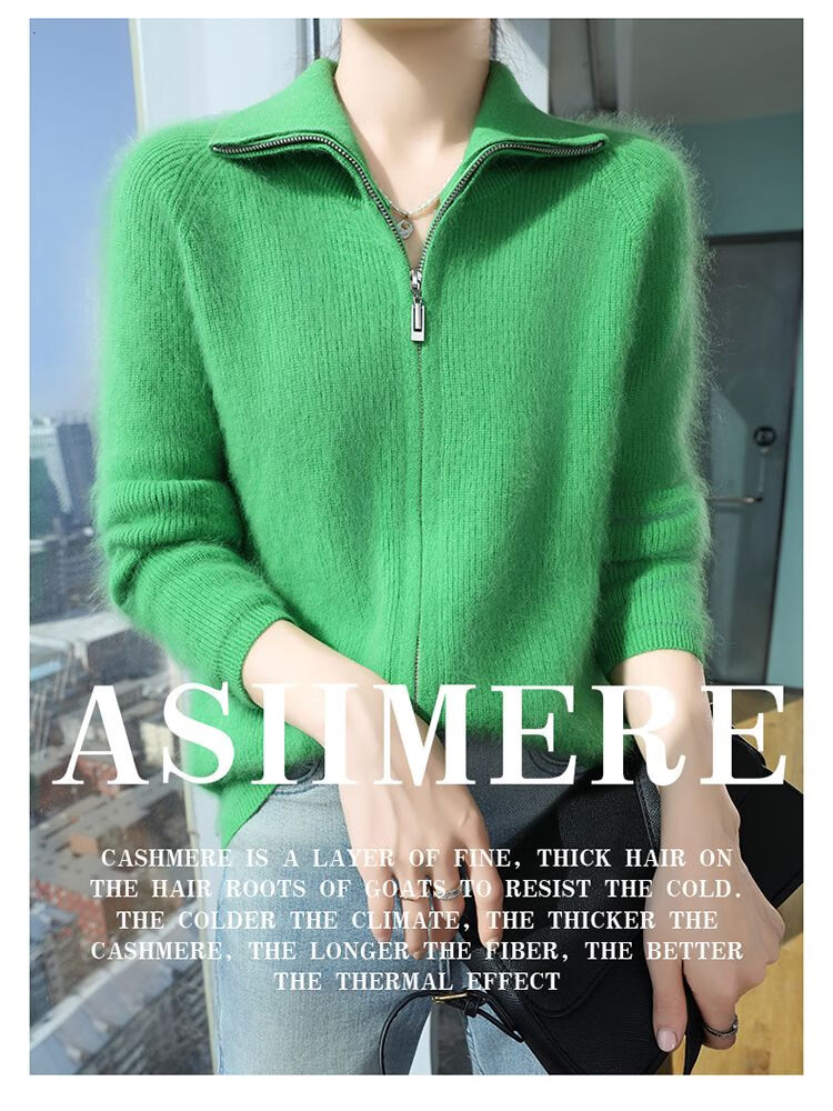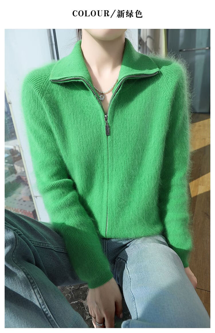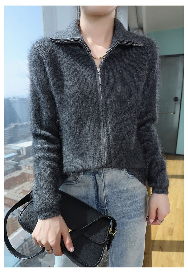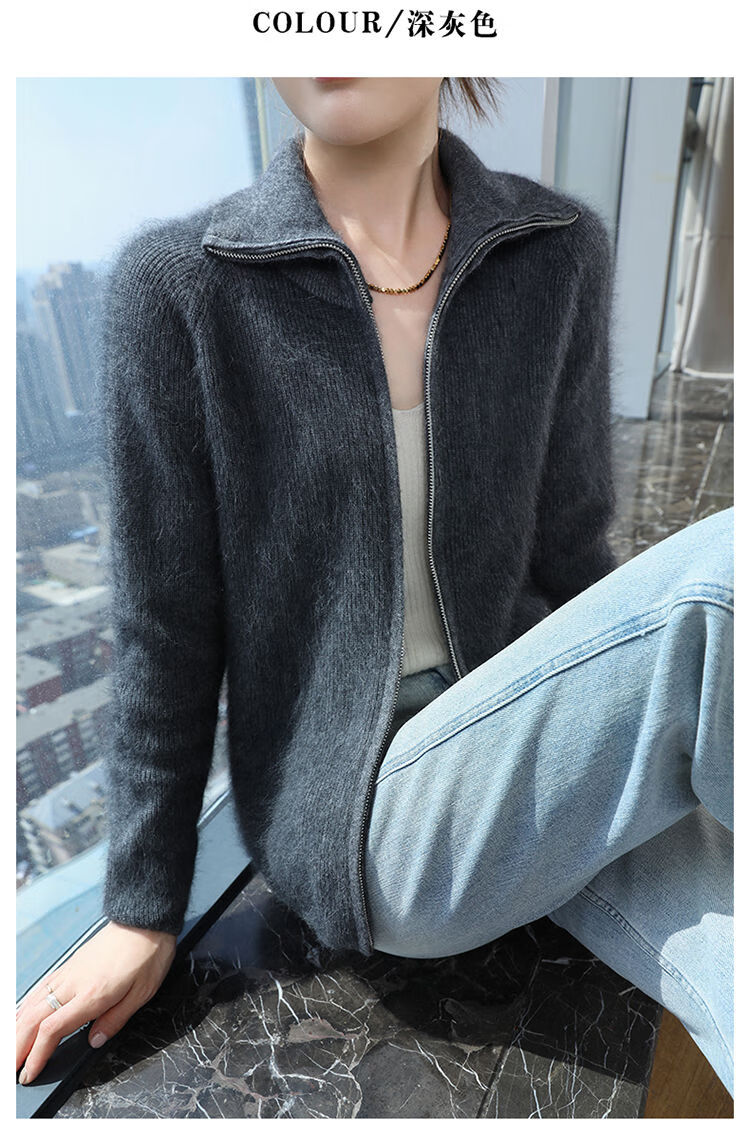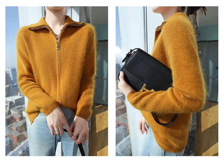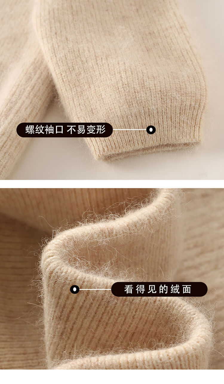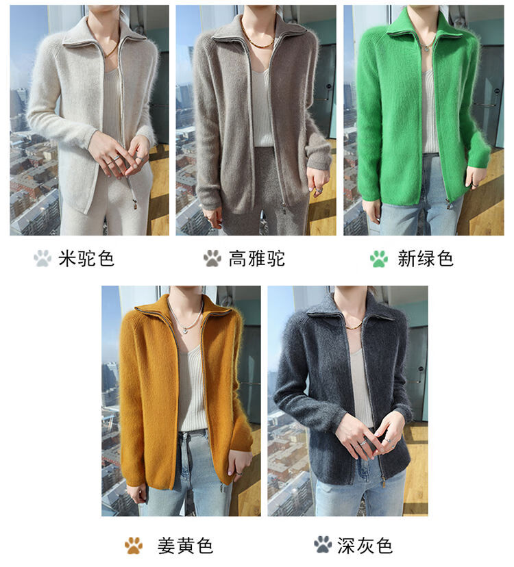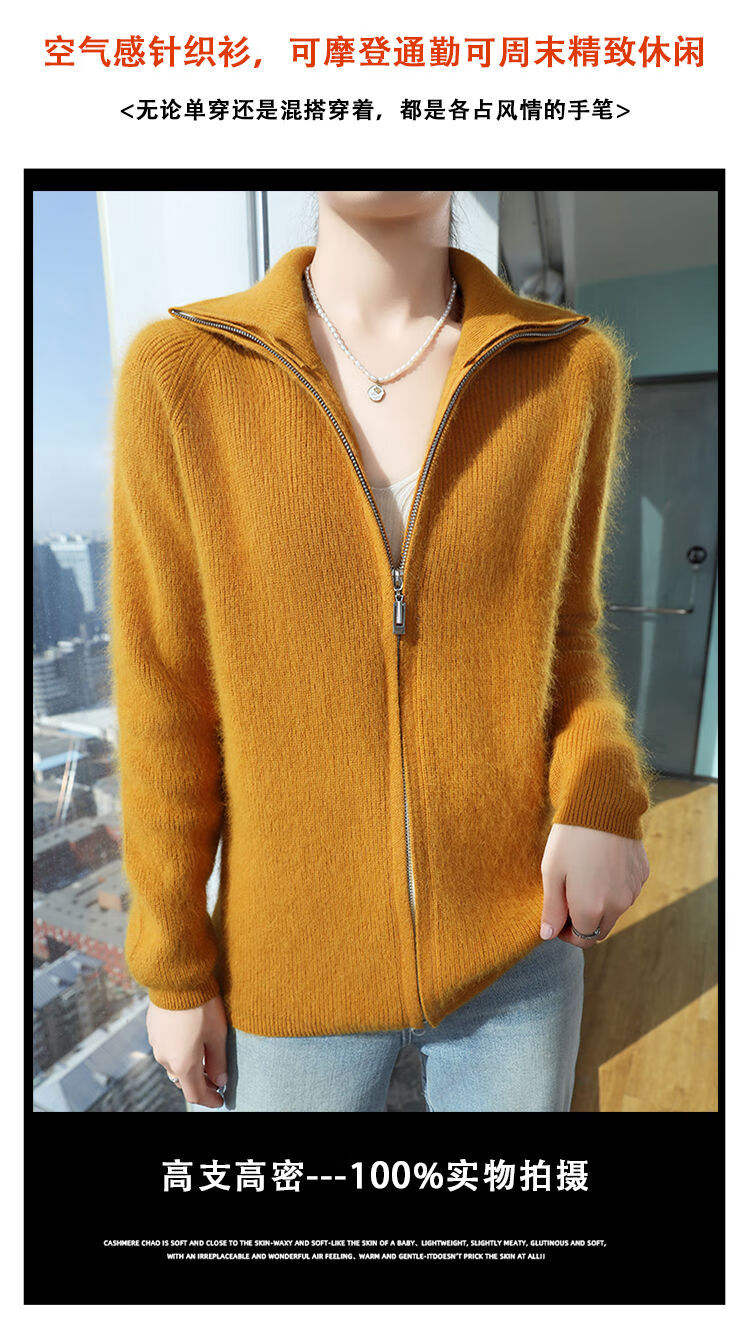 皮尔卡丹(pierre cardin)加厚秋冬新款貂绒翻领拉链针织开衫女短外高领毛衣保暖外搭上衣 米驼色 S 90-100斤
