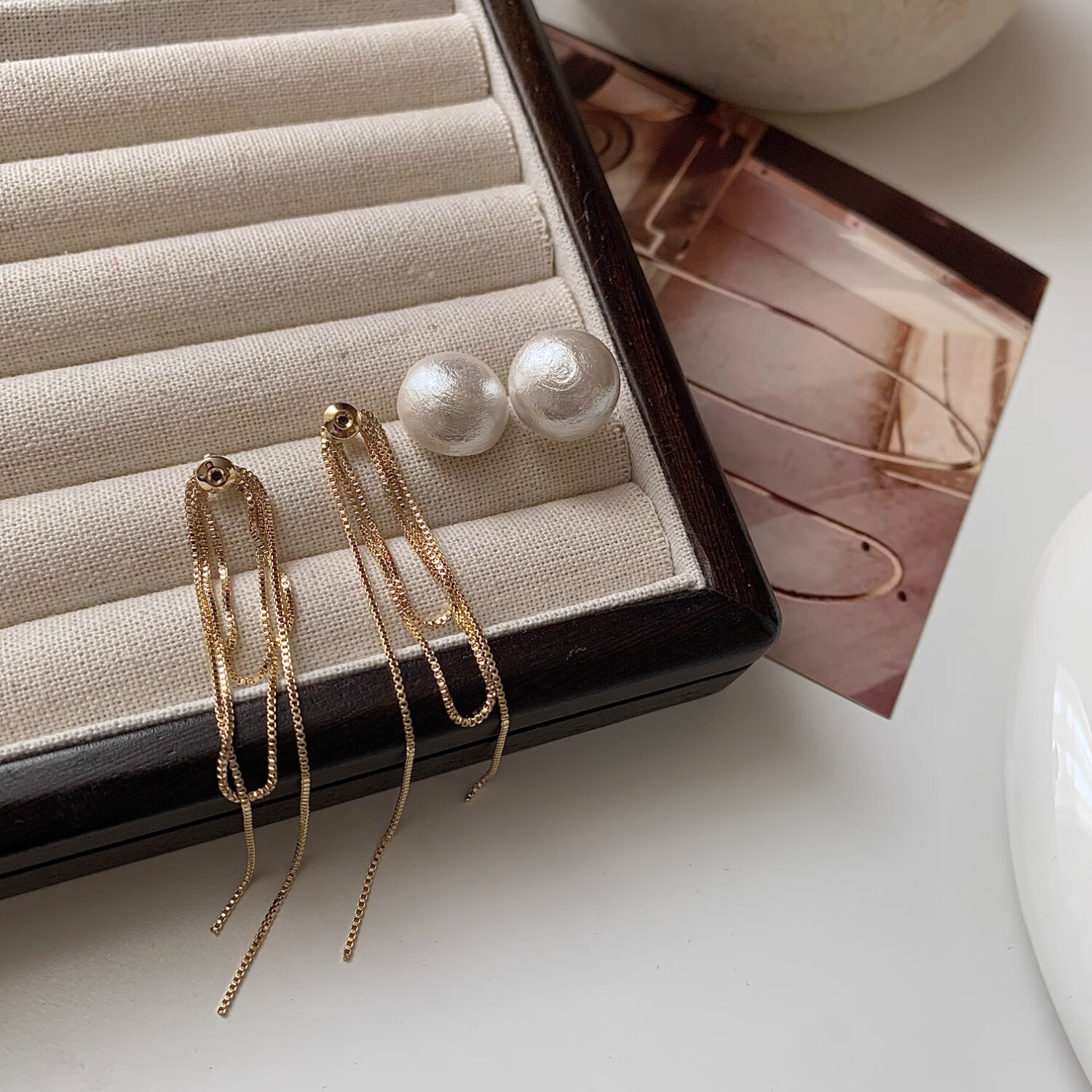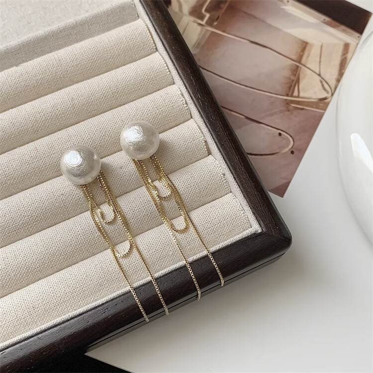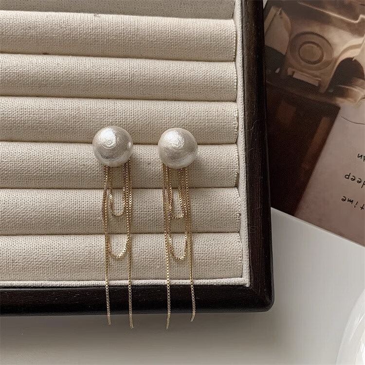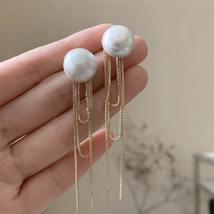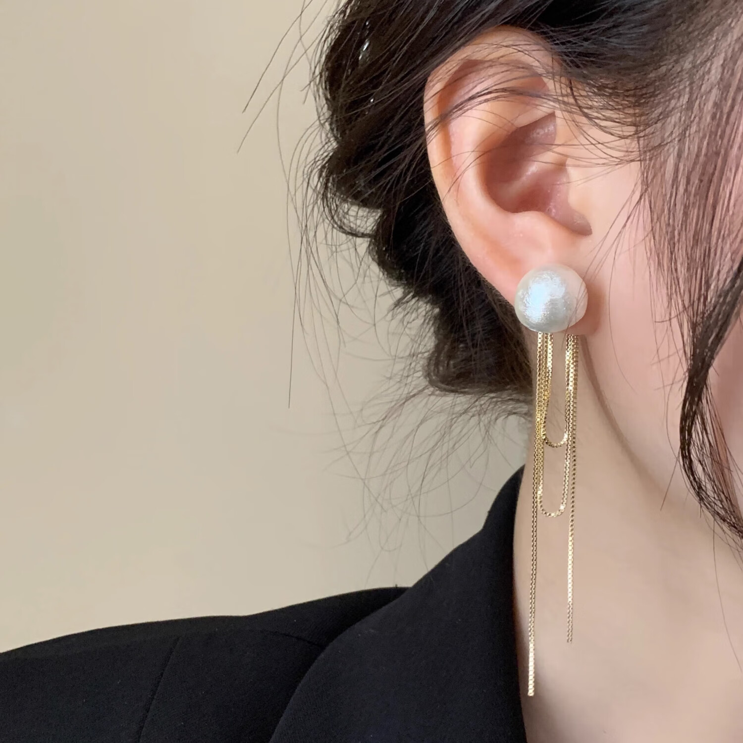 伊灿简约长款流苏仿珍珠耳环女2025新款爆款轻奢小众设计耳饰气质耳坠 长款流苏珍珠耳饰