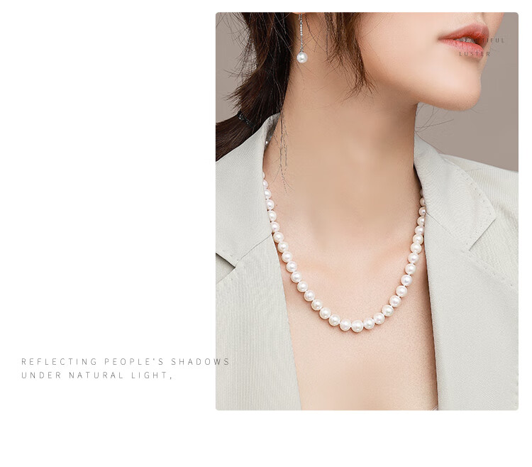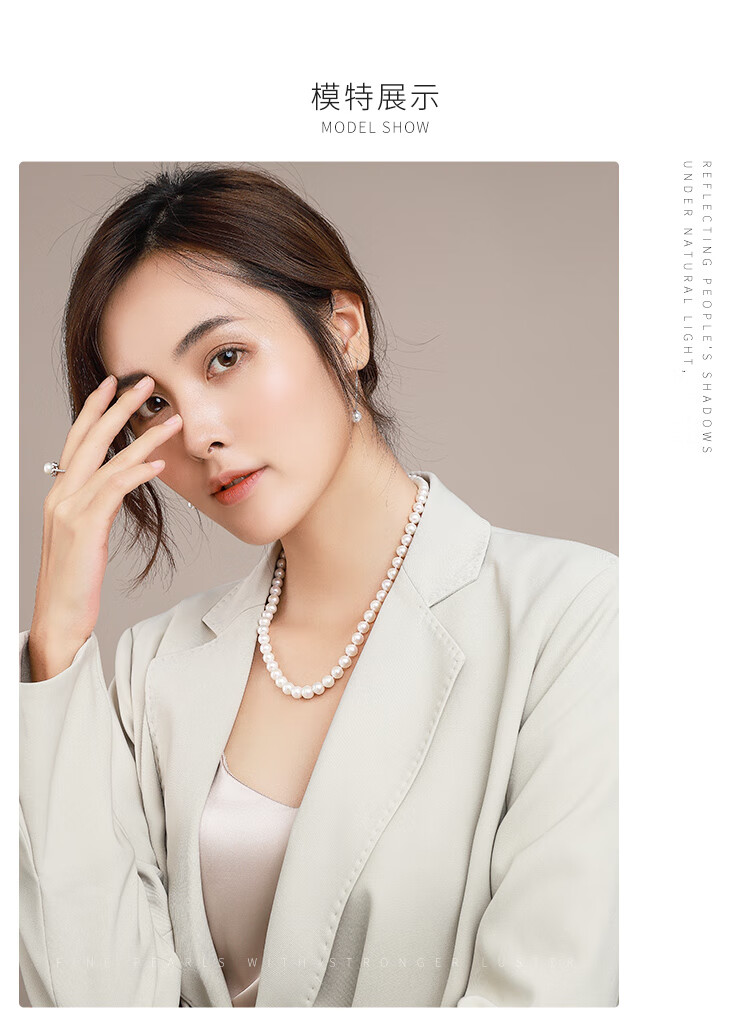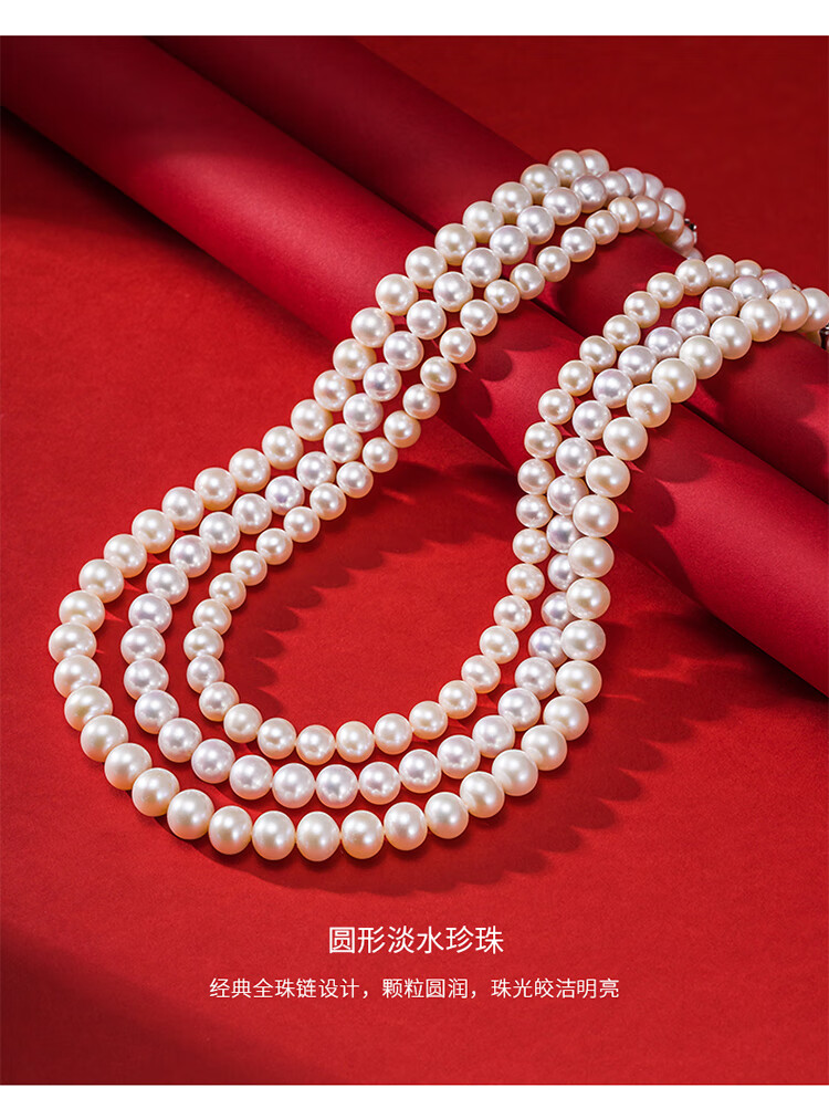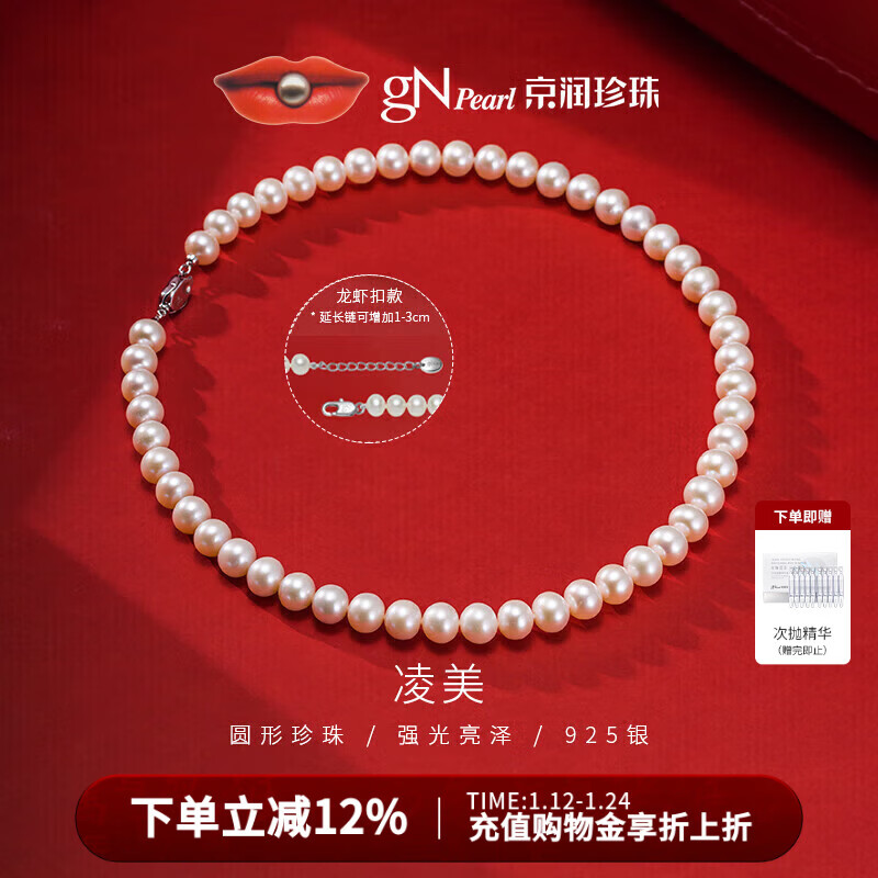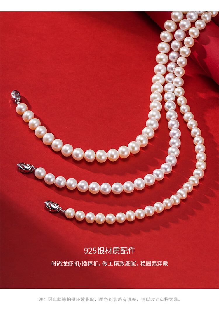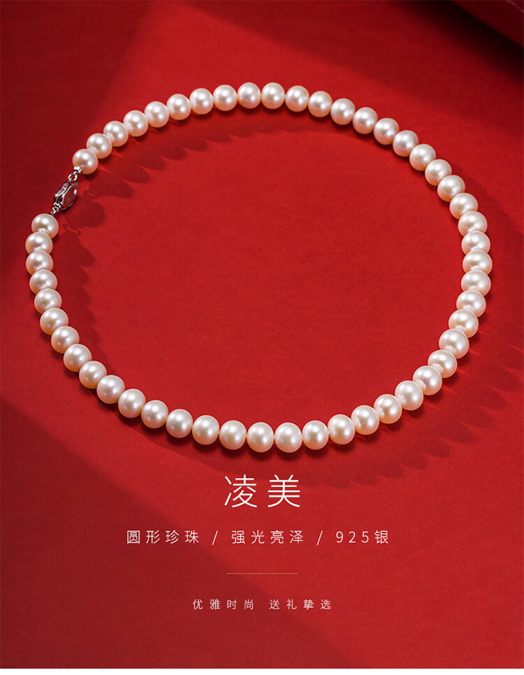 京润珍珠项链女925银凌美淡水珍珠项链圆形强光小米珠叠戴生日礼物