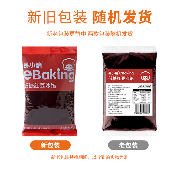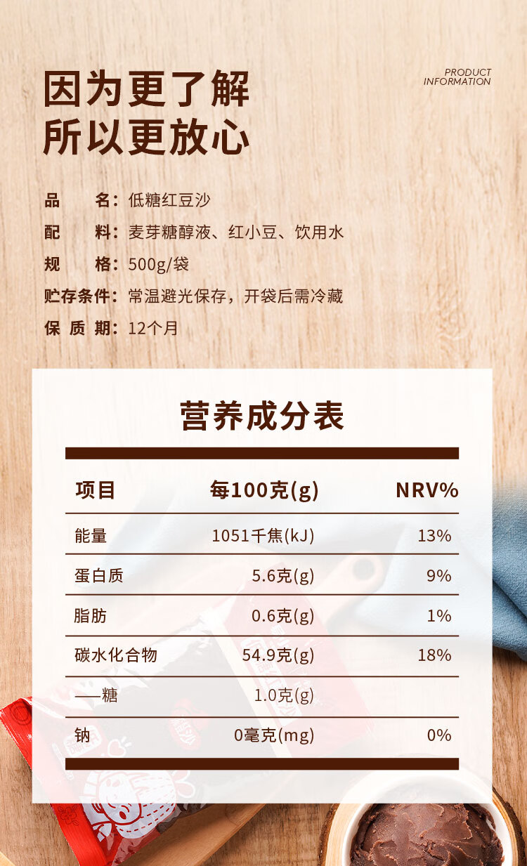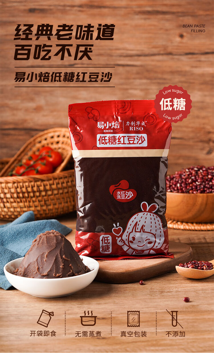 新良易小焙低糖红豆沙馅料500g家用青团蛋黄酥包子豆沙馅冰皮月饼材料 红豆沙 500g*1袋