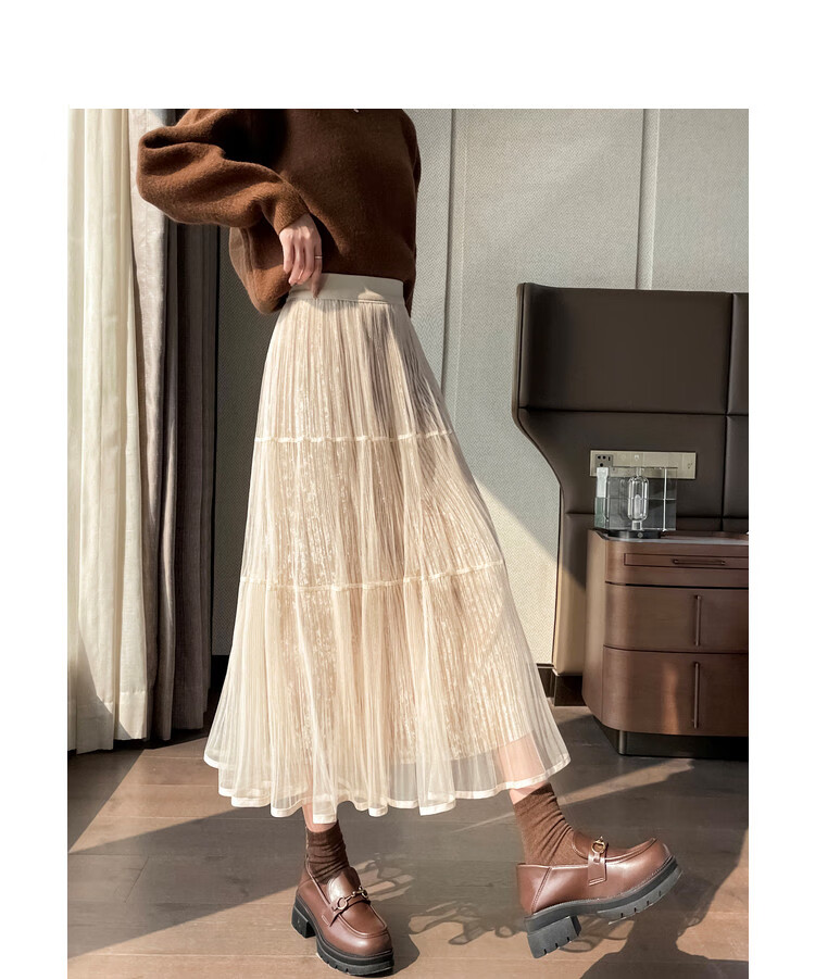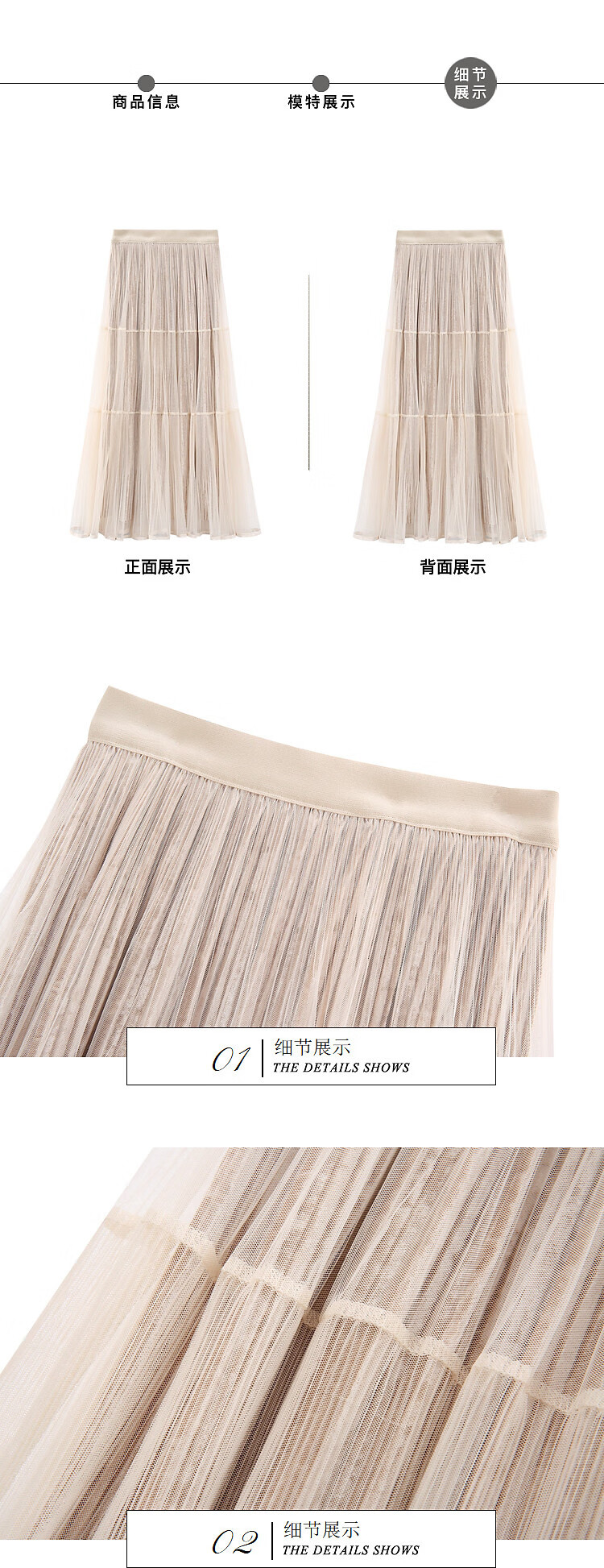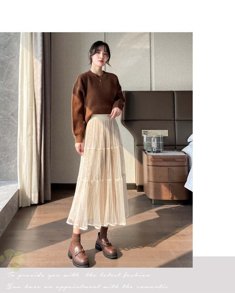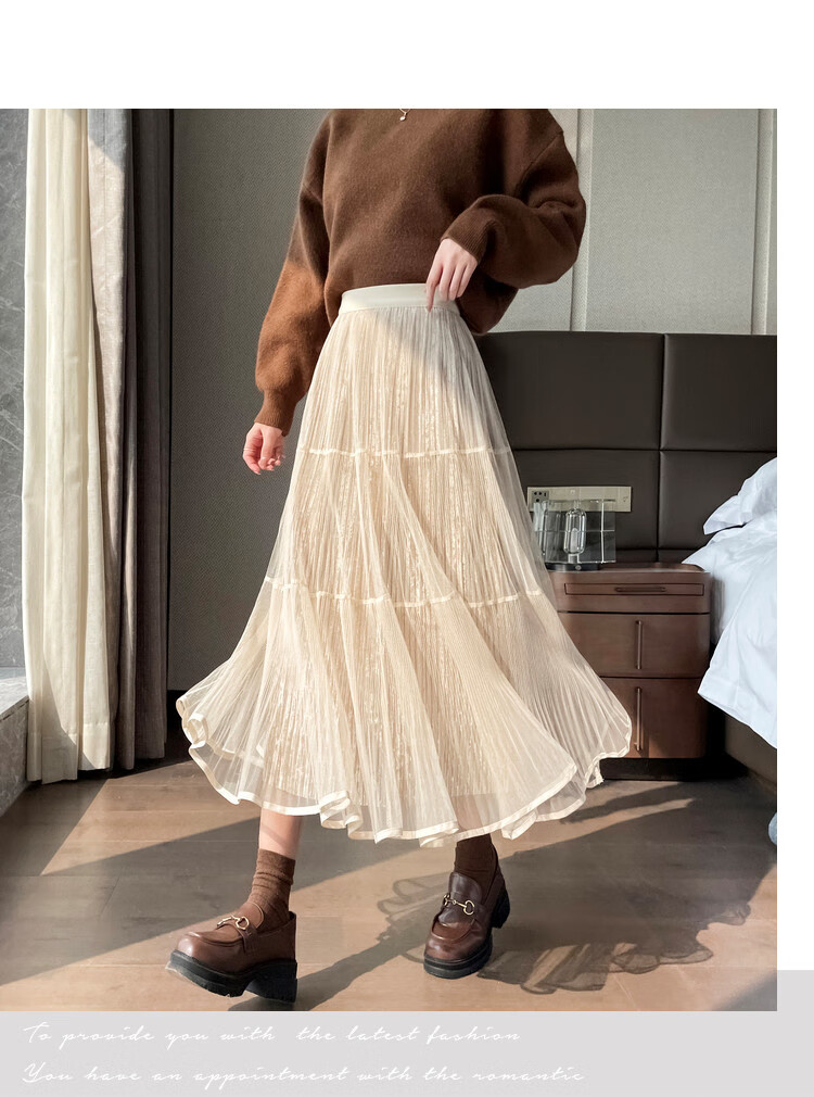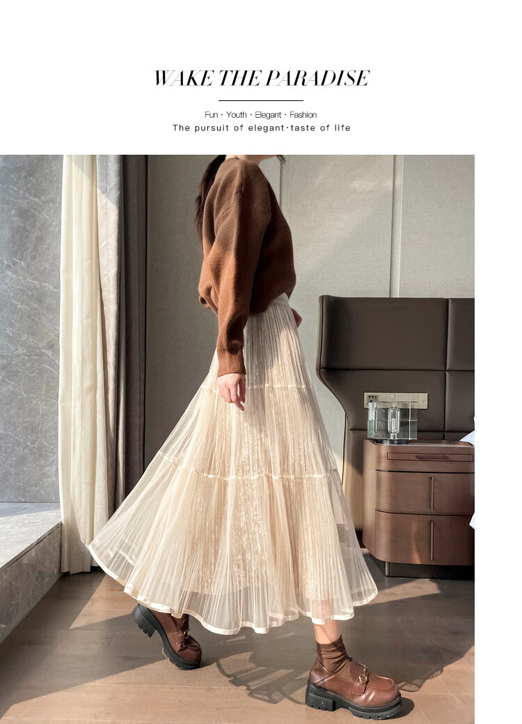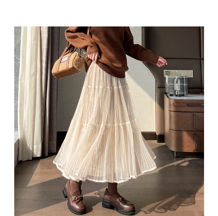 苏醒的乐园冬季小个子百搭a字长裙网纱拼接蛋糕裙半身裙 米杏色 均码