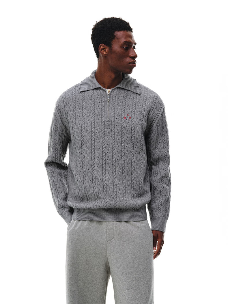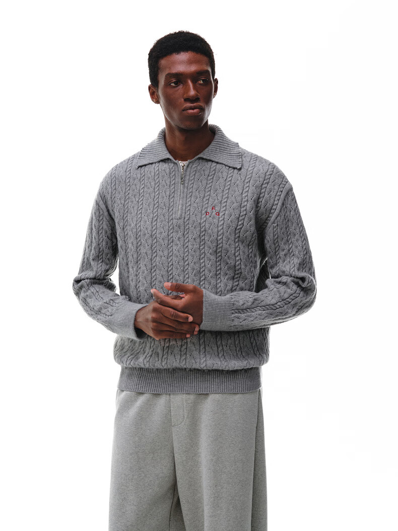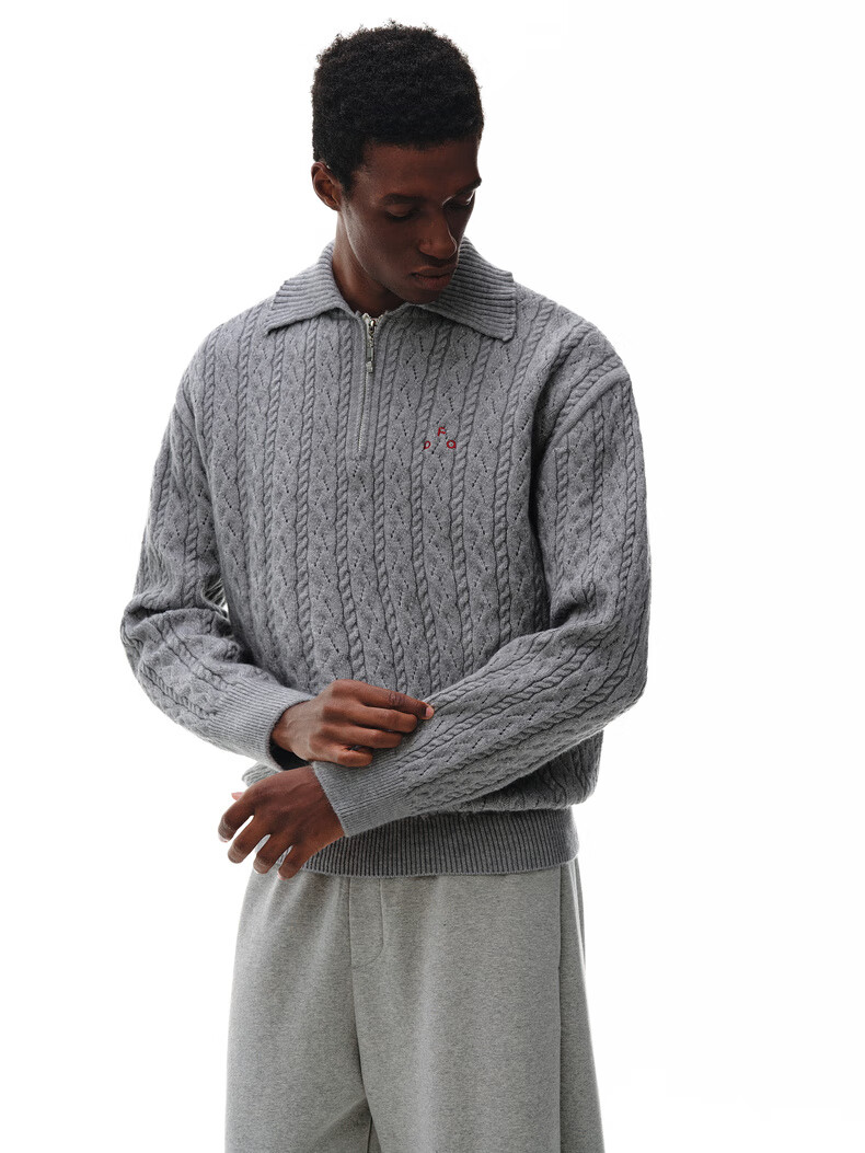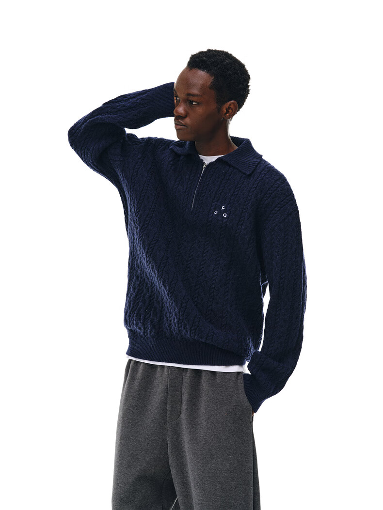 FPA绞花翻领休闲套头毛衣2025新款秋冬季内搭保暖高级感毛线针织衫男 藏青色 L