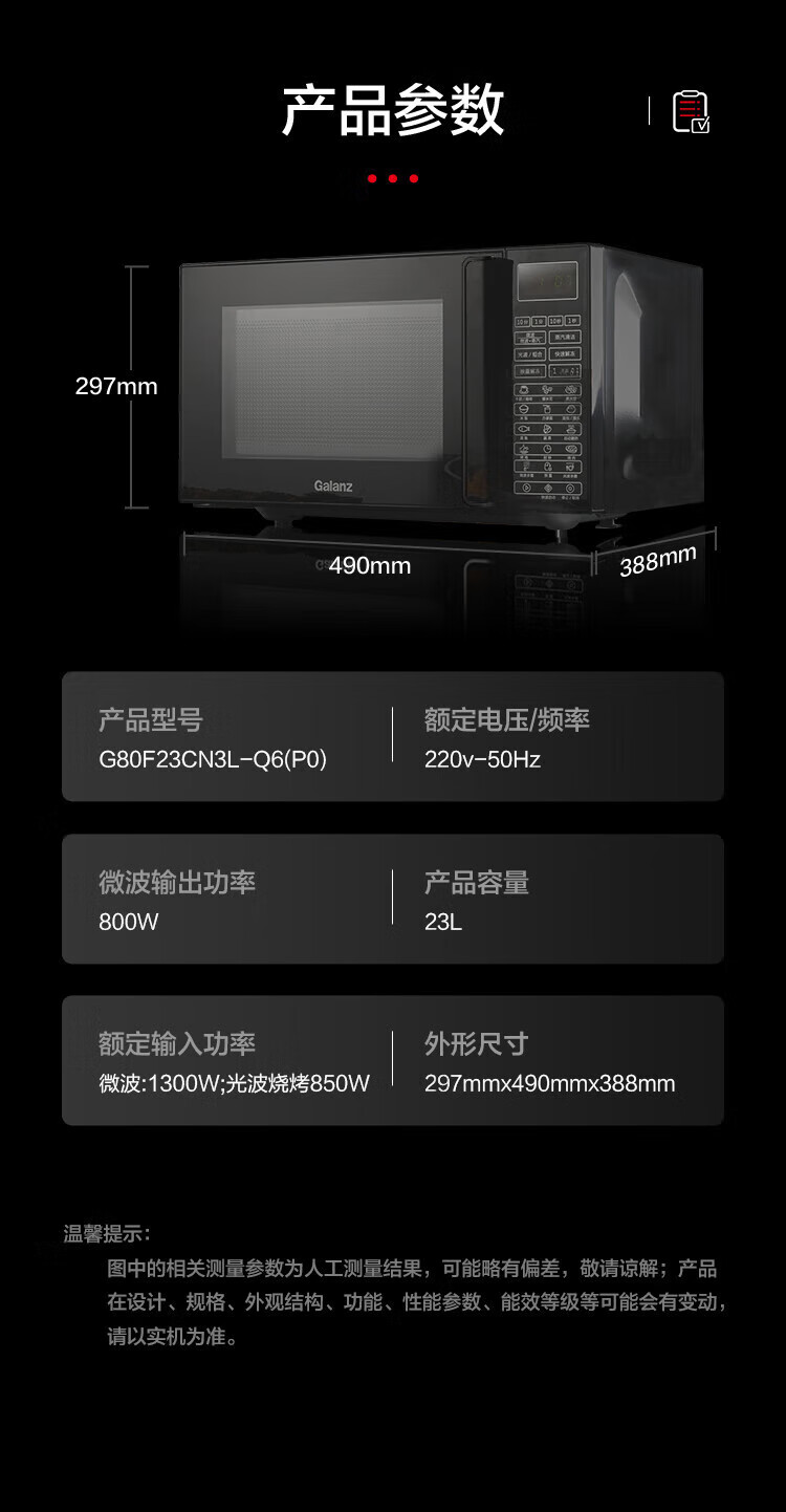 格兰仕(Galanz)家用微波炉烤箱一体机 23升大容量 800瓦速热 智能菜单 杀菌解冻 智能平板式 光波炉Q6(P0)