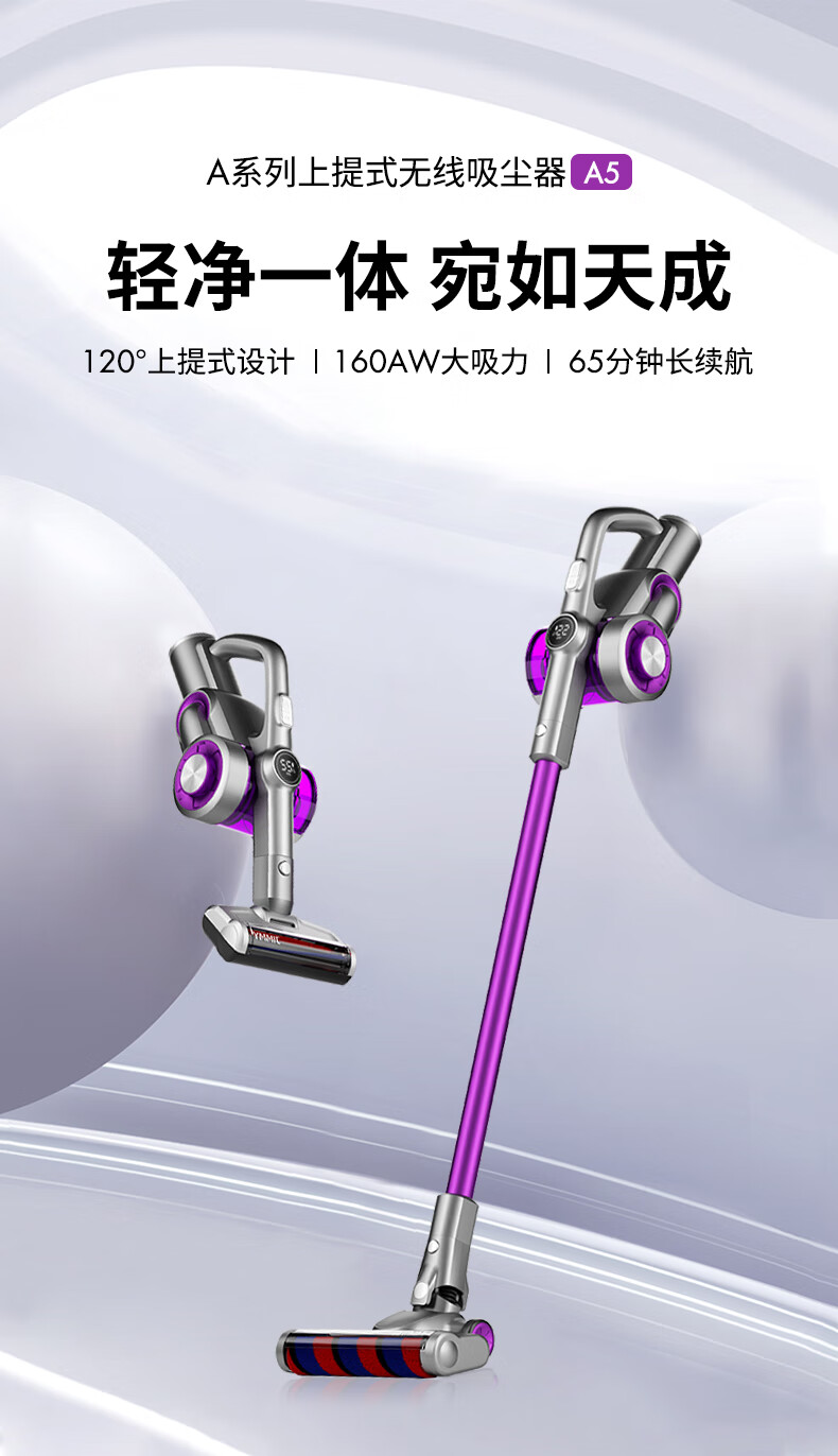 莱克吉米吸尘器家用大吸力无线小型手持式吉米吸尘器A5 玫瑰红