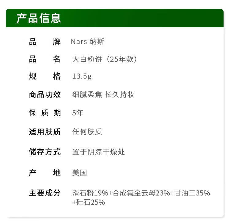 NARS纳斯25新品蔚蓝限定蜜粉饼13.5g无暇定妆控油 有粉扑 生日礼物