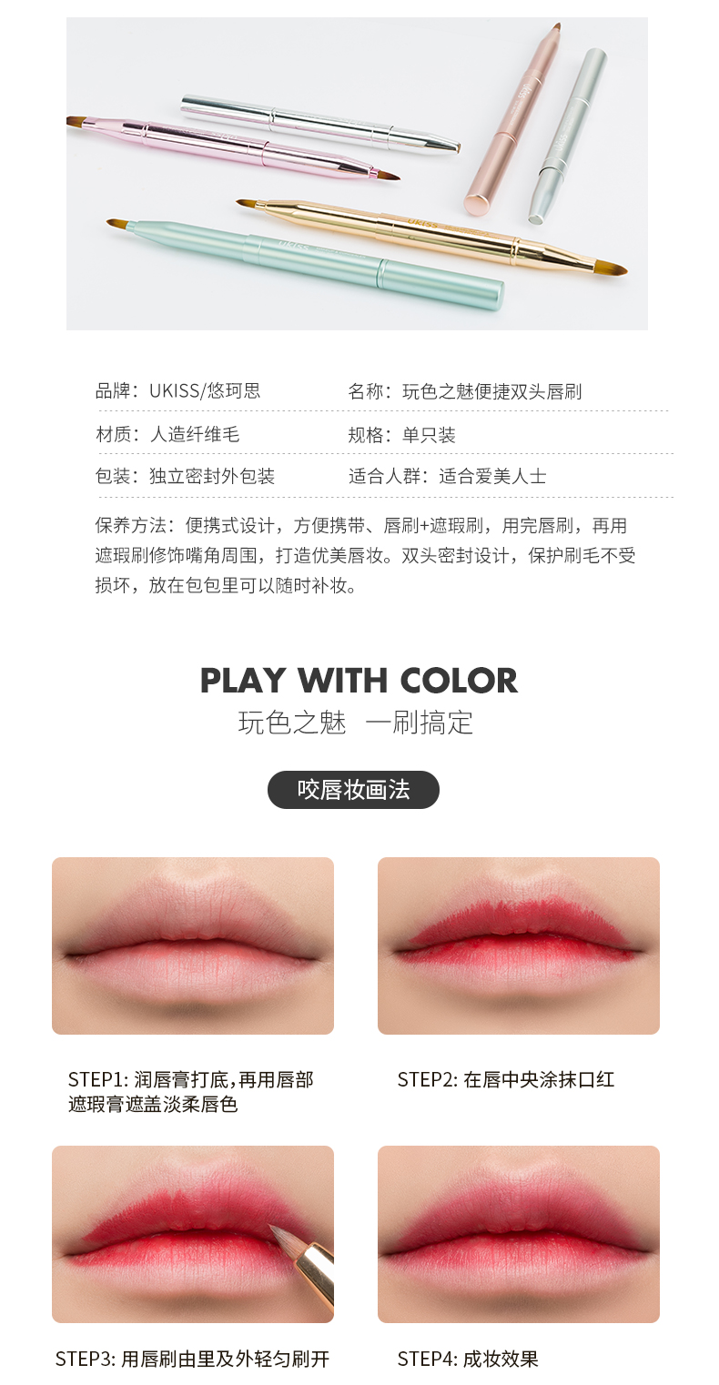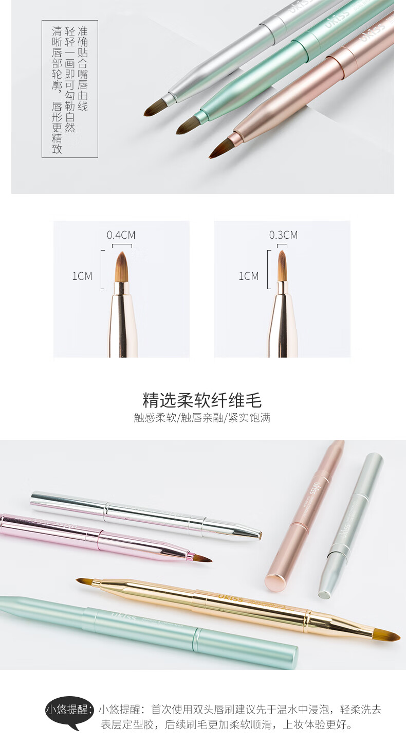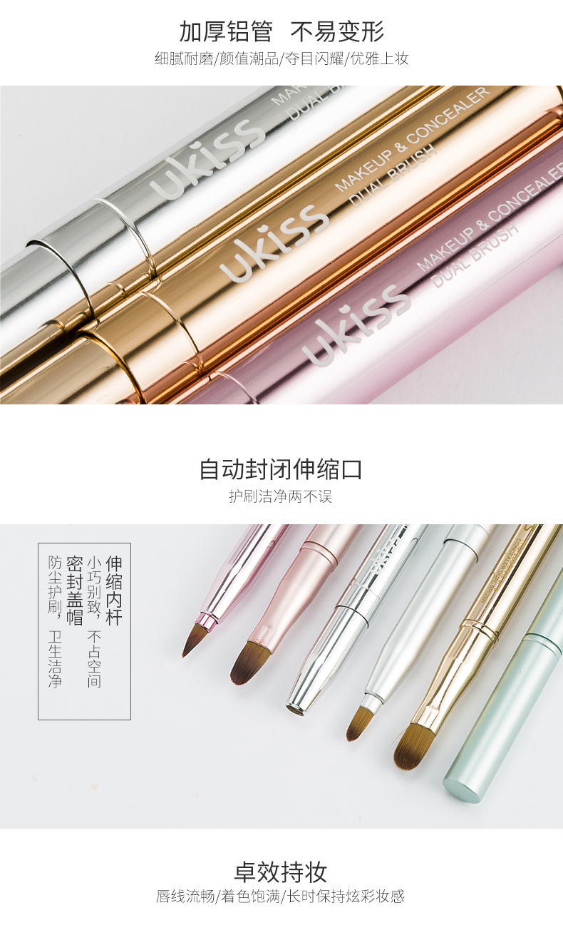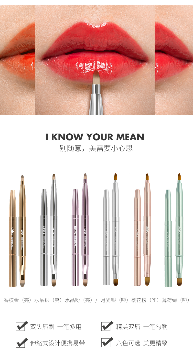 悠珂思(ukiss)便携双头唇刷(哑光粉)可伸缩式圆头晕染口红遮瑕唇线笔细节化妆刷