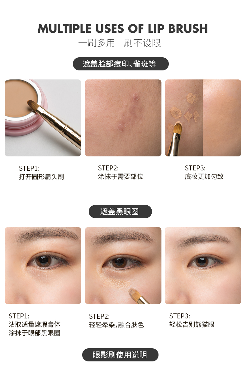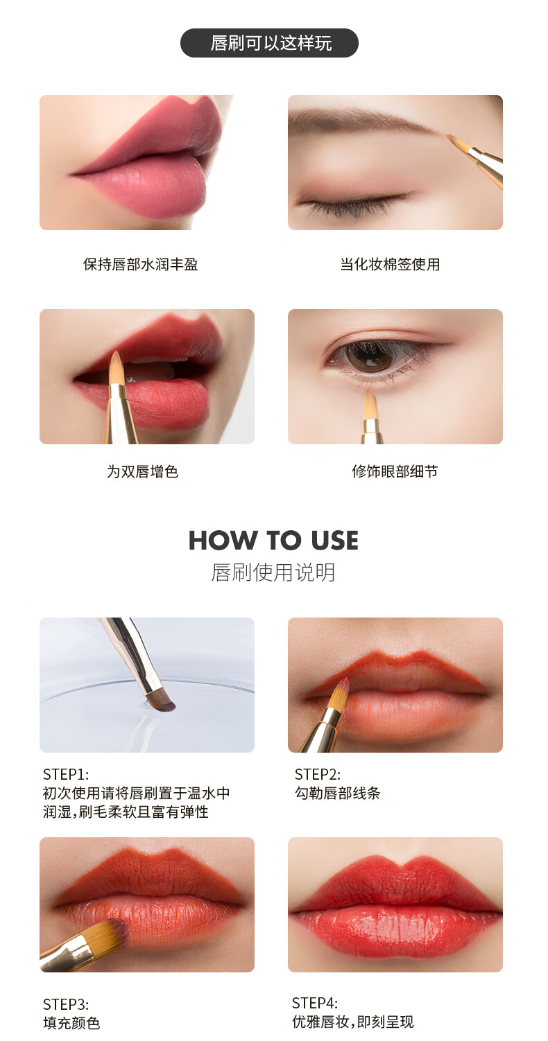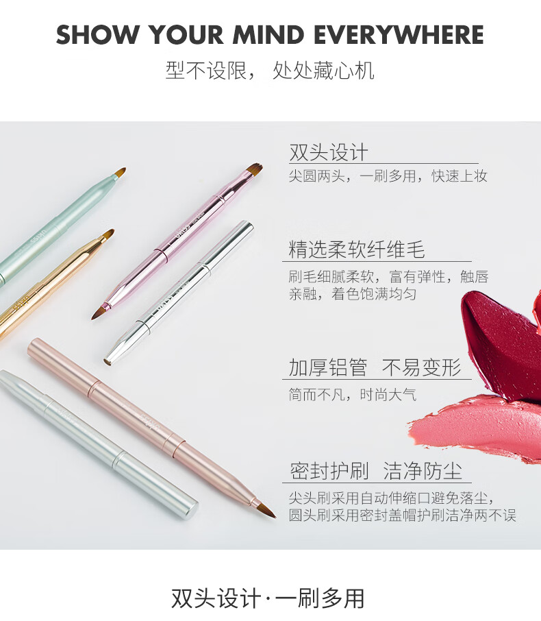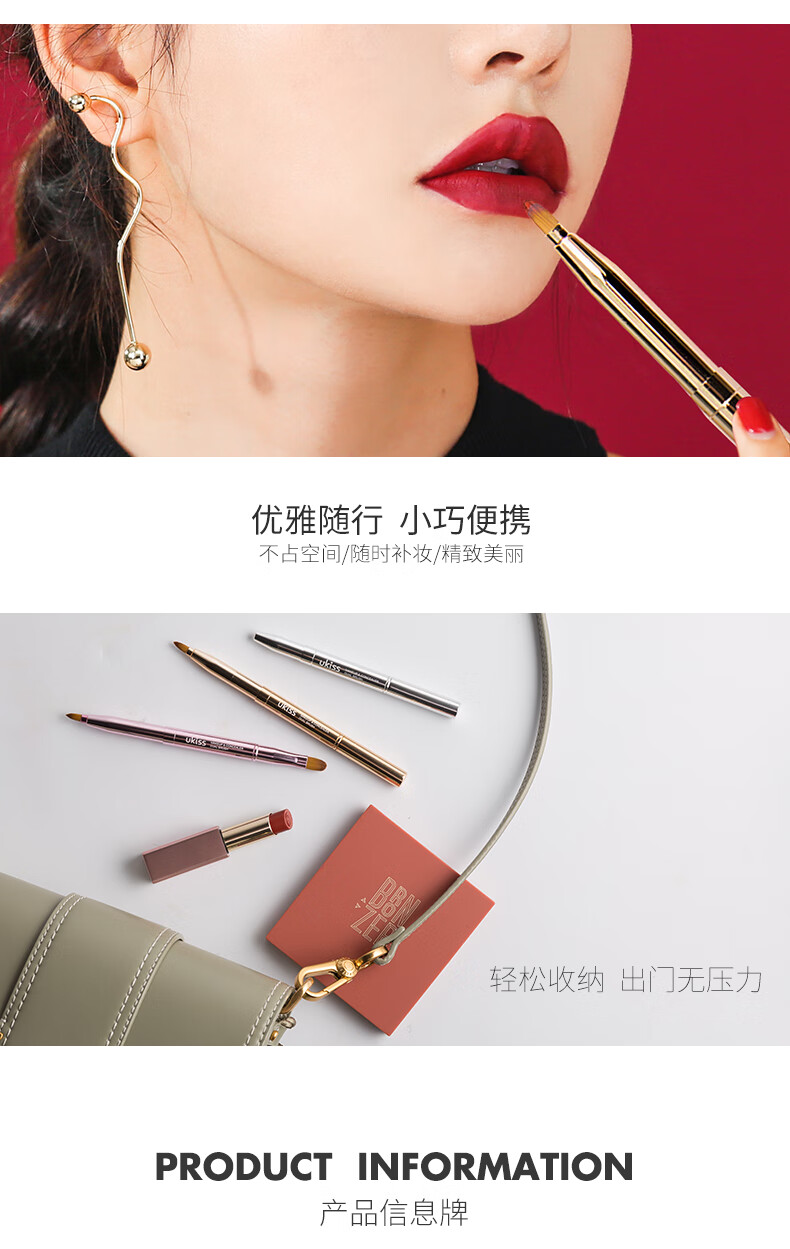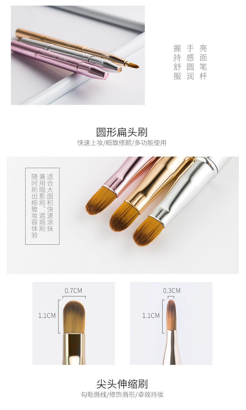 悠珂思(ukiss)便携双头唇刷(哑光粉)可伸缩式圆头晕染口红遮瑕唇线笔细节化妆刷