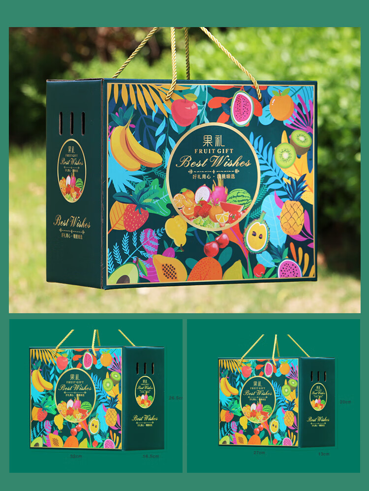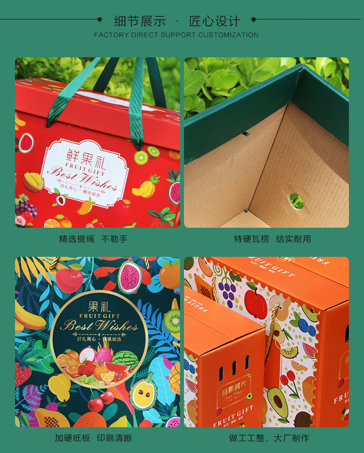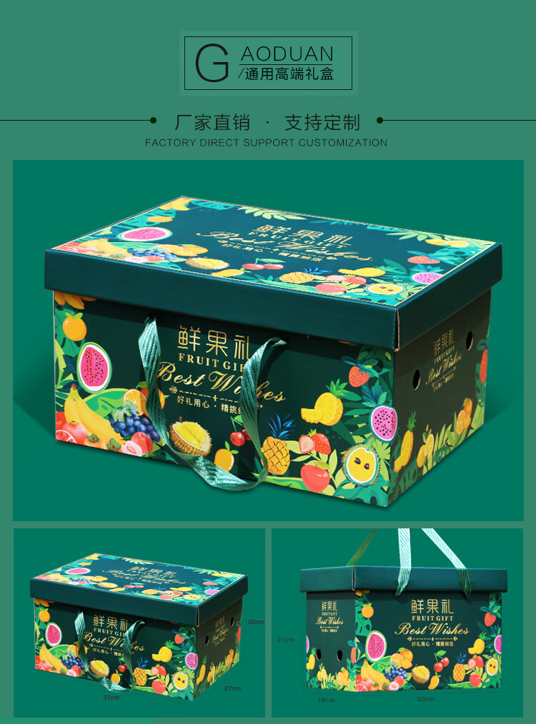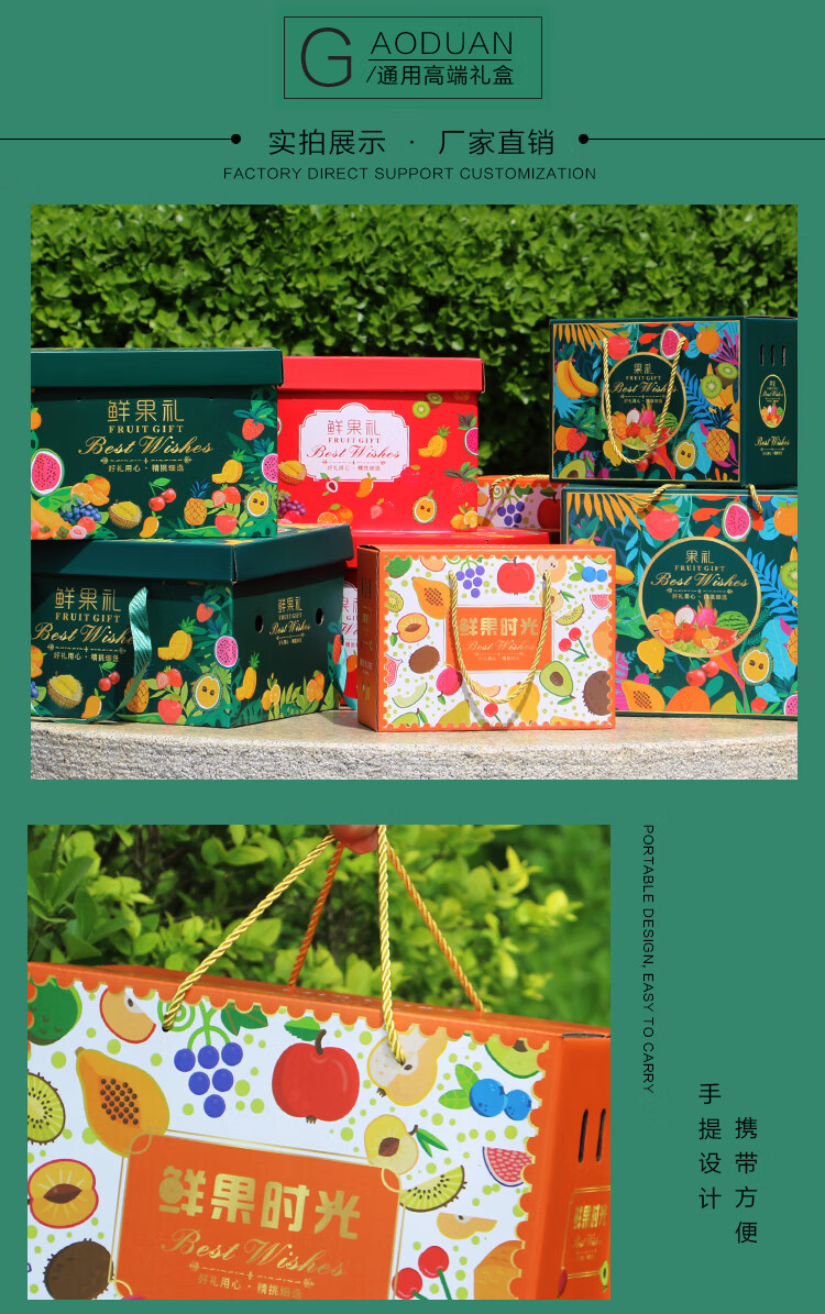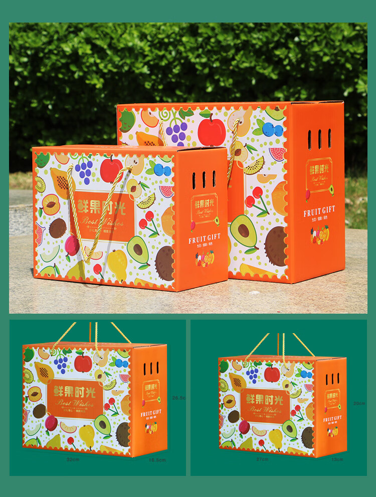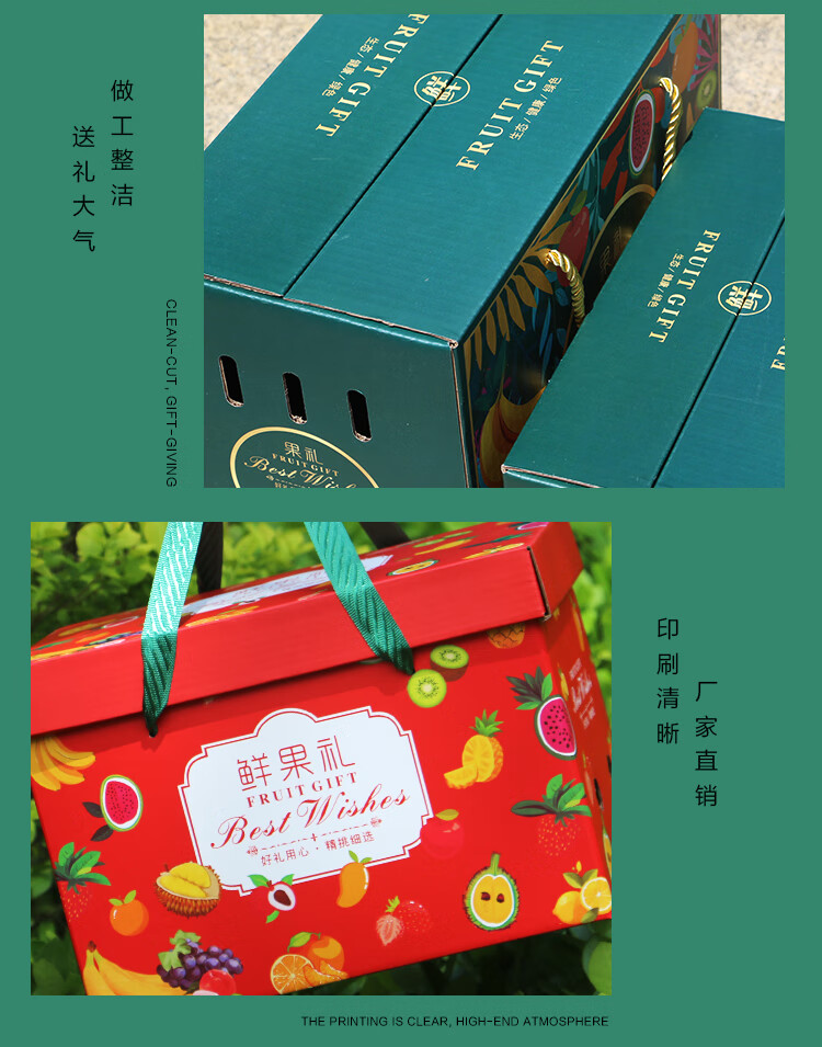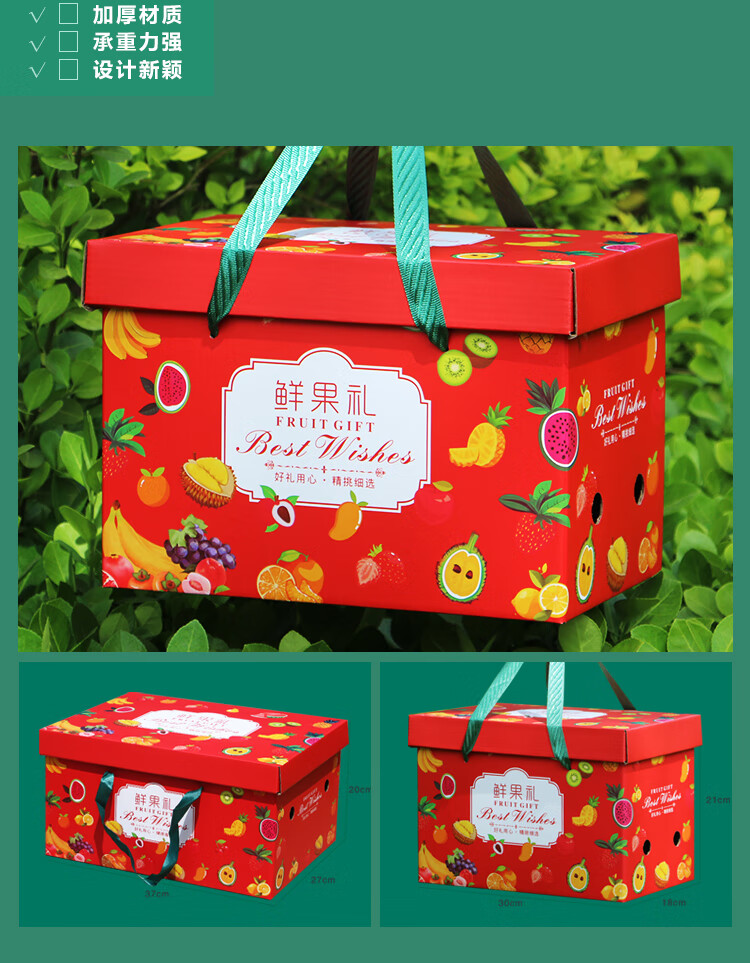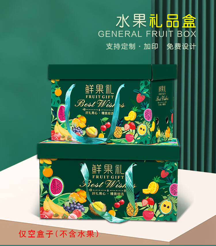 下雨荷通用水果礼盒包装盒5-10斤装空盒新款高档手提纸箱天地盖礼盒定制 鲜果礼 红色小号(6-10斤装) 1个空盒