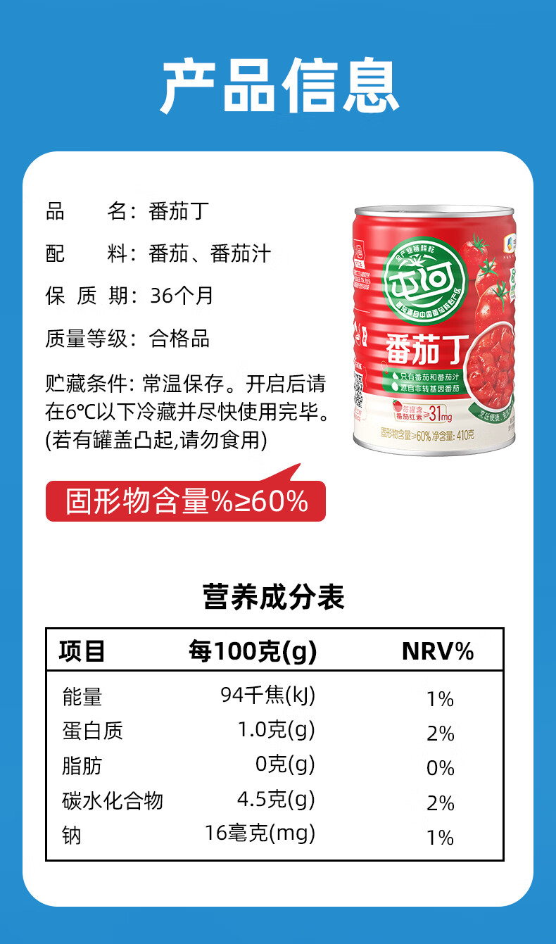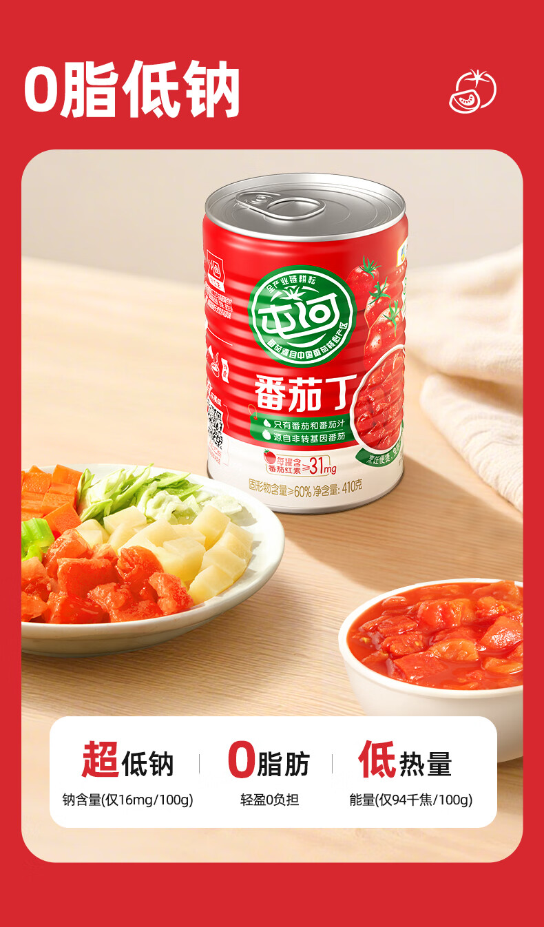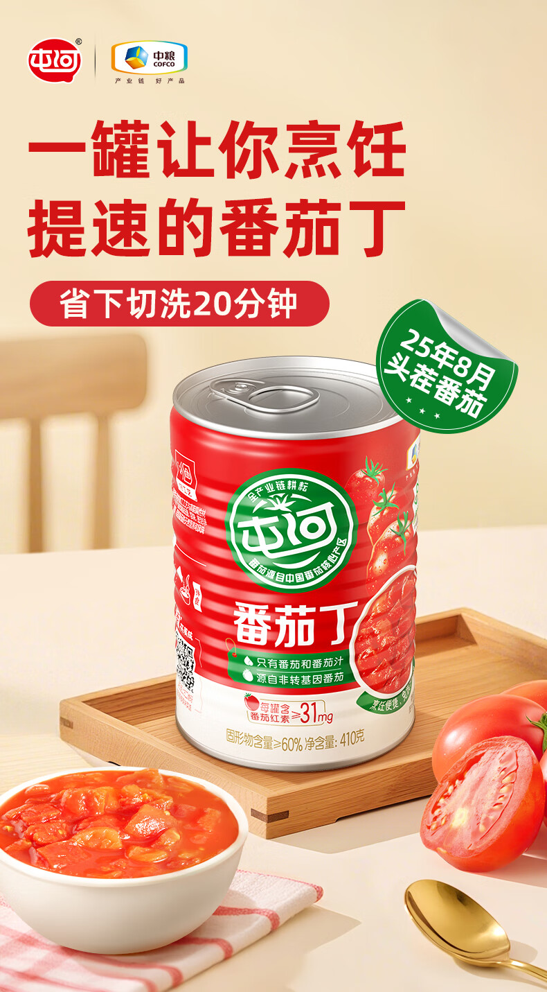 屯河25年新货 番茄丁410g*6 0添加剂西红柿块番茄酱罐头中粮出品