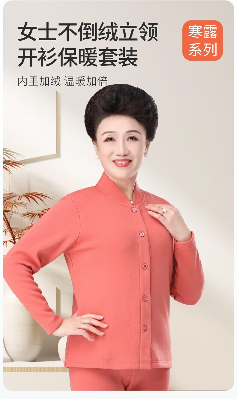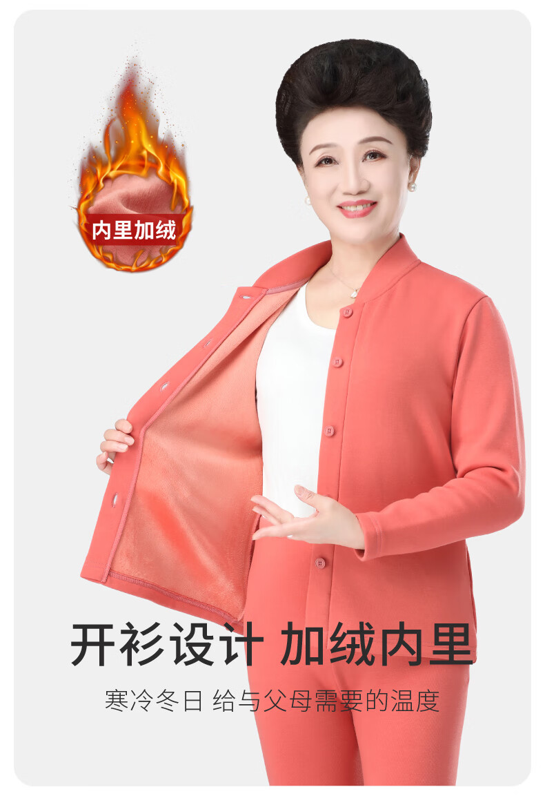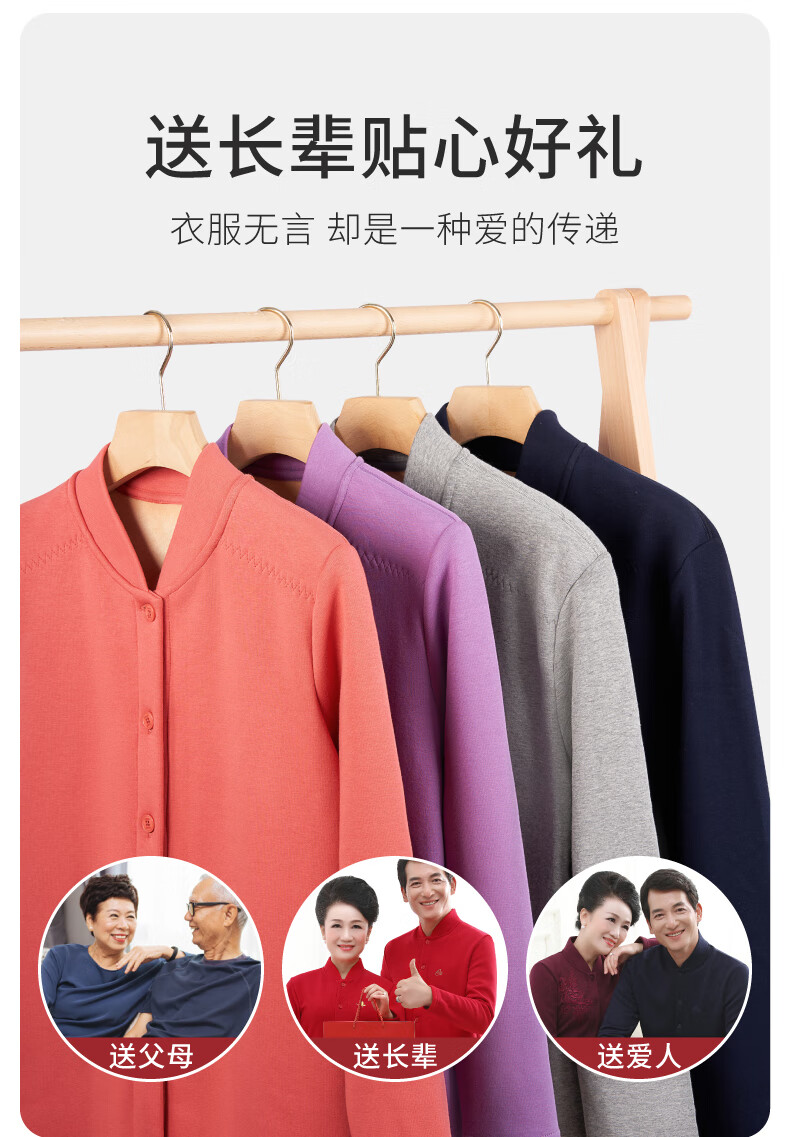 春织开衫老人保暖衣女加绒加厚妈妈秋衣中老年人上衣男奶奶单件内衣冬 【男款 上衣】麻灰 95/XL