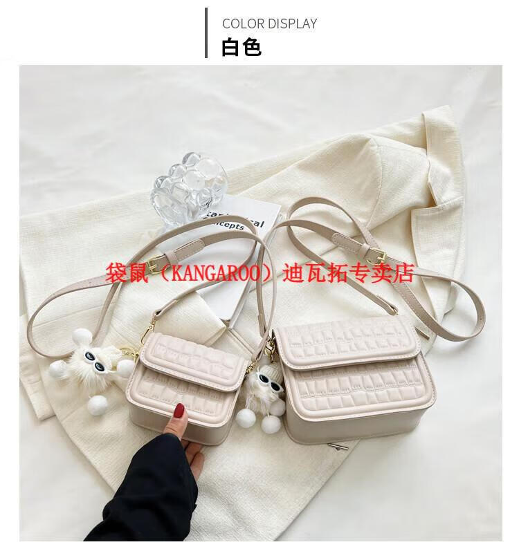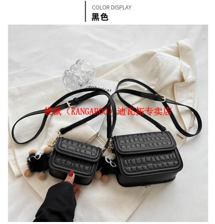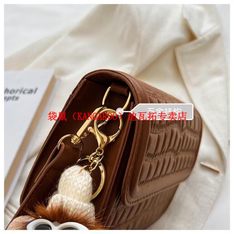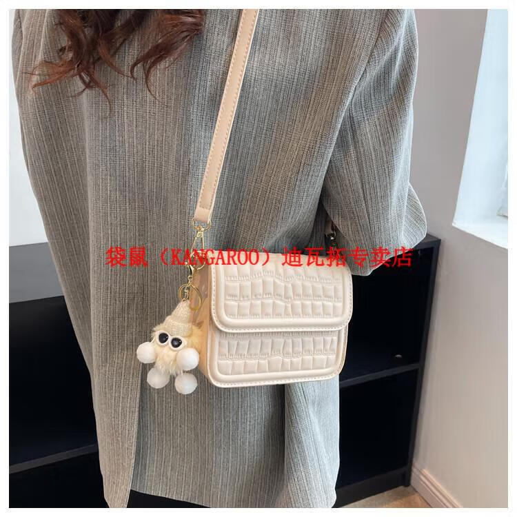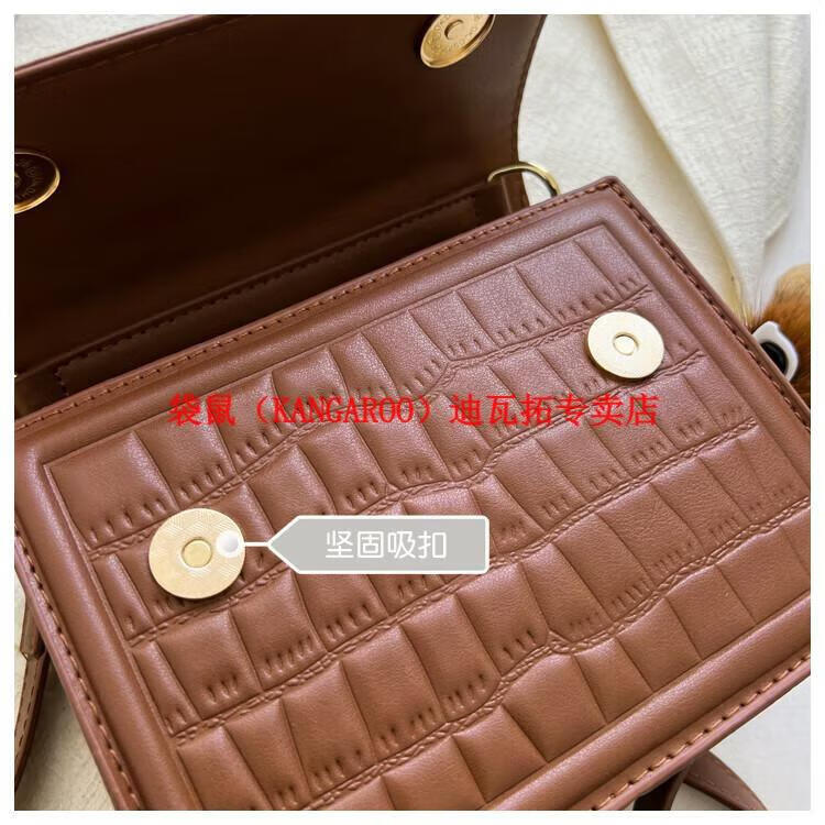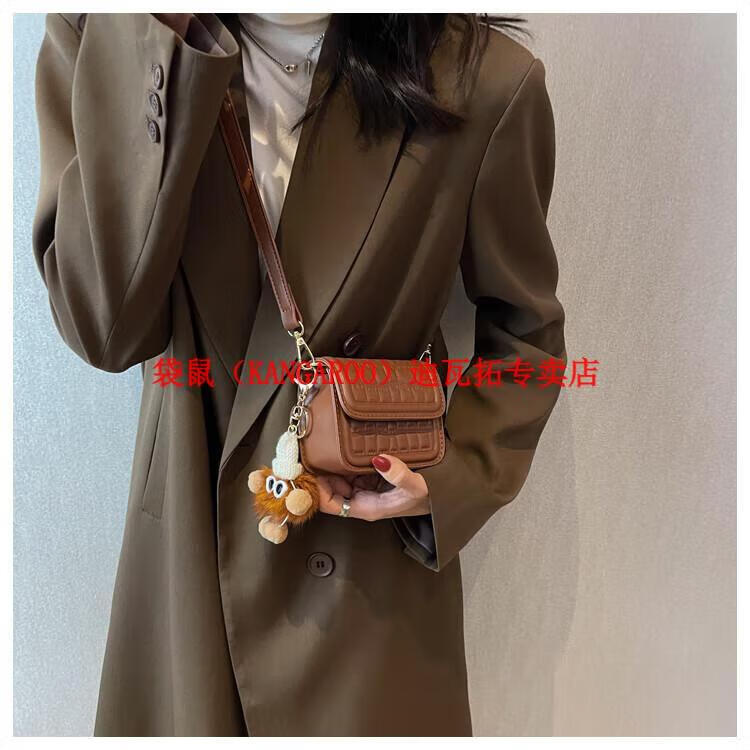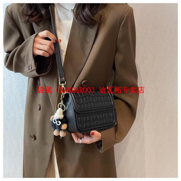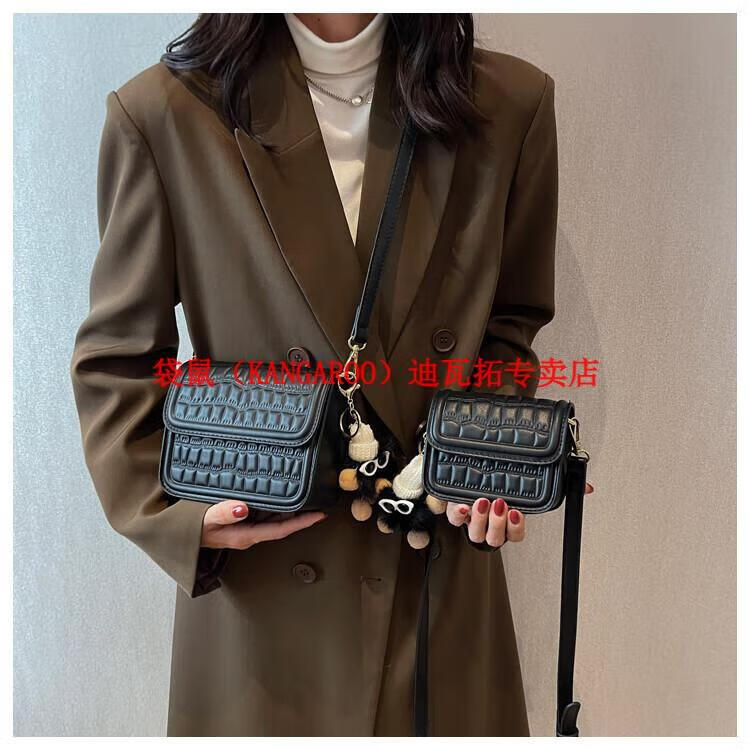 袋鼠(KANGAROO)迷你小包包女2025新款时尚斜挎包小方包口红包真皮 黑色小号 带公仔挂件