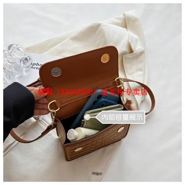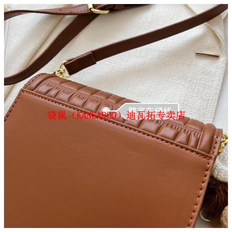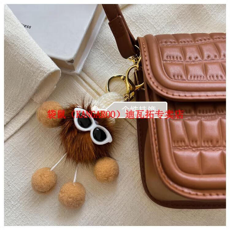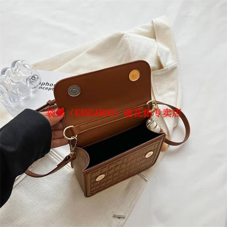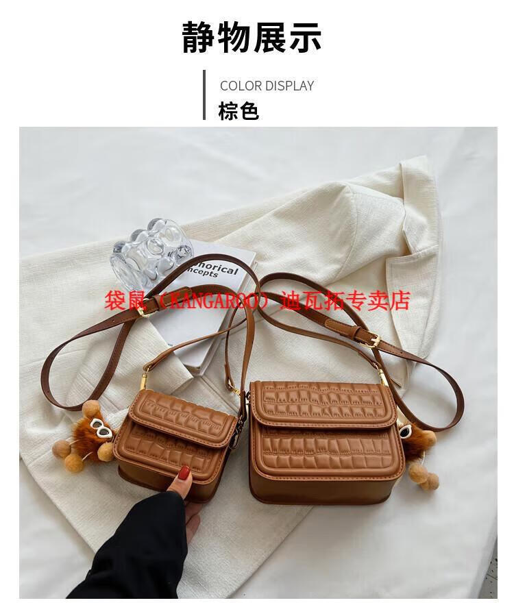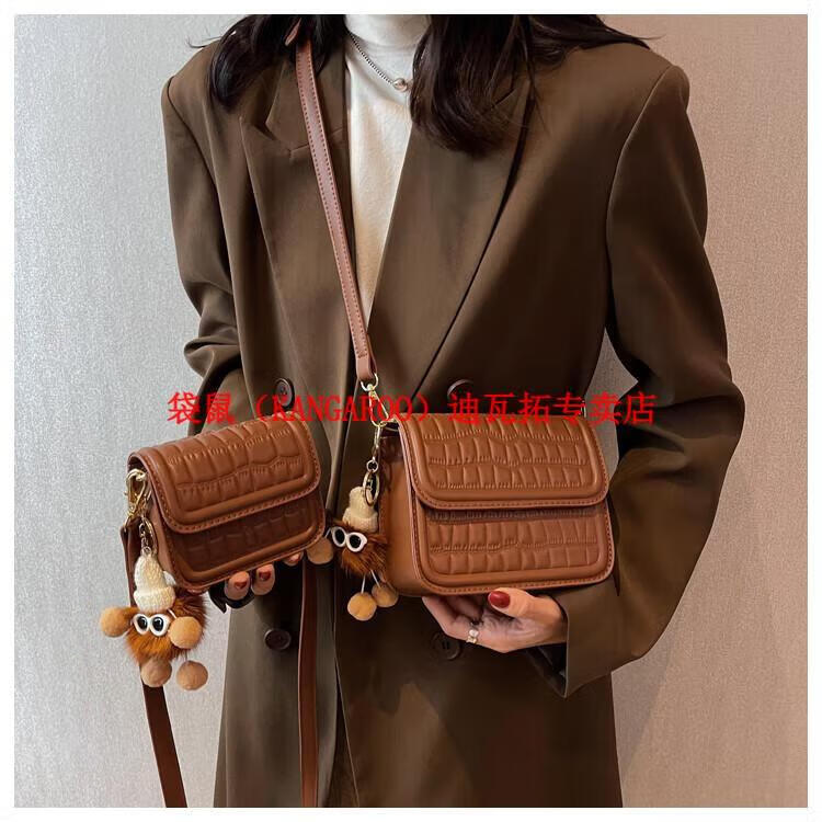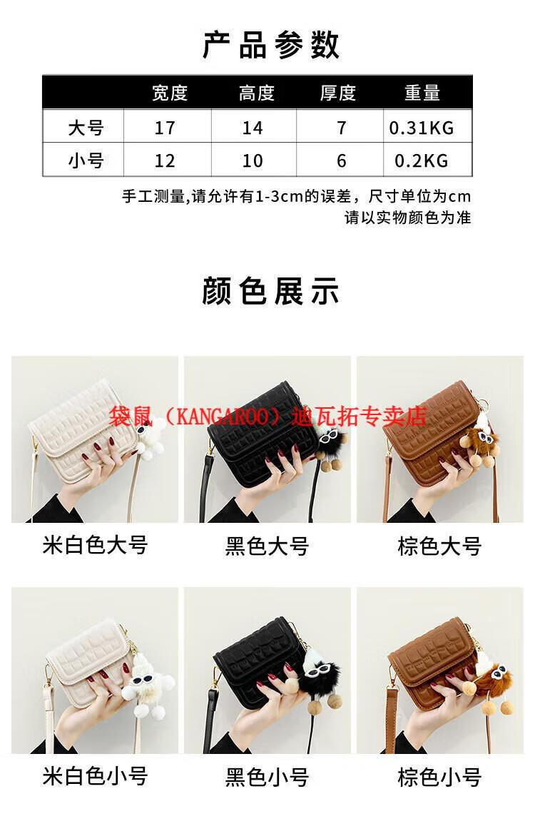 袋鼠(KANGAROO)迷你小包包女2025新款时尚斜挎包小方包口红包真皮 黑色小号 带公仔挂件