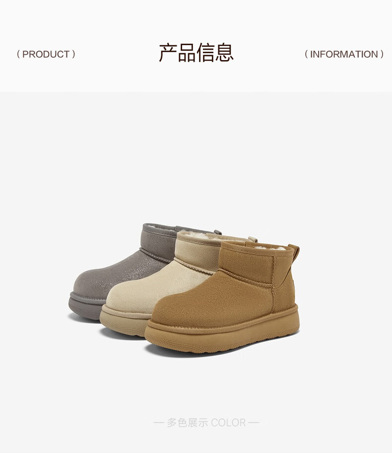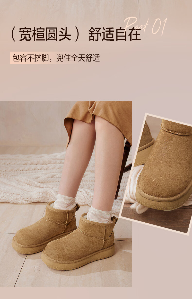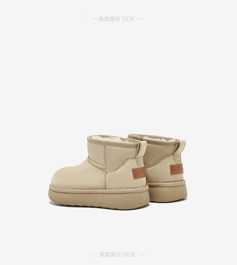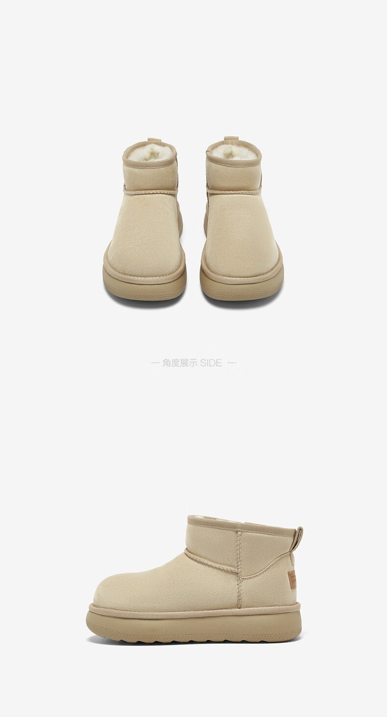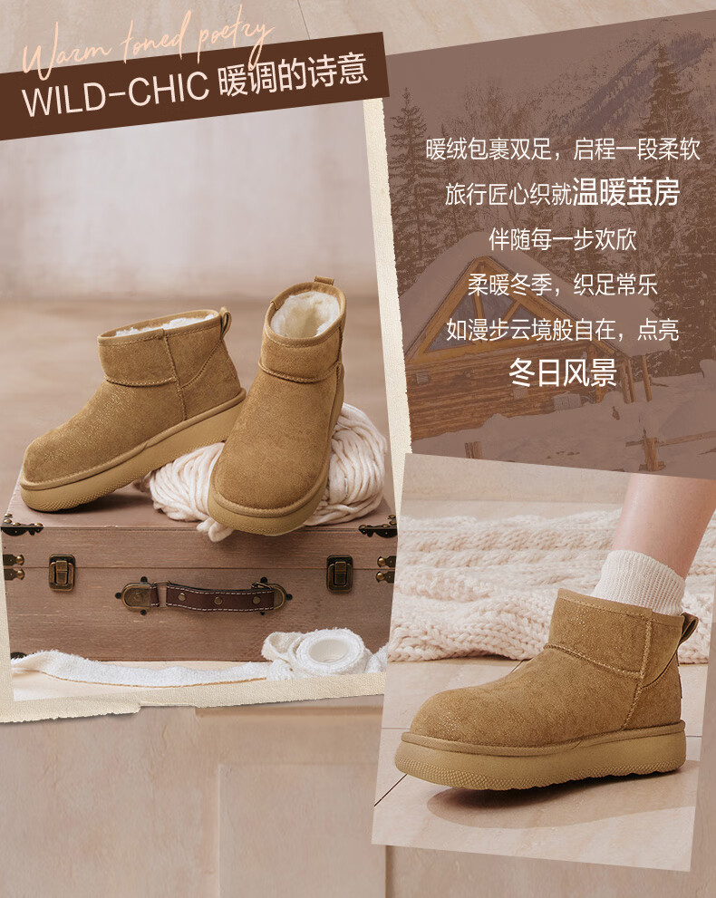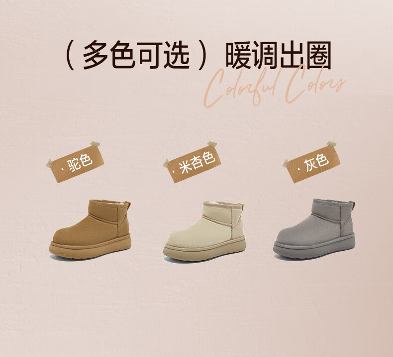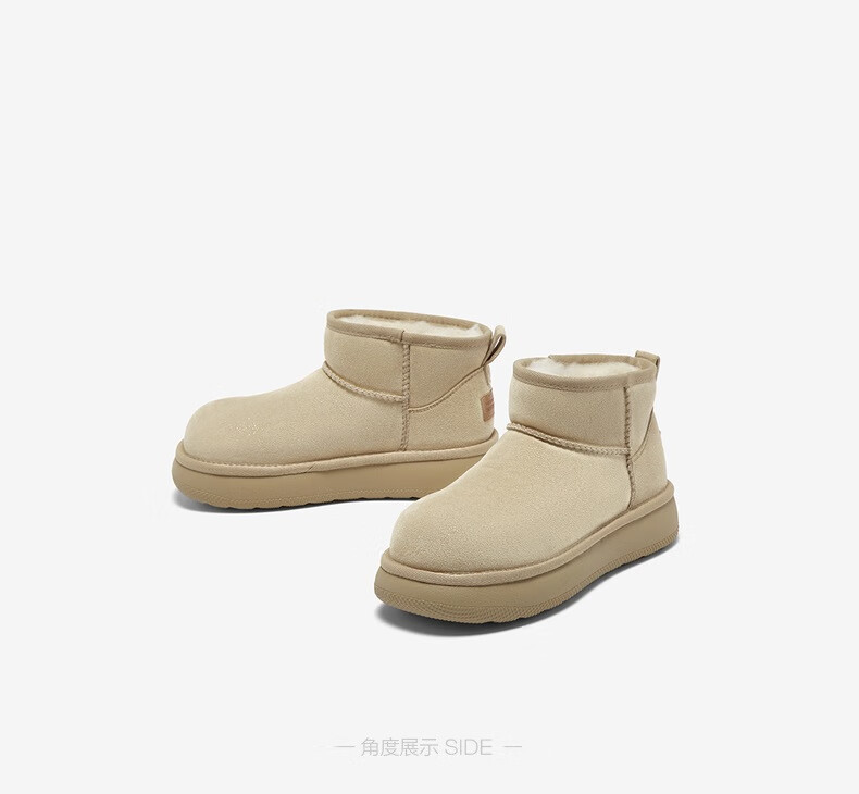 百思图2025冬季新款雪地靴时尚简约户外休闲女短靴J9512DD5 米杏色 37