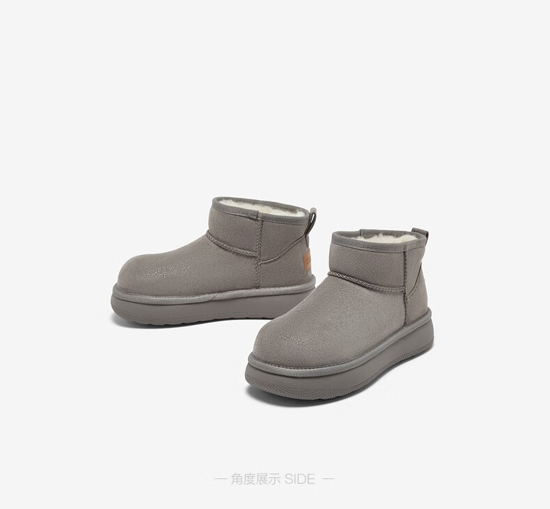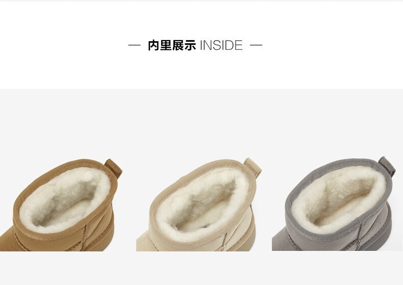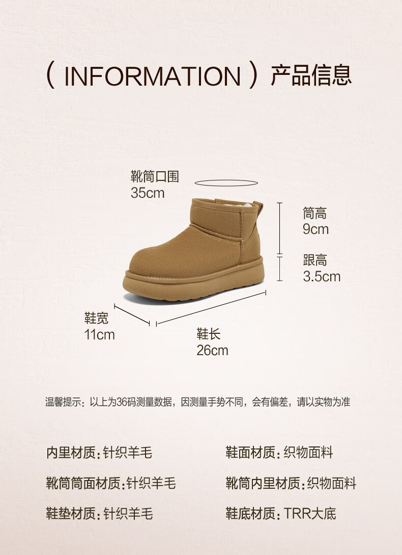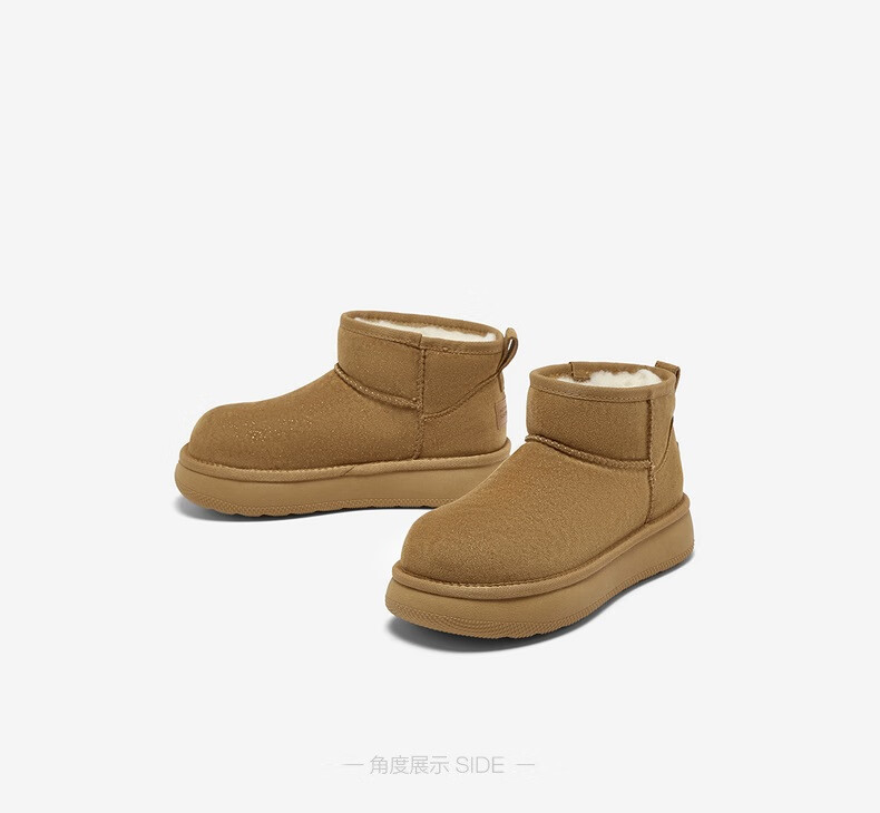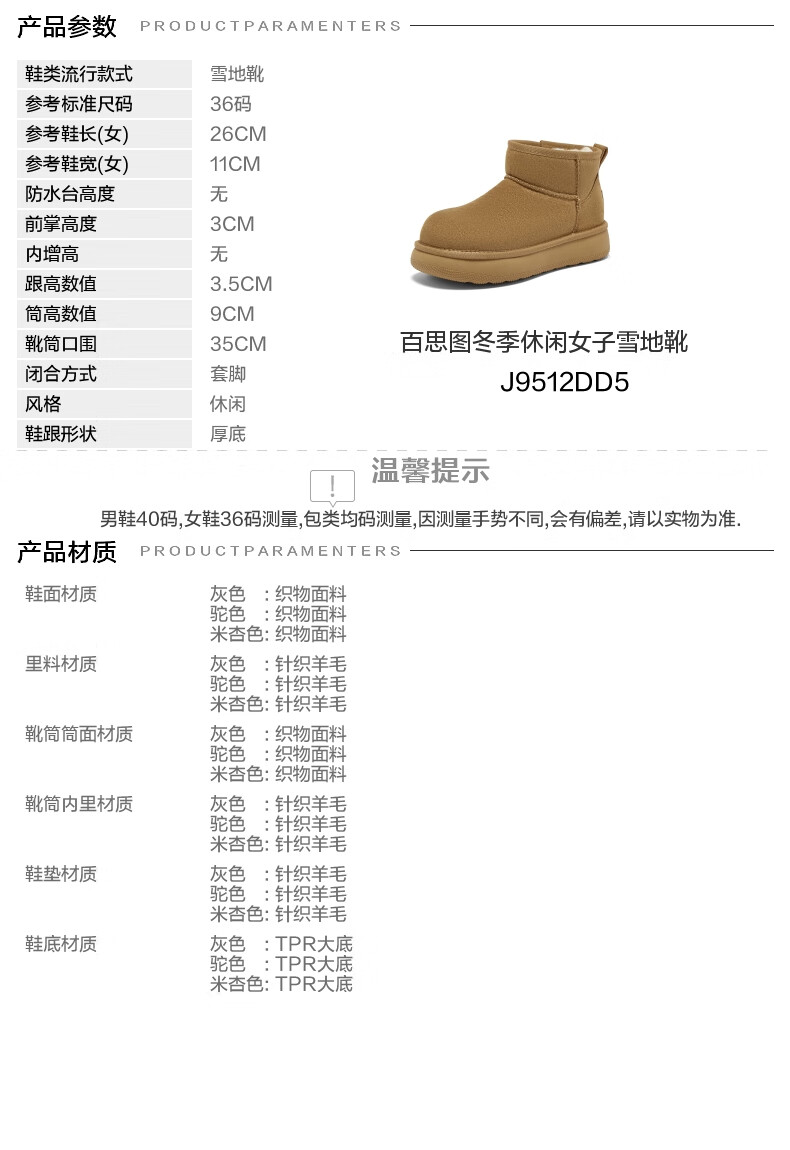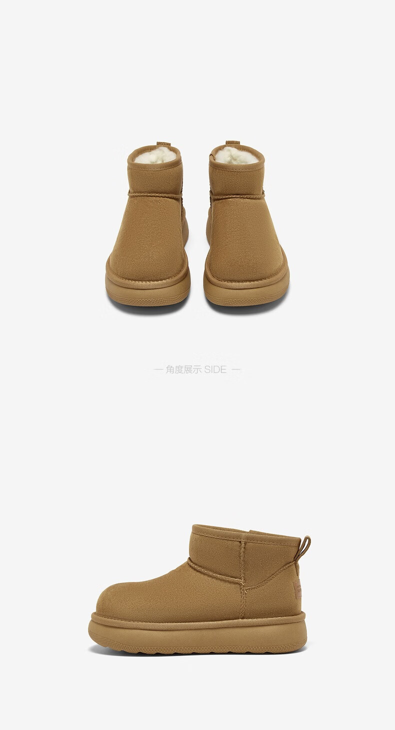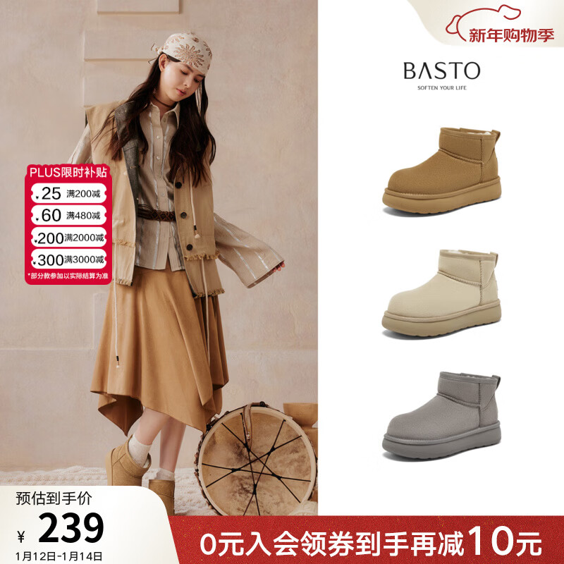 百思图2025冬季新款雪地靴时尚简约户外休闲女短靴J9512DD5 米杏色 37