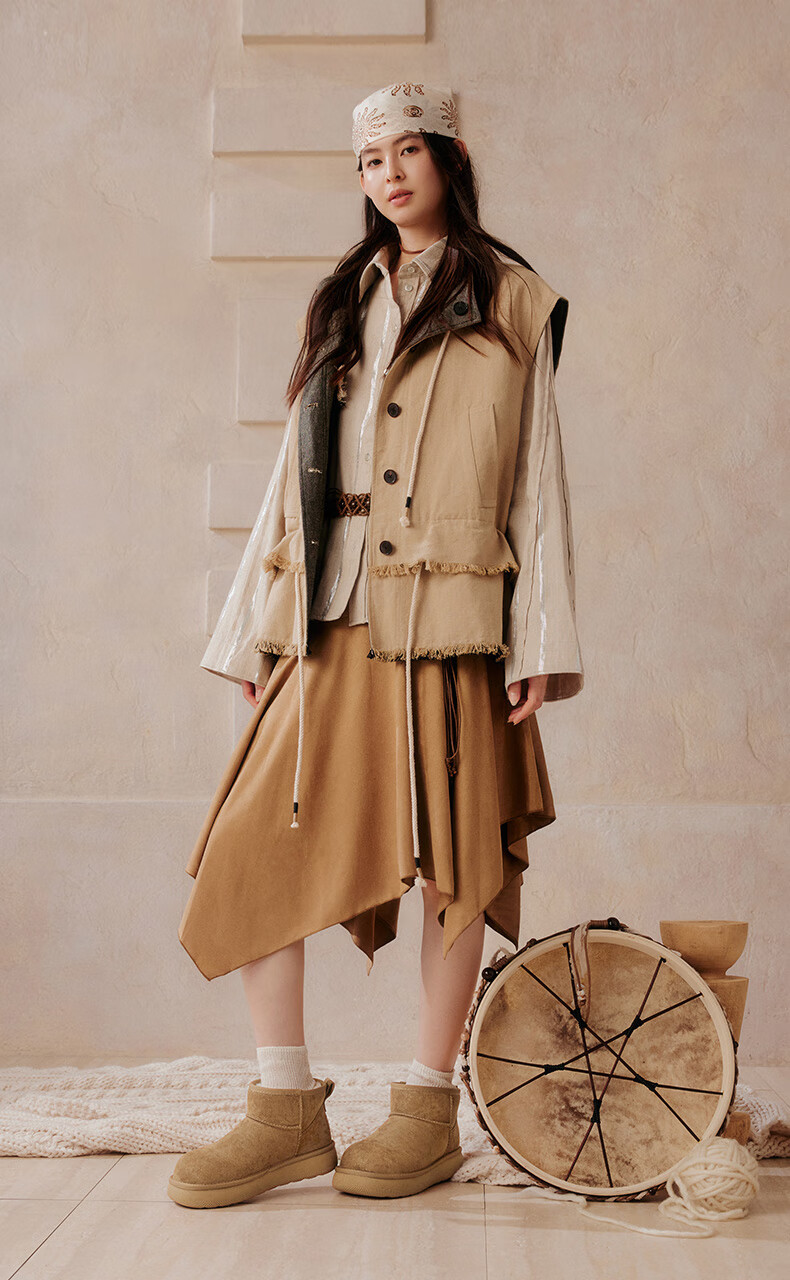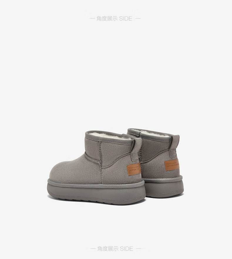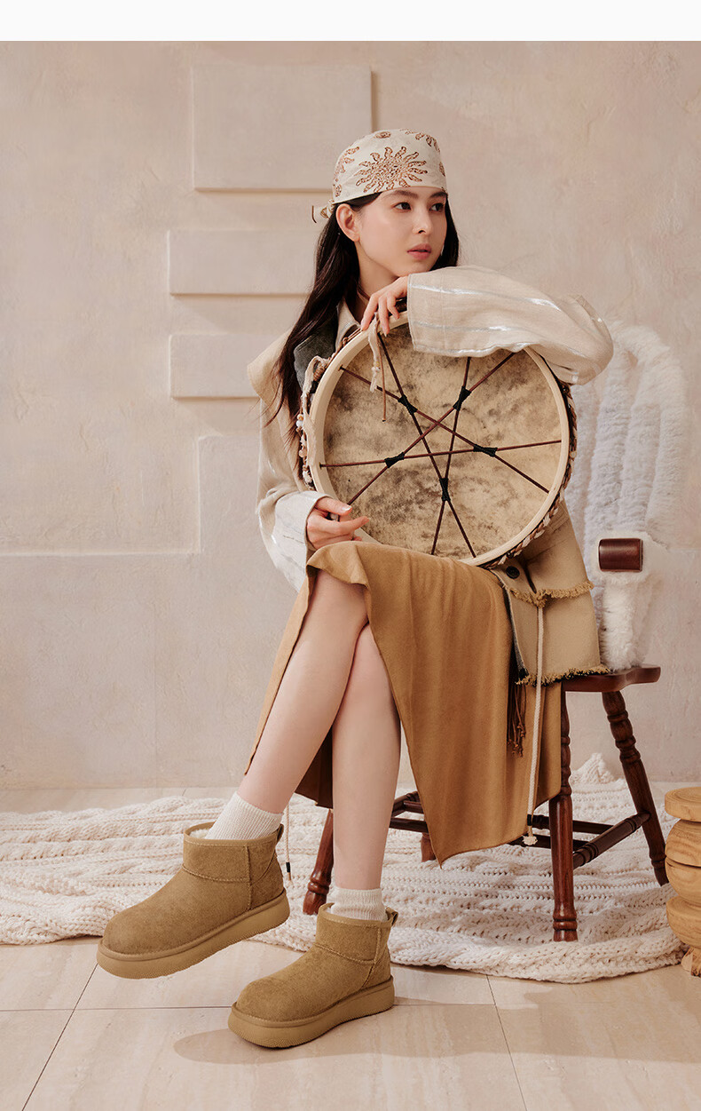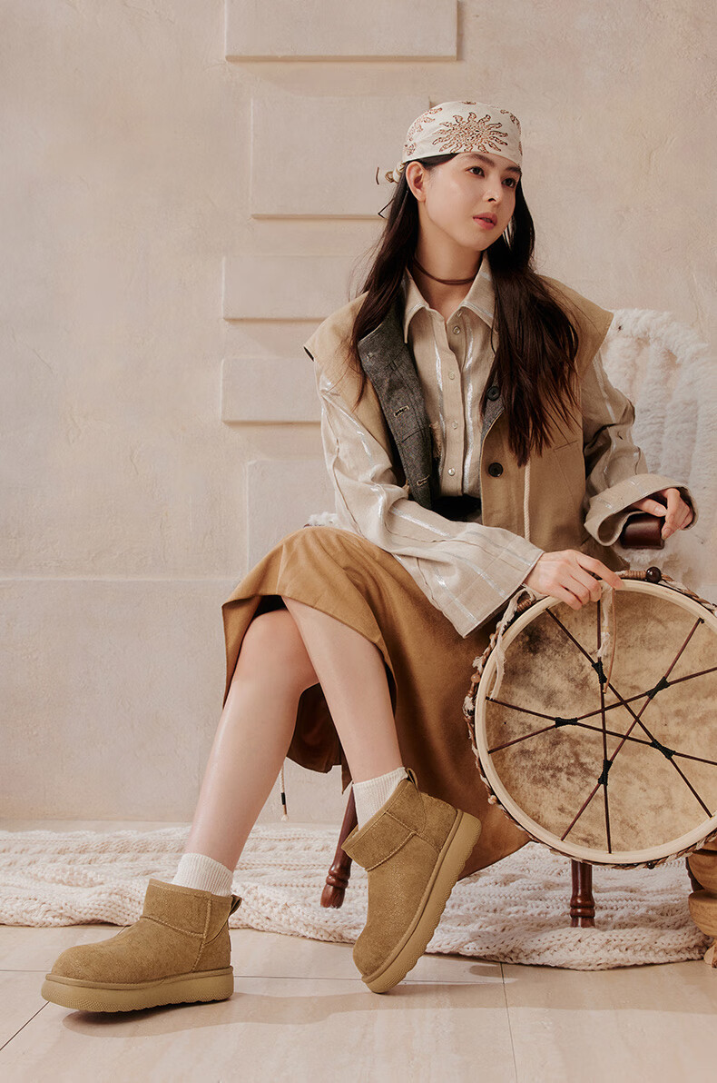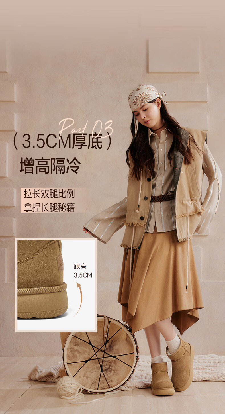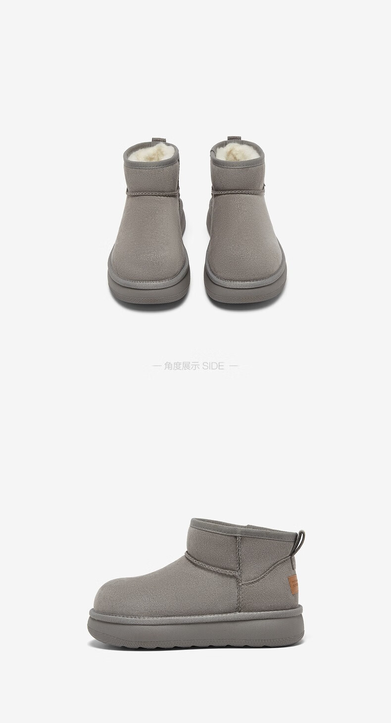 百思图2025冬季新款雪地靴时尚简约户外休闲女短靴J9512DD5 米杏色 37