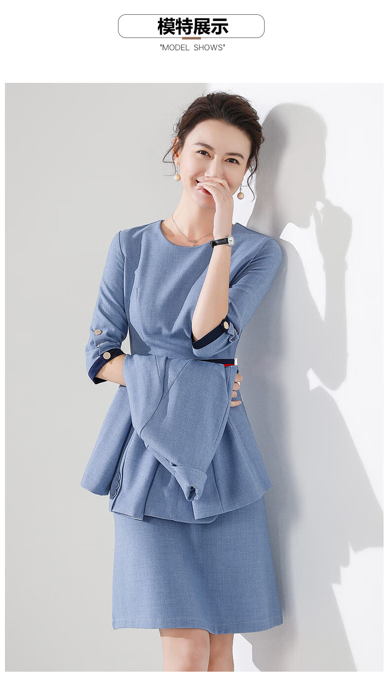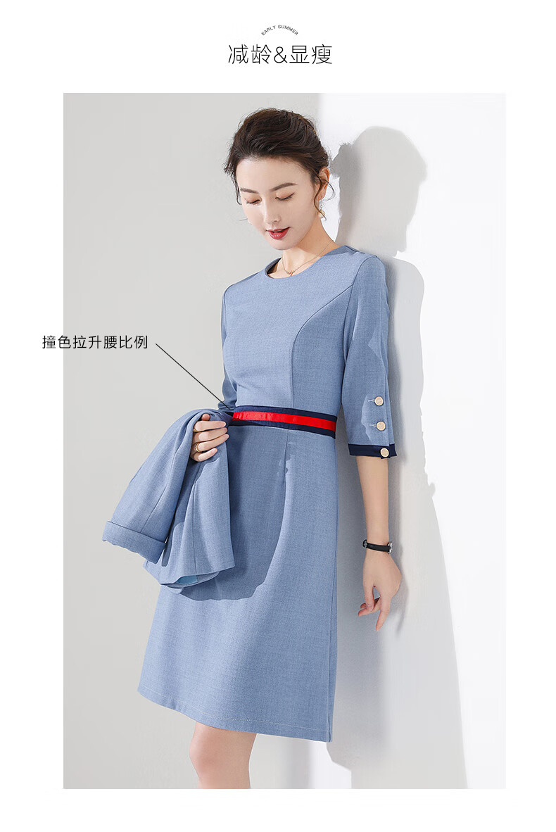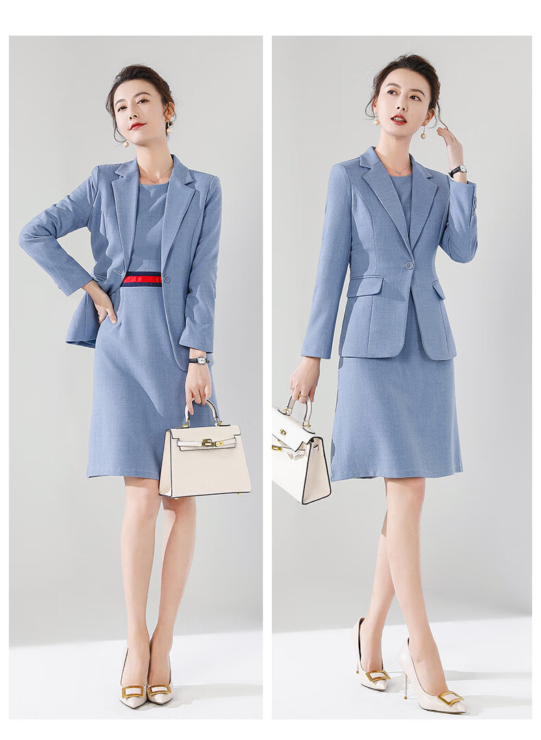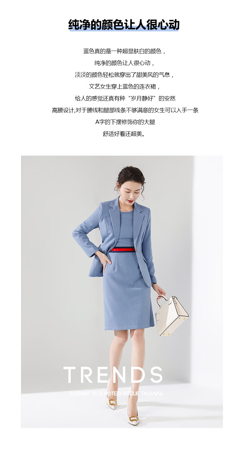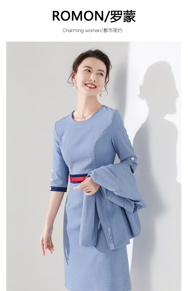 罗蒙(ROMON)小西装春秋款职业装连衣裙女神气质时尚A字裙正装高端定制工作服 蓝色西装+连衣裙 S