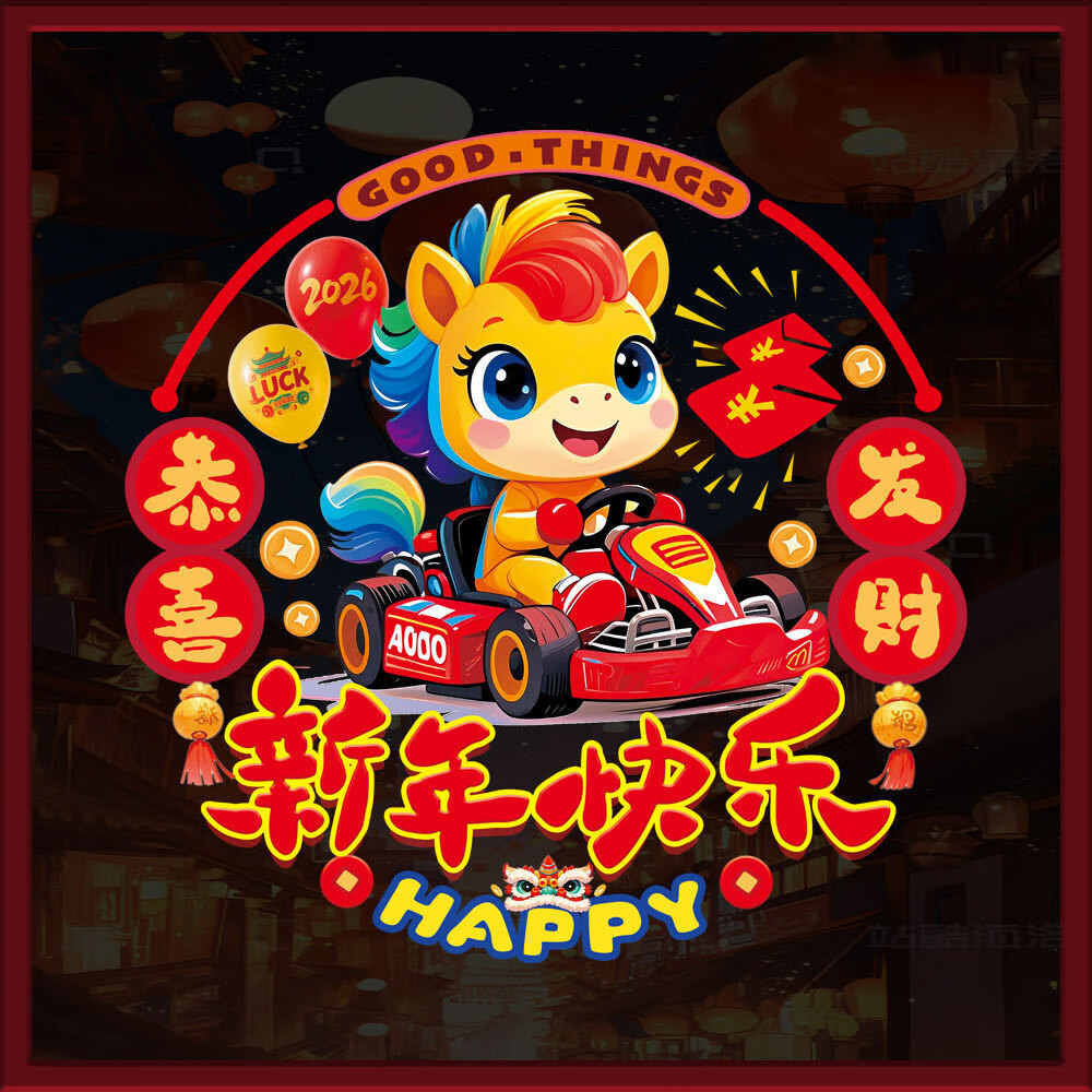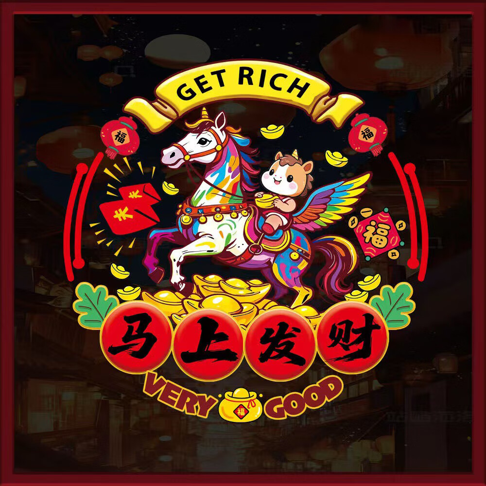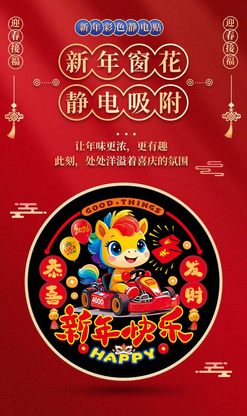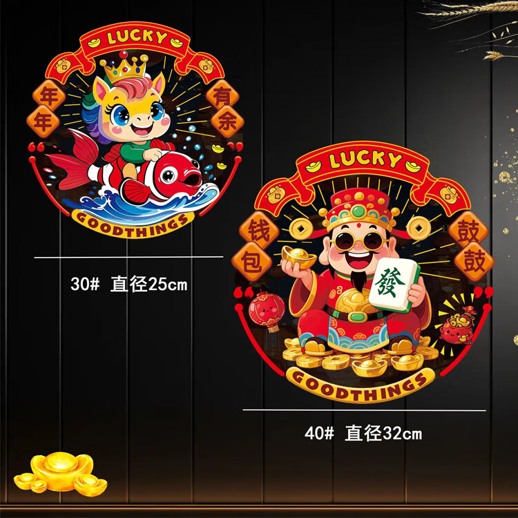 2026新年生肖财神静电贴春节过年玻璃加厚窗花剪纸图案装饰贴纸 新年贴纸【有钱花一对】静电免胶