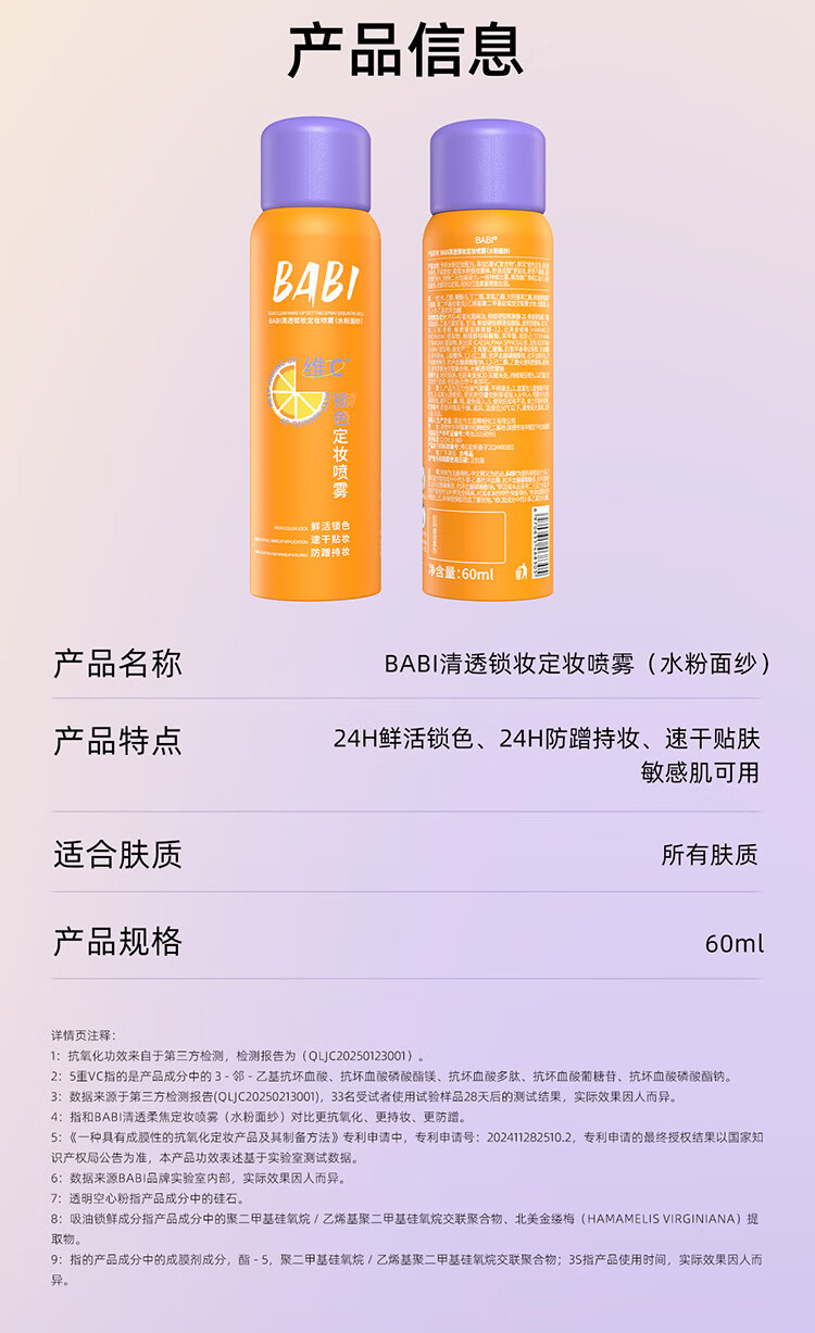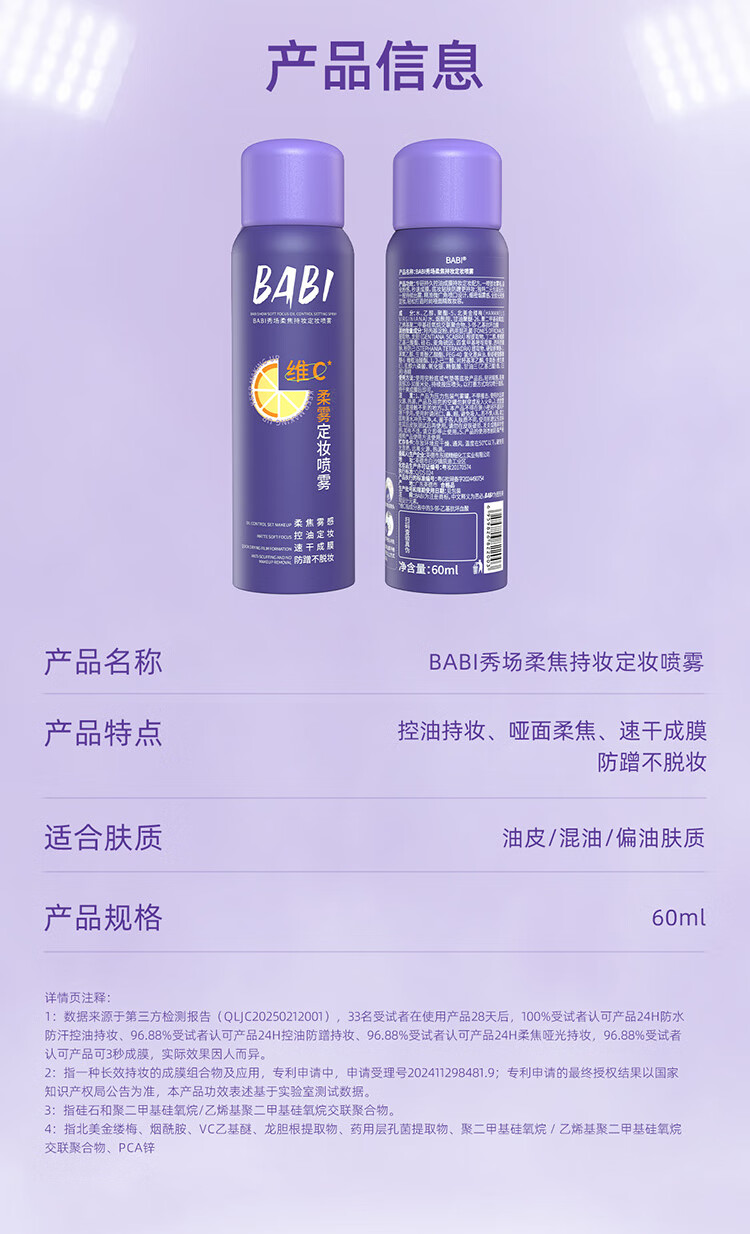 屈臣氏新年礼物BABI定妆喷雾 秀场柔焦持妆 60ml