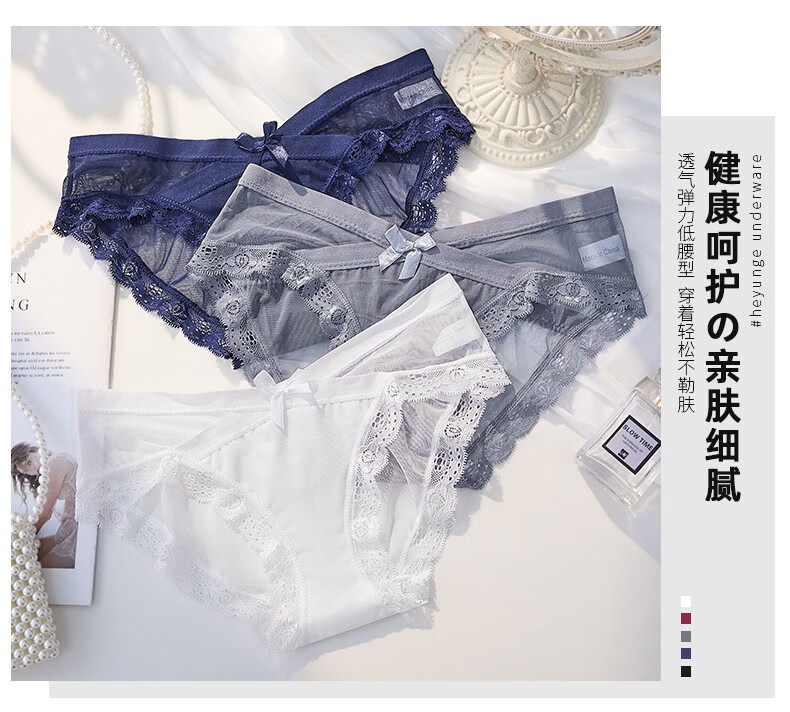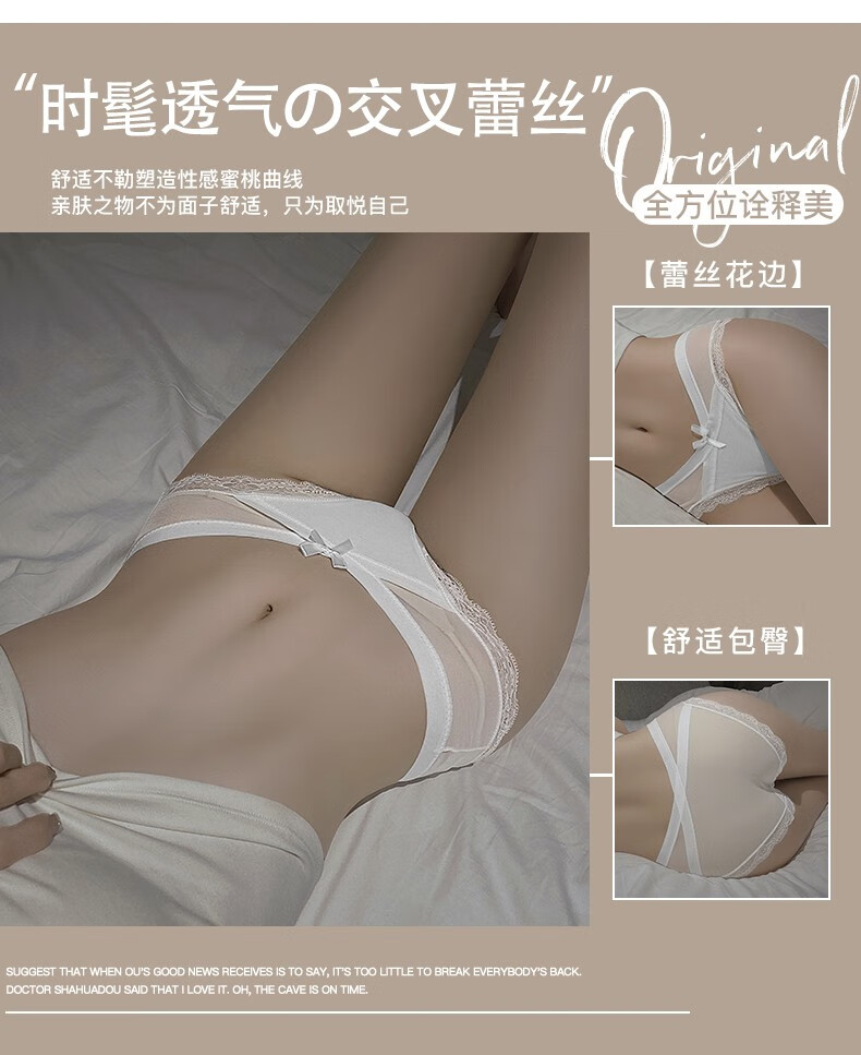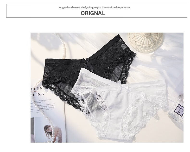 Glambody MAGIC NATURAL LINE内裤女夏季薄款亲肤棉底档透气低腰有弹力性感蕾丝三角裤NK1304 白色 1条 M (80-100斤)