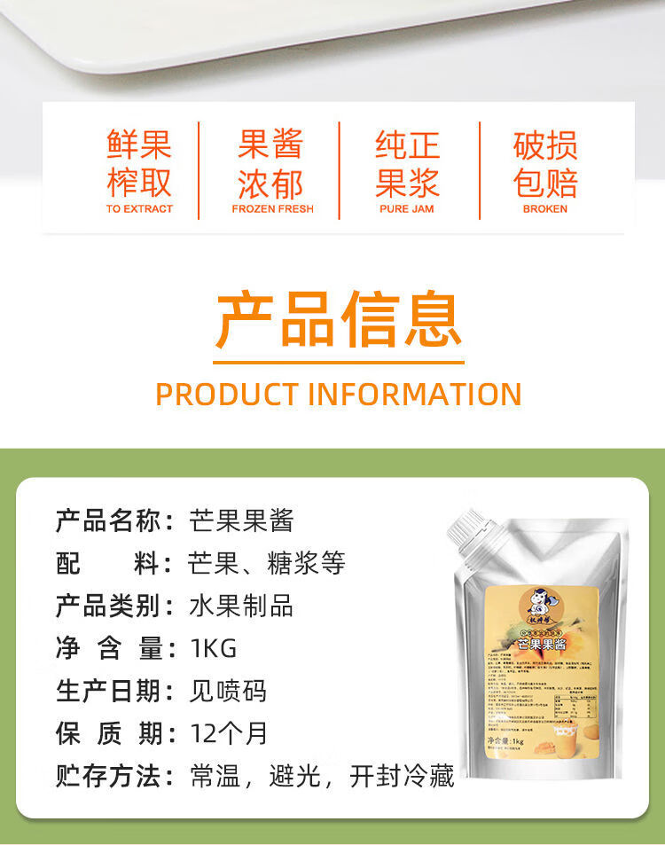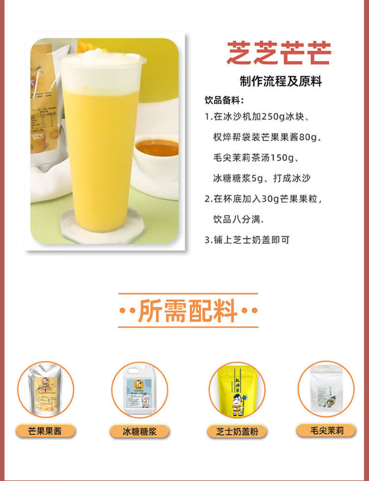 权焠帮杨枝甘露芒果果酱奶茶店专用果茸果泥浓浆印度商用酱冰汤圆 权焠帮芒果酱1kg