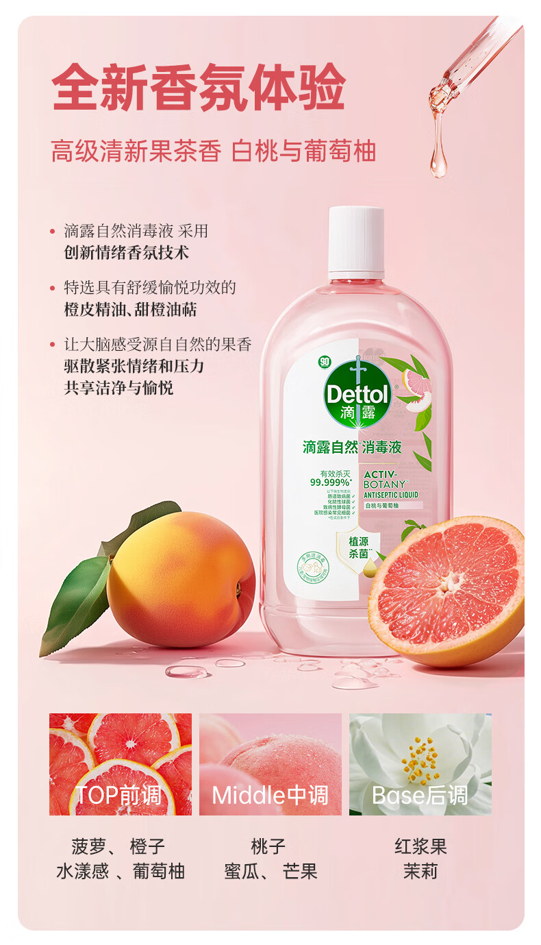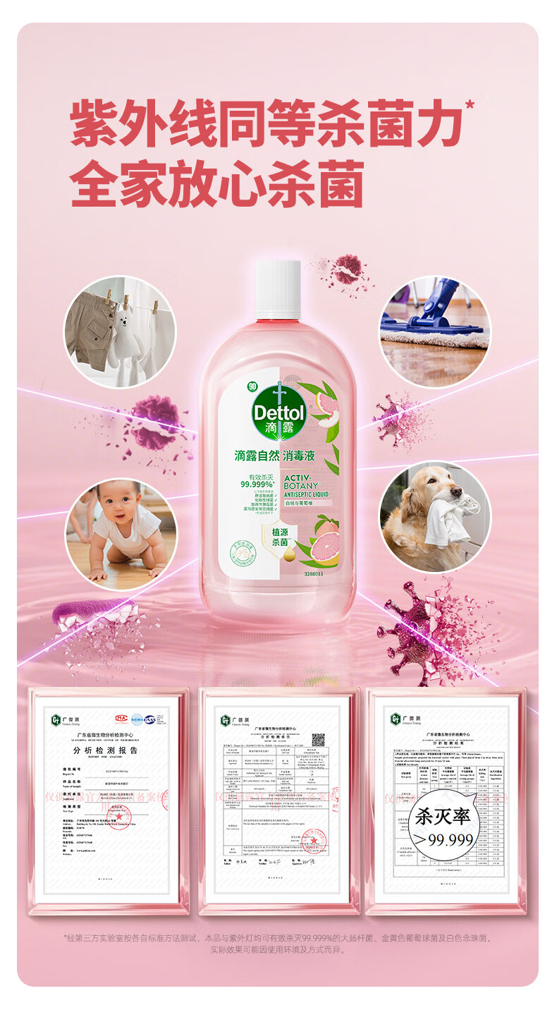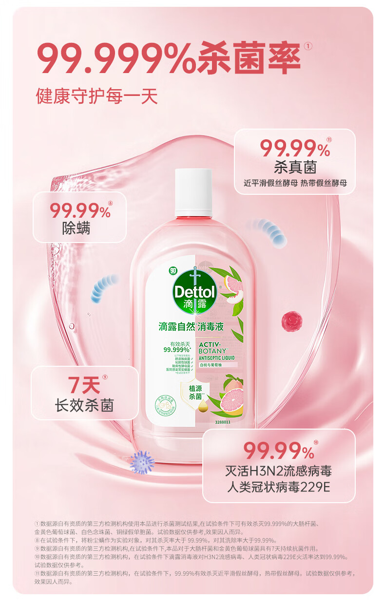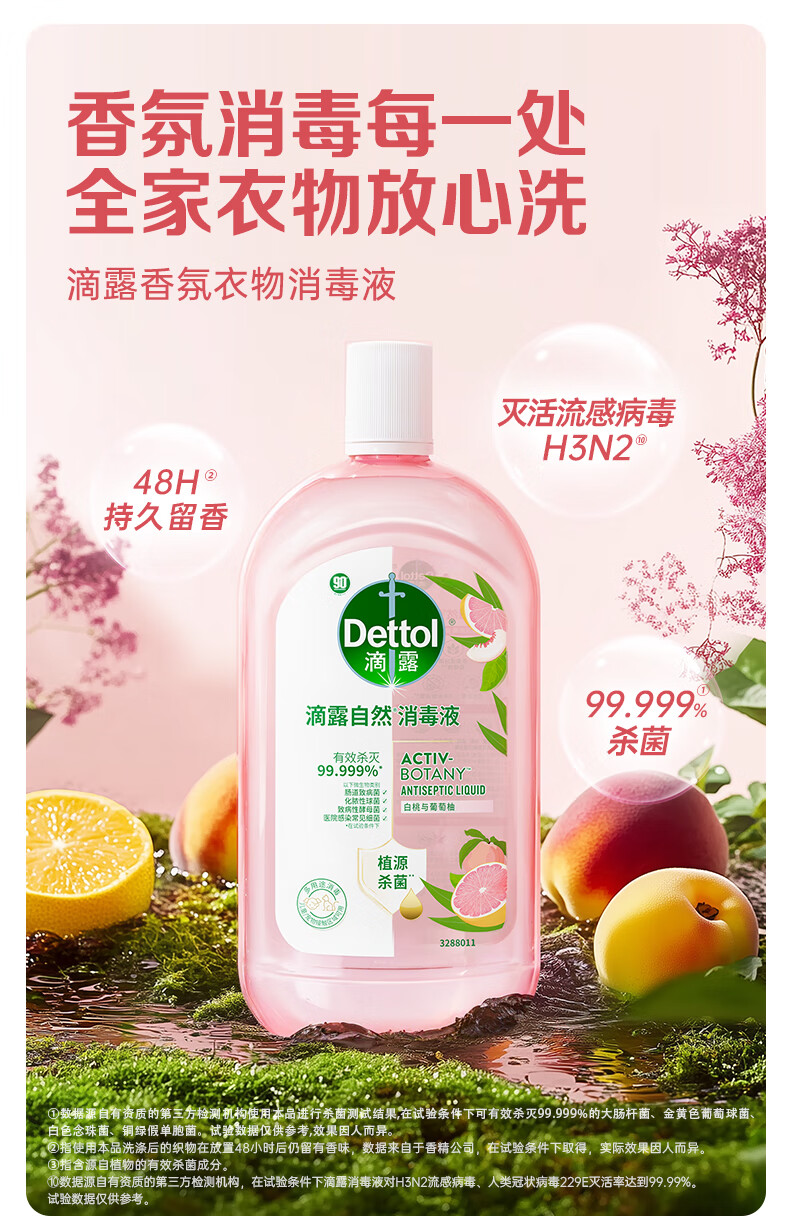 滴露(Dettol)衣物消毒液自然香氛洗衣清洁杀菌除螨除臭48H留香1000ml甲流感