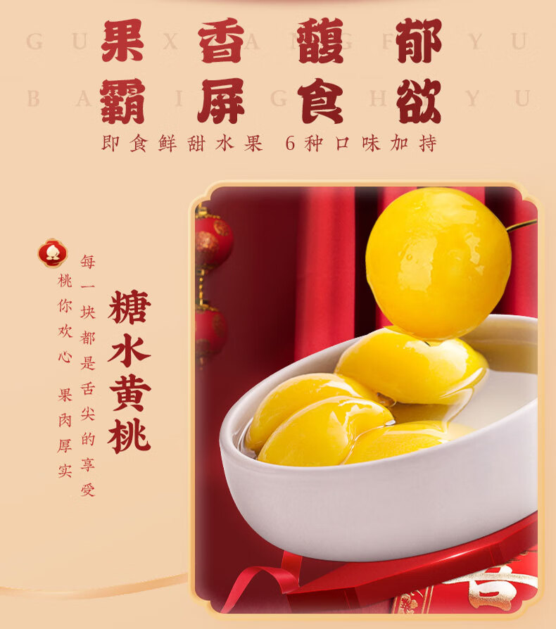 林家铺子八福果水果罐头年货礼盒425g*8罐 黄桃桔子草莓什锦山楂梨杨梅等
