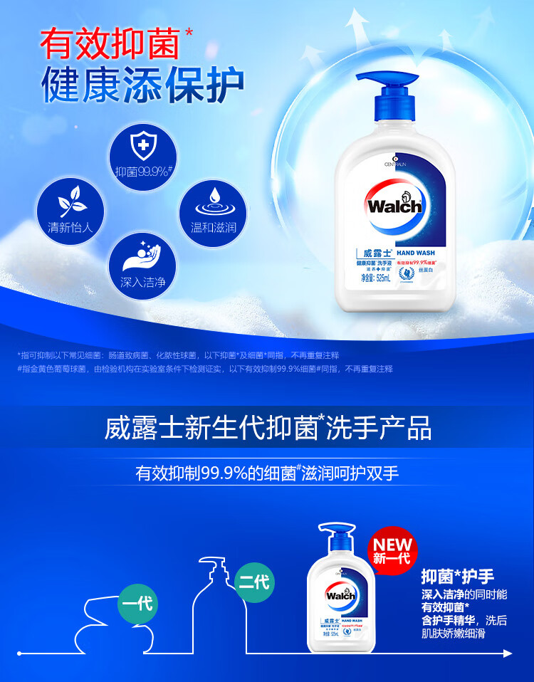 威露士健康抑菌洗手液 3件套(瓶装525ml+525ml*2袋)