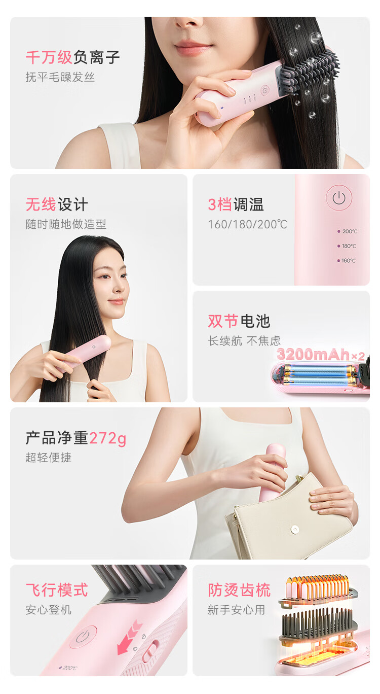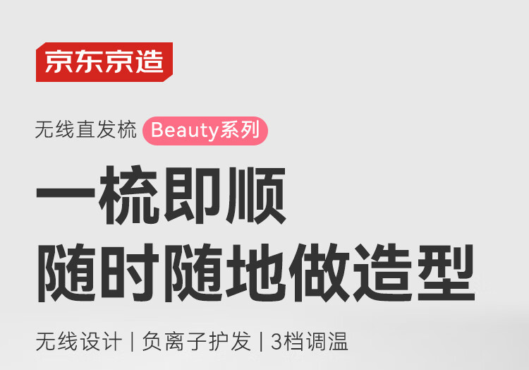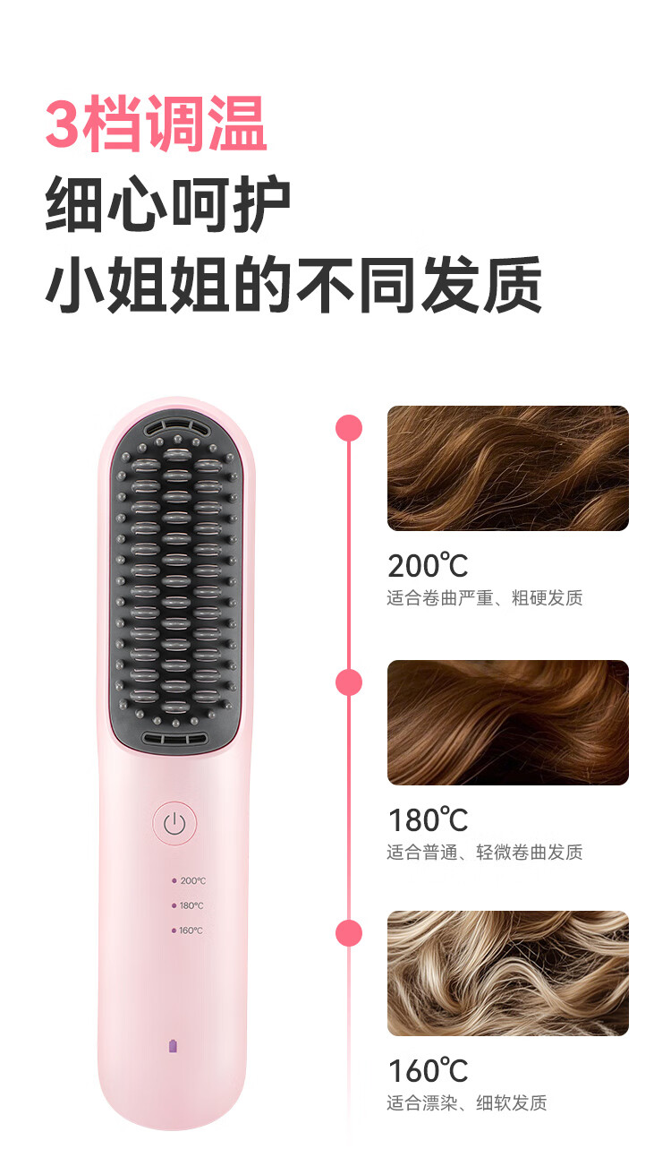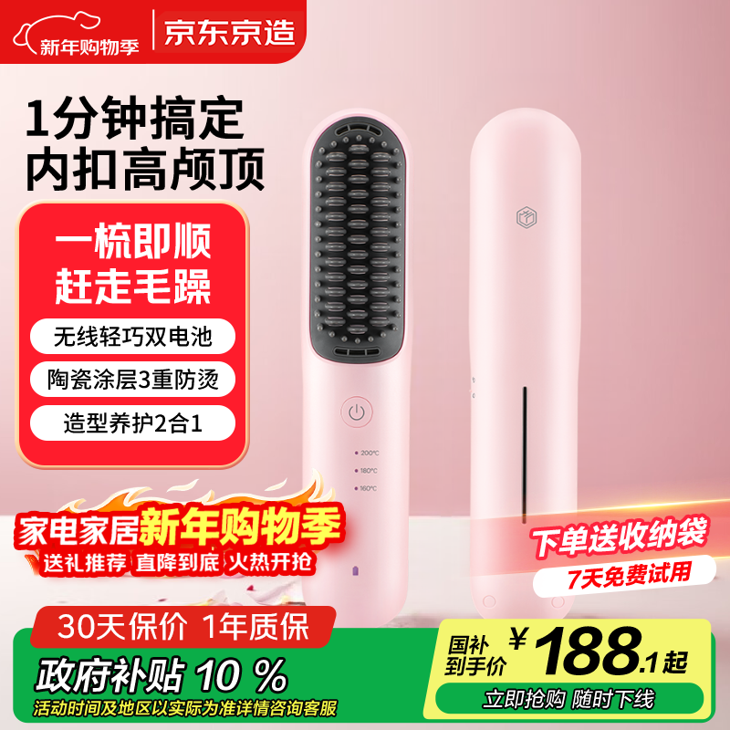 京东京造beauty无线直发梳便携S3内扣蓬松拉直卷发棒造型梳子负离子护发直发棒造型神器生日礼物女新年礼物