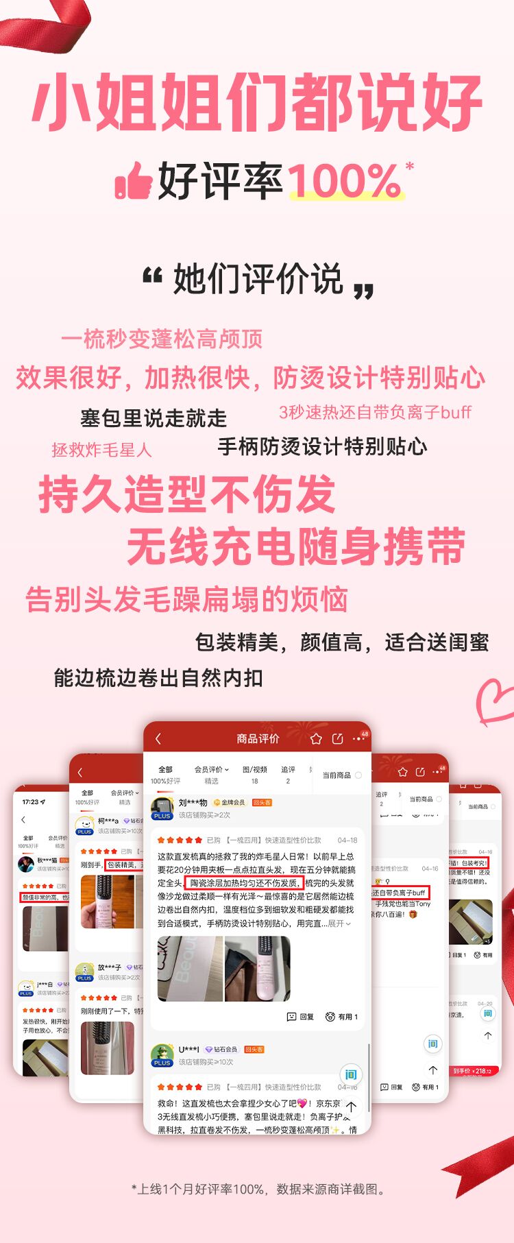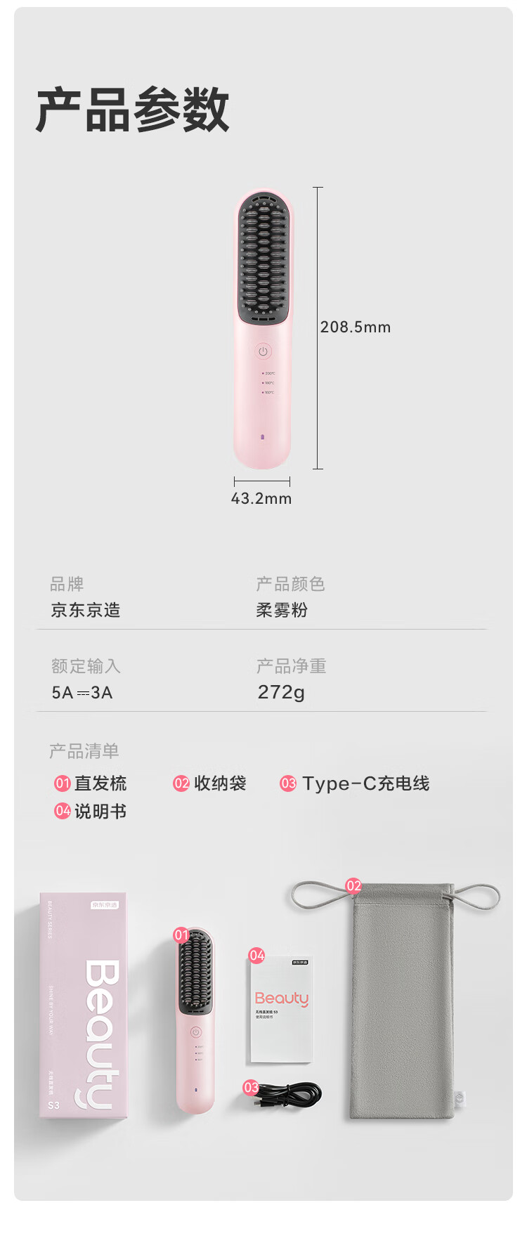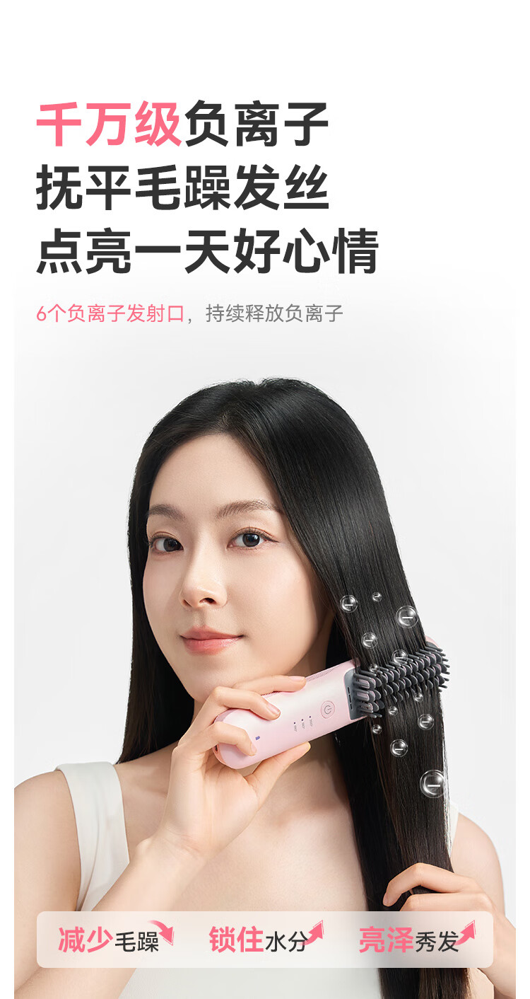 京东京造beauty无线直发梳便携S3内扣蓬松拉直卷发棒造型梳子负离子护发直发棒造型神器生日礼物女新年礼物