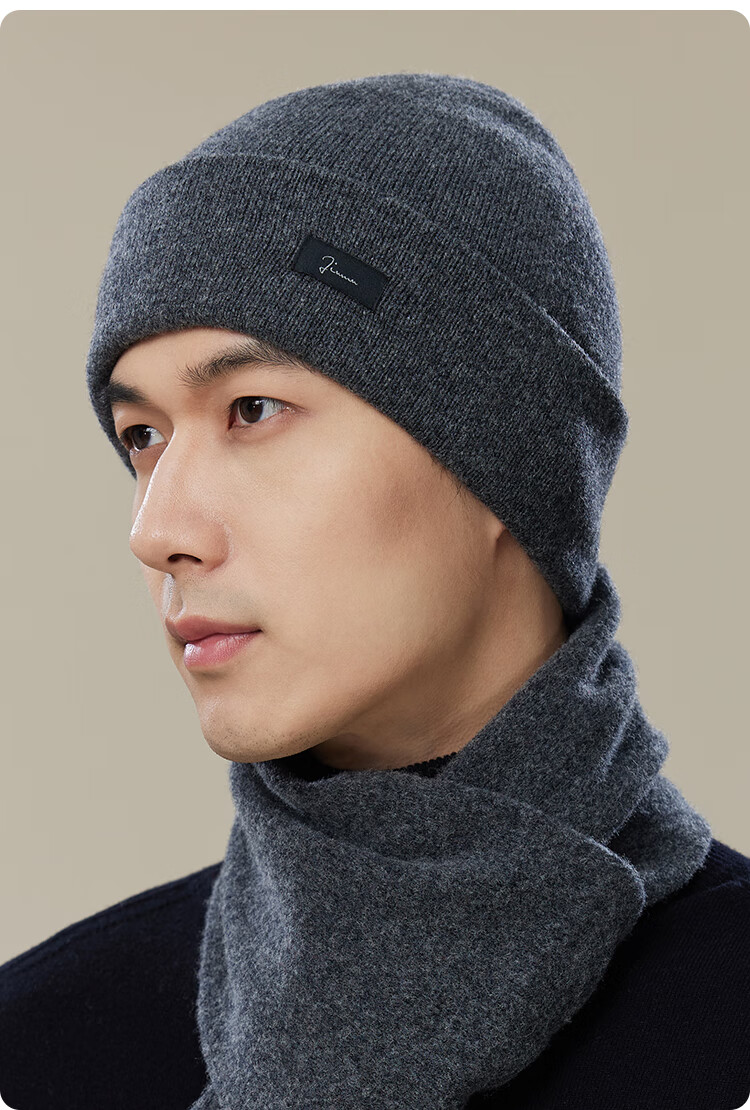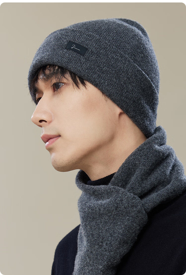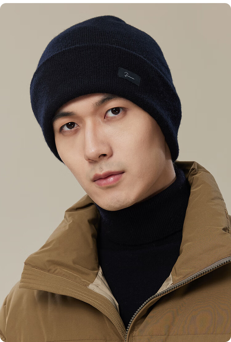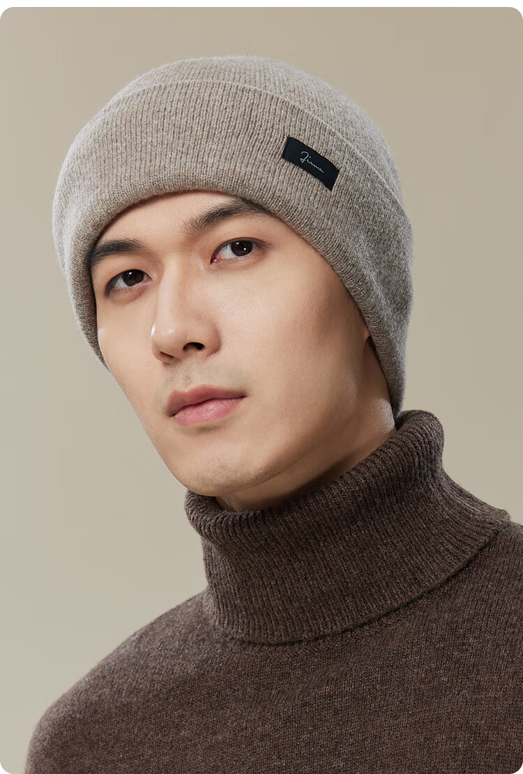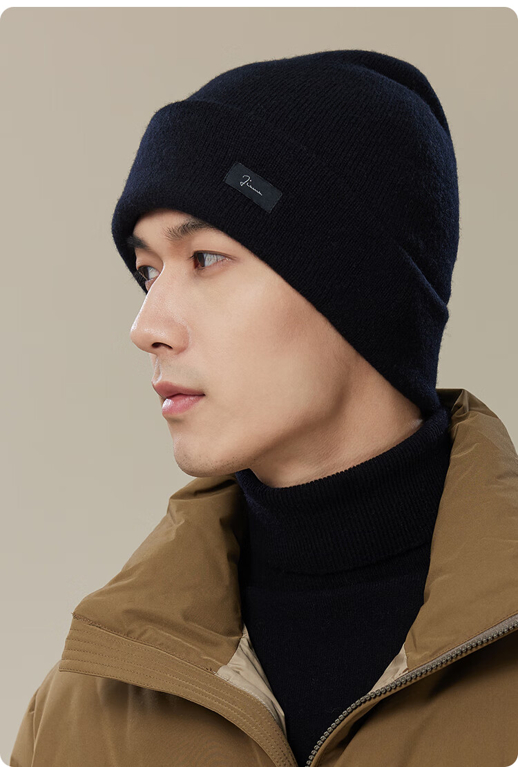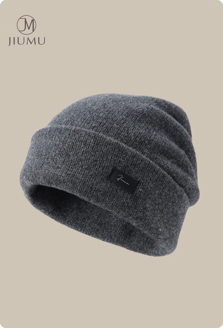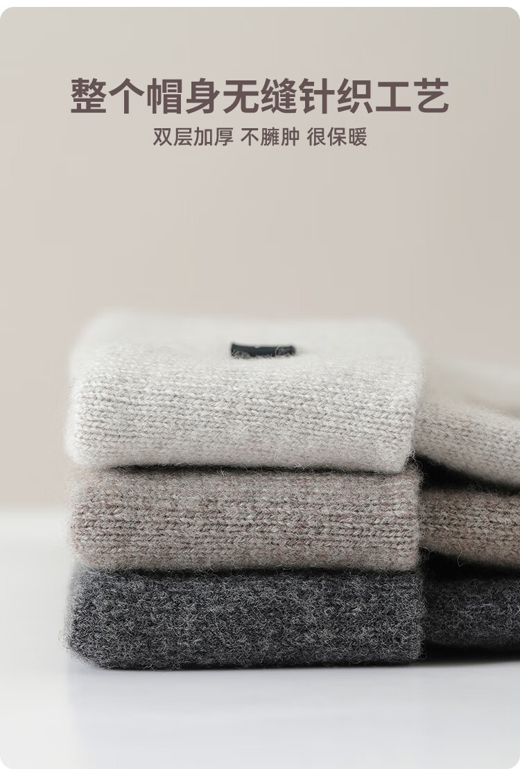 玖慕(JIUMU)纯羊毛保暖毛线帽秋冬加厚针织帽冷帽冬帽户外护耳防寒帽子男冬季
