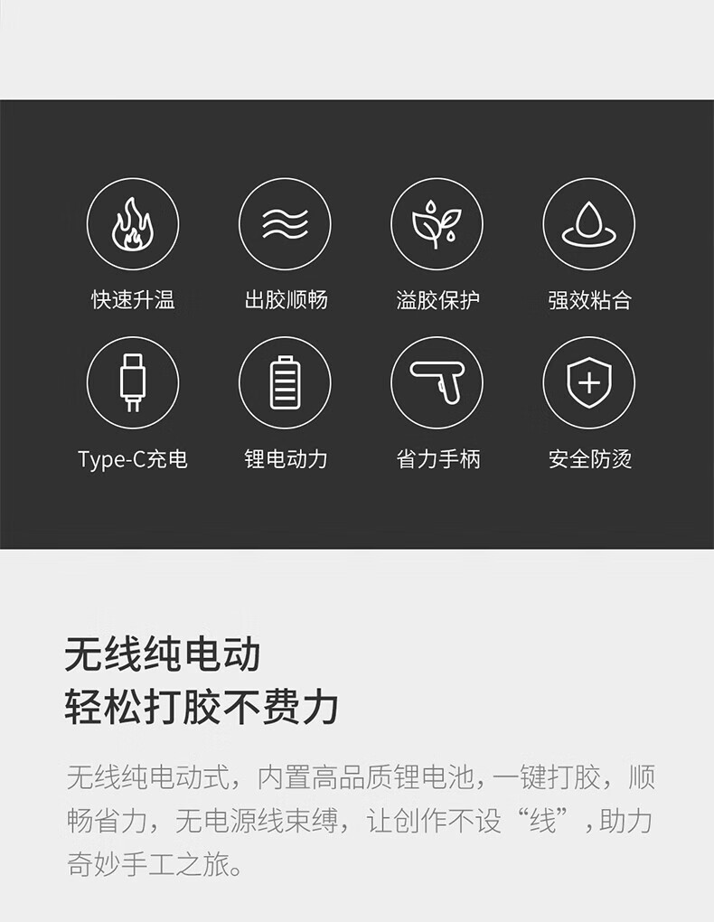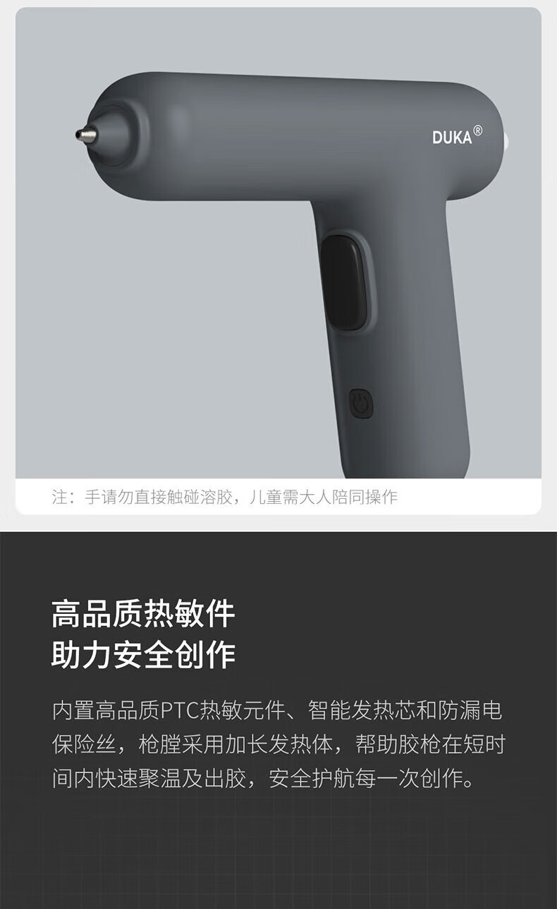 杜克(DUKA)工具热熔胶枪儿童diy 手工制作装条家用充电式胶枪小型强 胶枪送8根胶棒