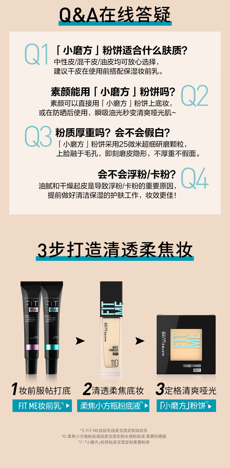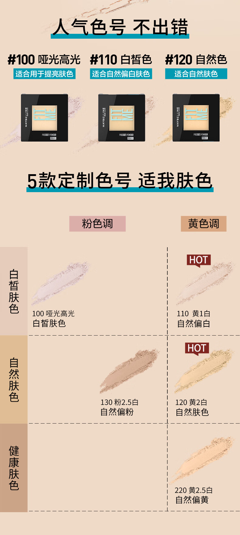 美宝莲FITME小磨方粉饼哑光散粉定妆补妆控油光 120自然肤色新年礼物女