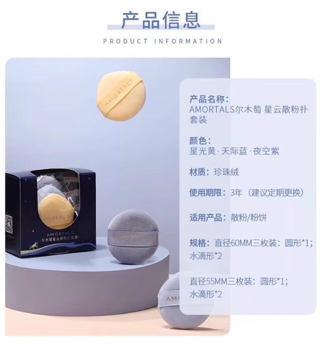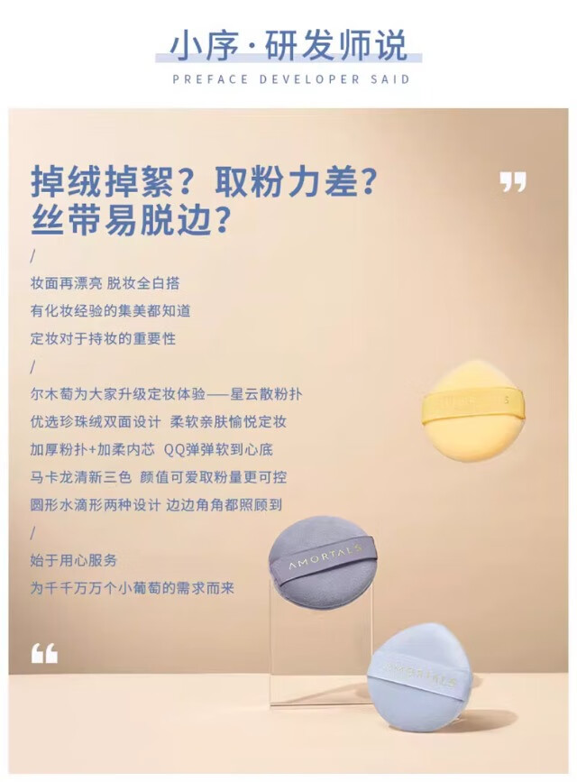 尔木萄星云散粉扑套装气垫蜜粉粉扑加厚软定妆植绒粉扑 小号 3枚