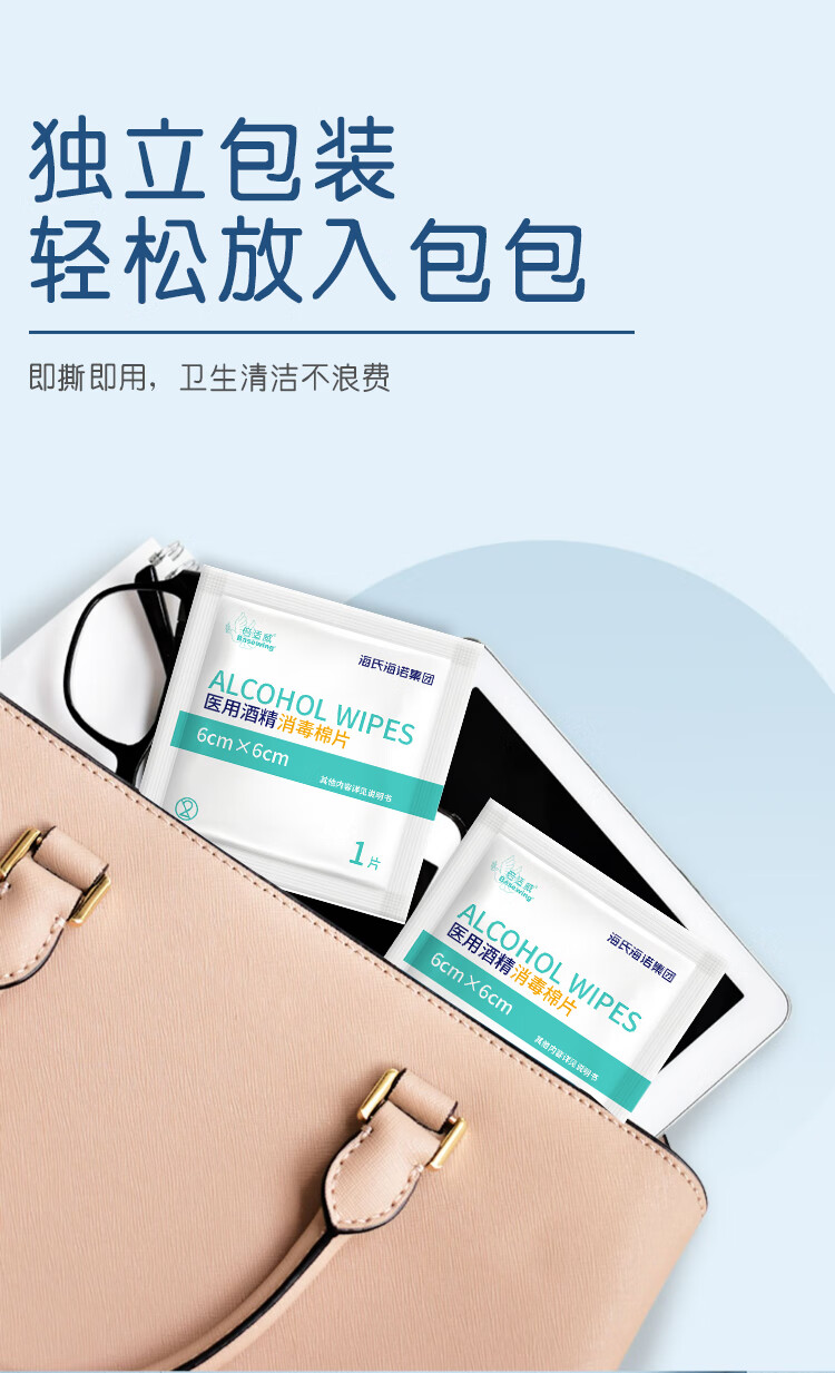 海氏海诺75%医用酒精棉片消毒湿巾200片一次性独立包装擦手机皮肤消毒