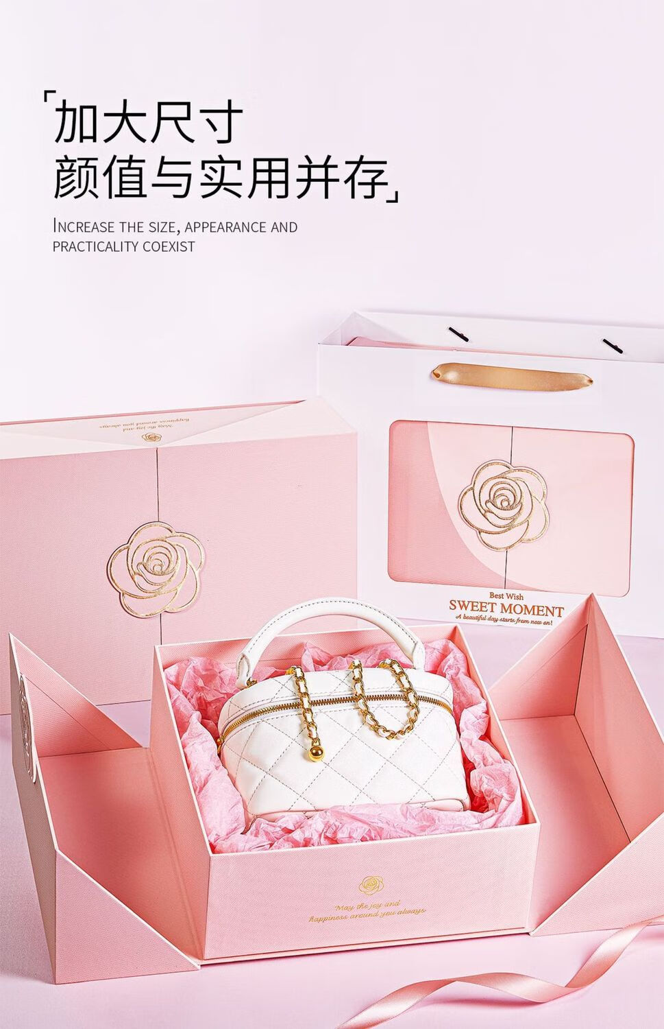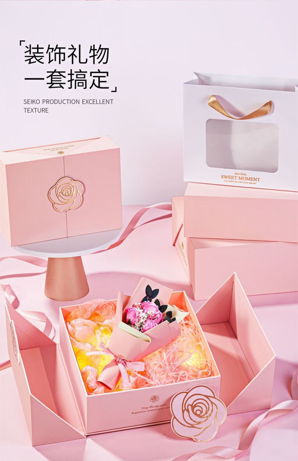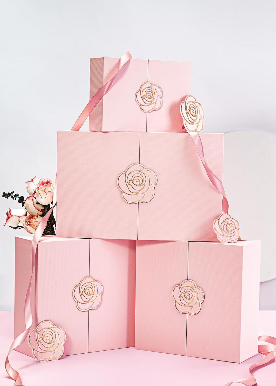 润华年生日礼物盒精致小盒子伴手礼礼盒空盒口红礼品盒包装盒大号高级感 玫瑰礼盒+拉菲草 磁吸双开款5号34*22*12cm