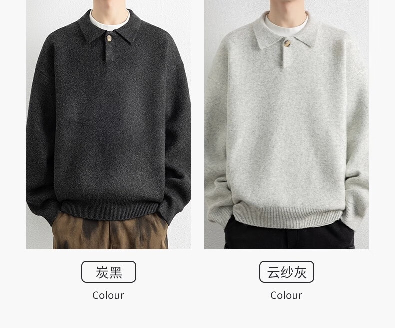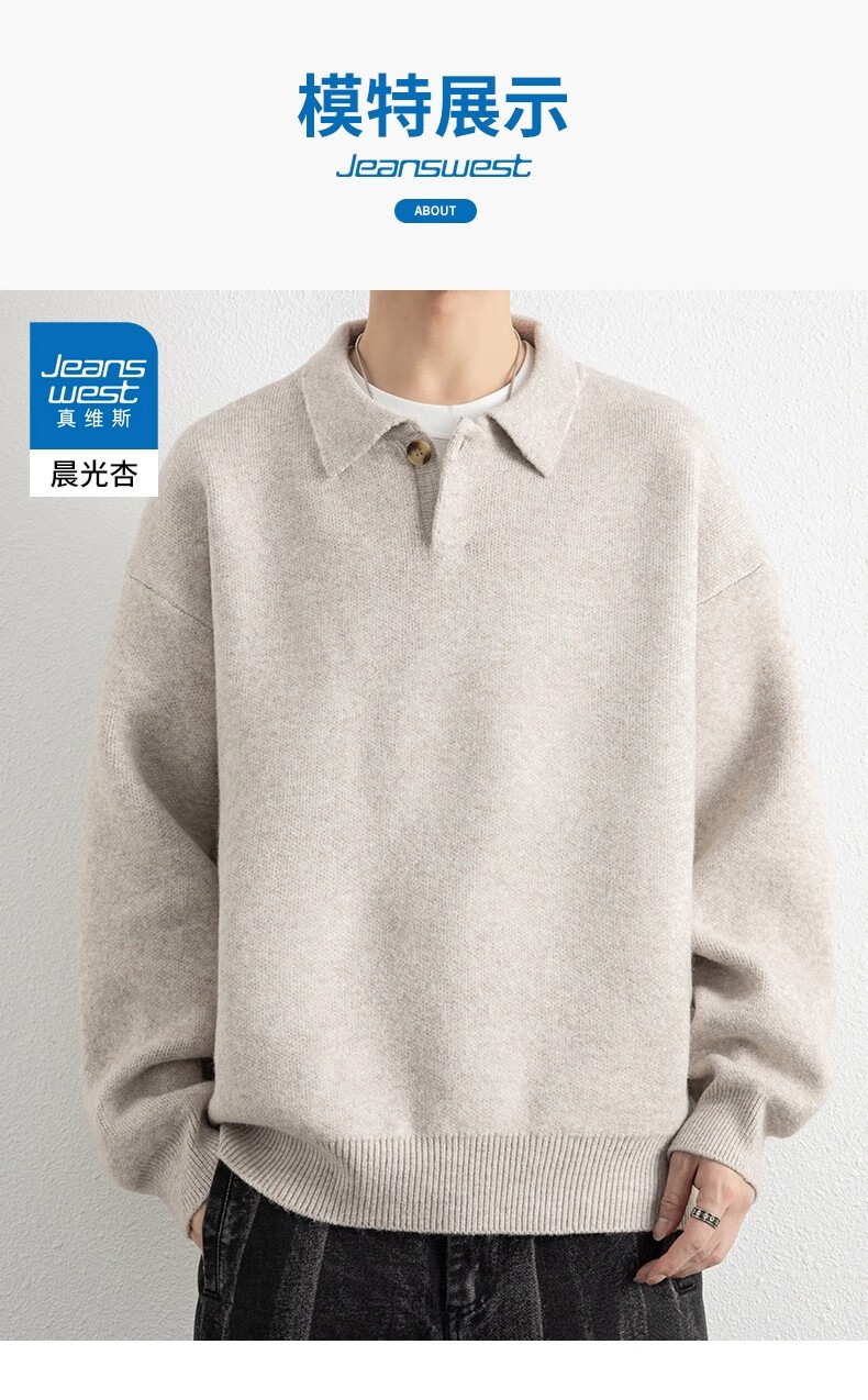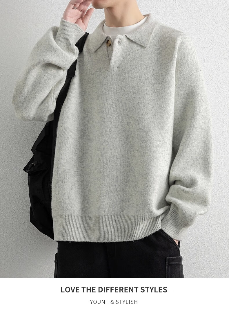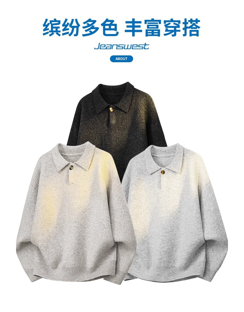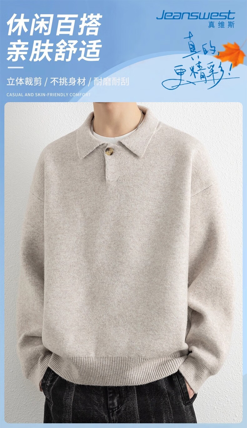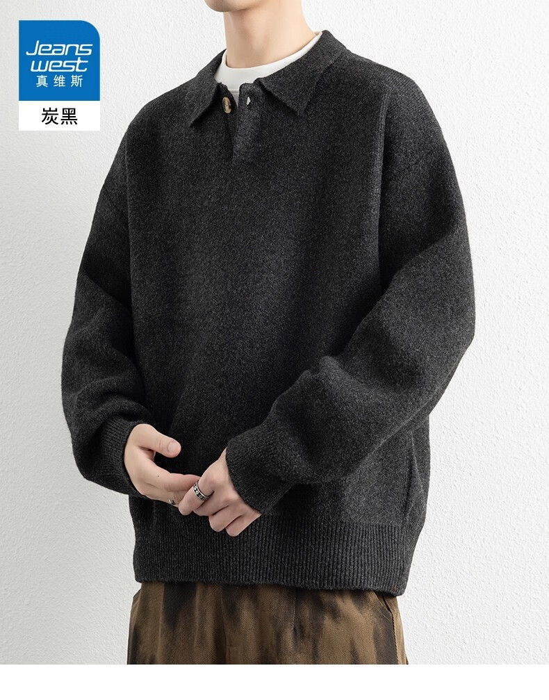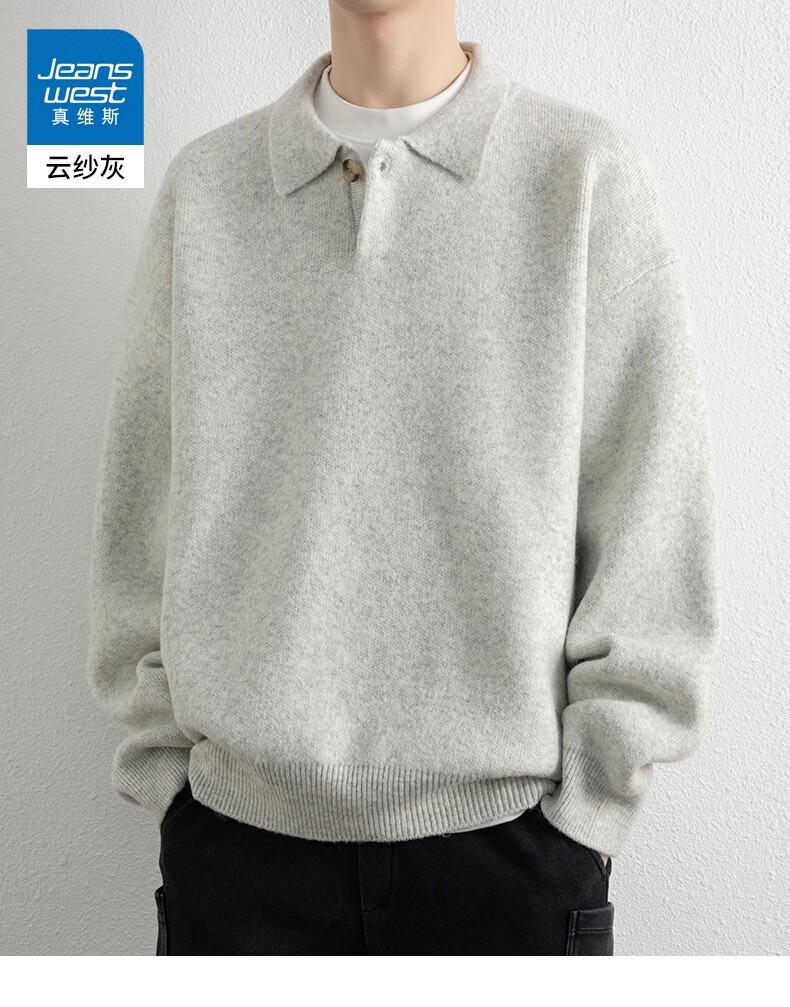真维斯(Jeanswest)美式复古翻领毛衣男2025秋季潮流宽松百搭休闲绵羊毛针织衫 云纱灰 【舒适亲肤】 XL 【建议140-160斤】