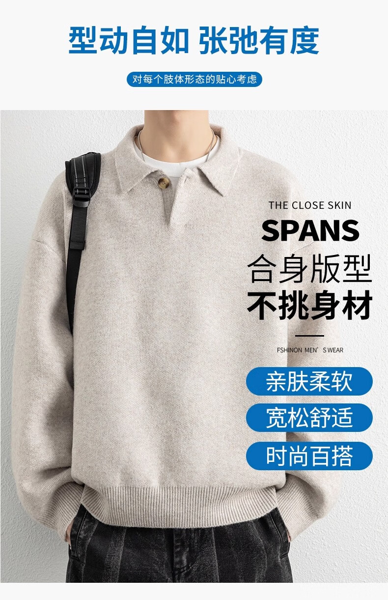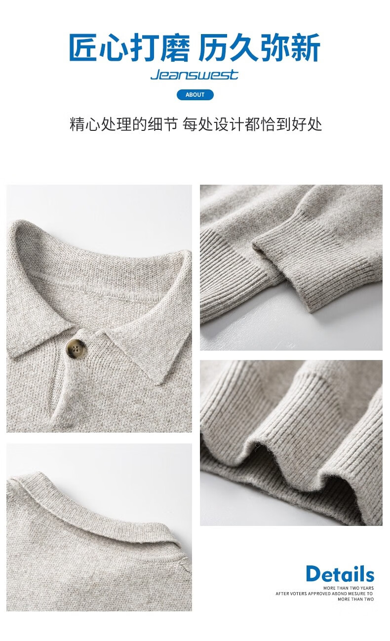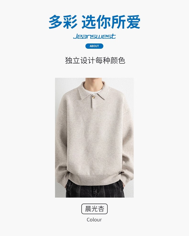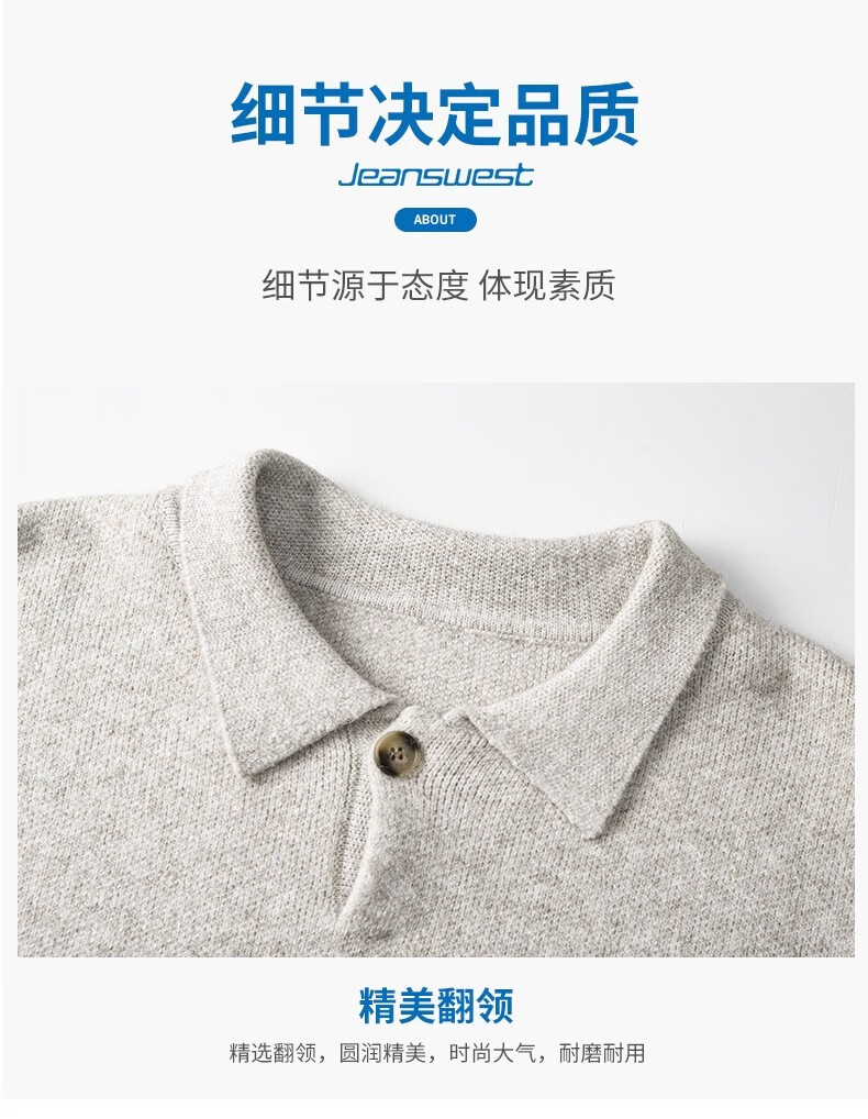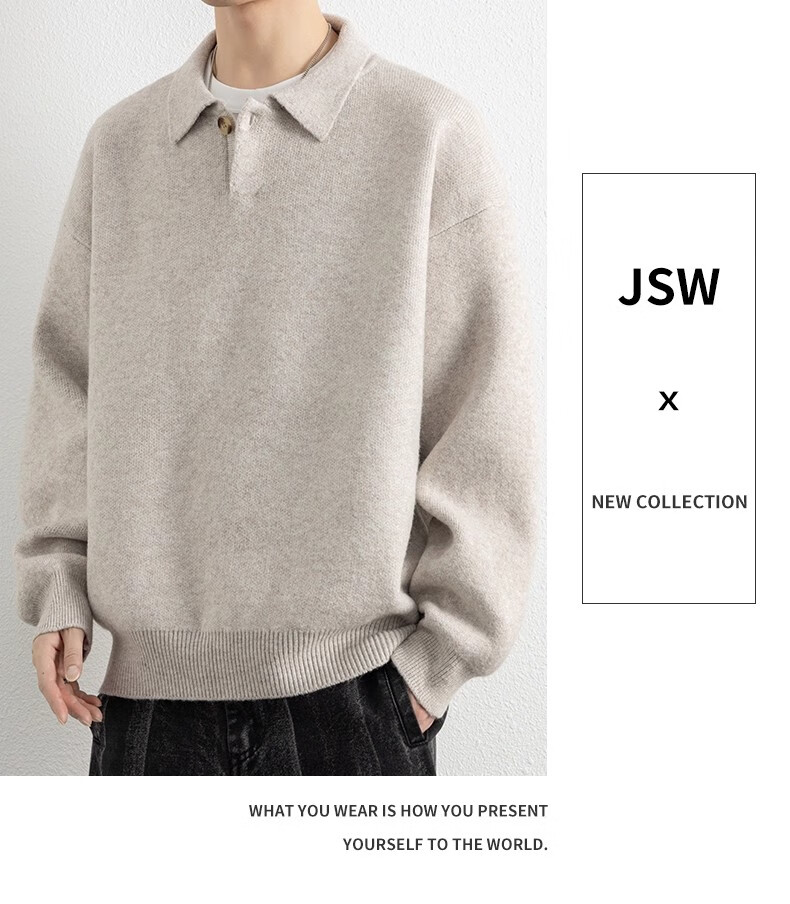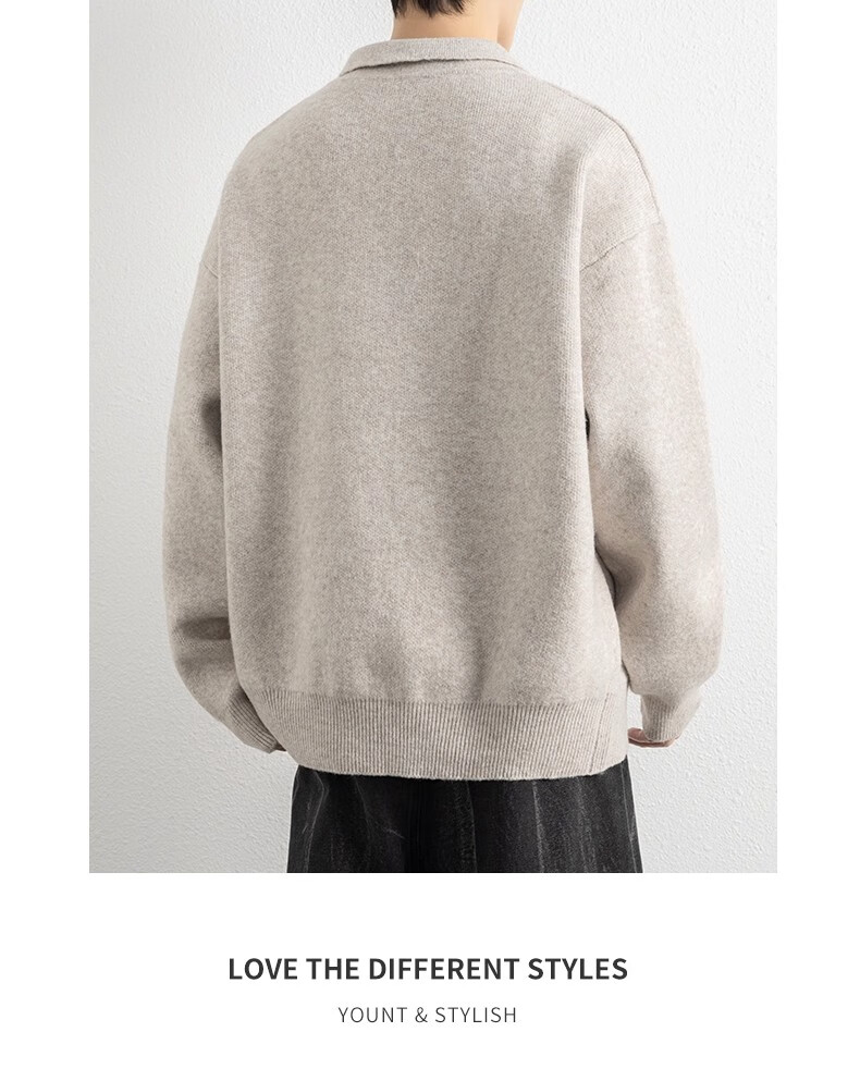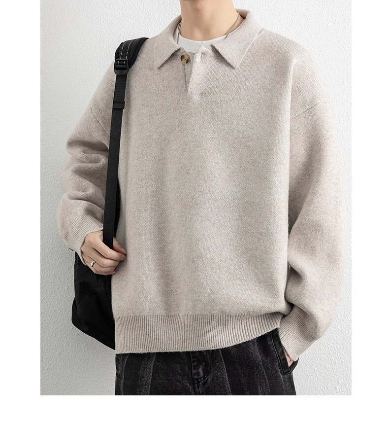 真维斯(Jeanswest)美式复古翻领毛衣男2025秋季潮流宽松百搭休闲绵羊毛针织衫 云纱灰 【舒适亲肤】 XL 【建议140-160斤】