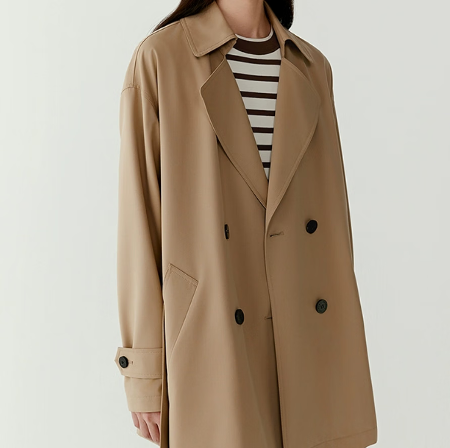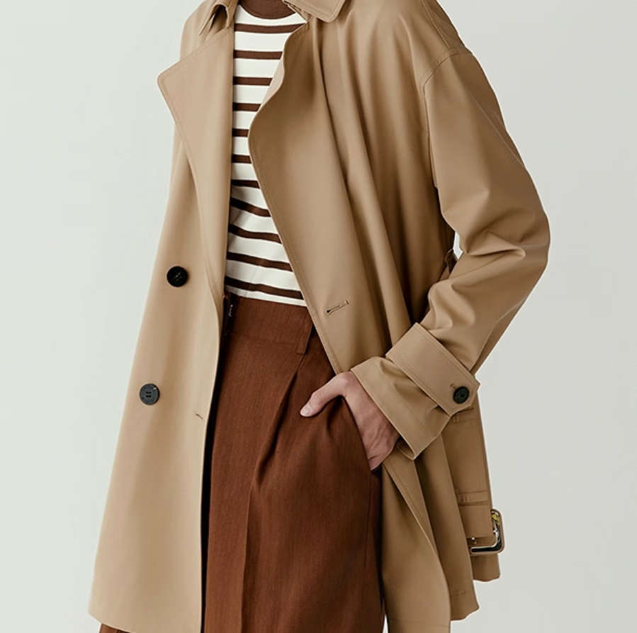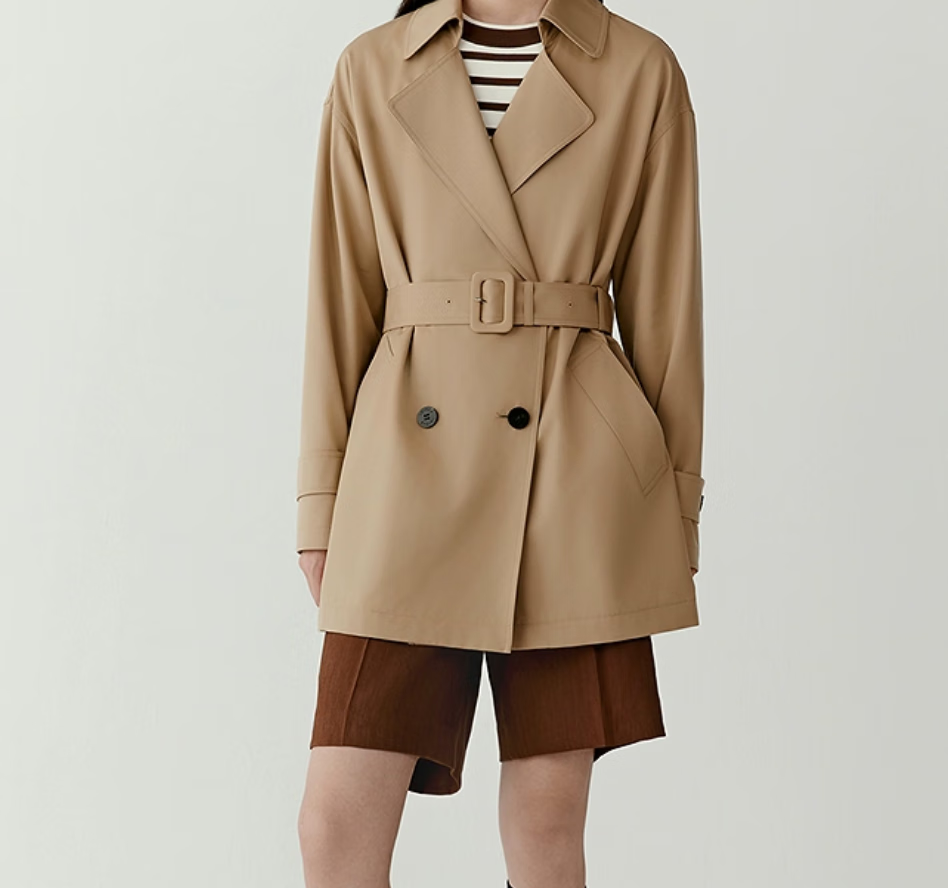 之禾(ICICLE)【经典】女装25春新款丝羊毛平纹布双排扣露珠风衣 驼色 S