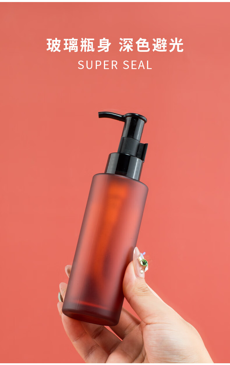ilbu按压卸妆油空瓶精华液玻璃卸妆水长嘴乳液分装瓶避光身体乳精油 油泵瓶 100ml 1瓶