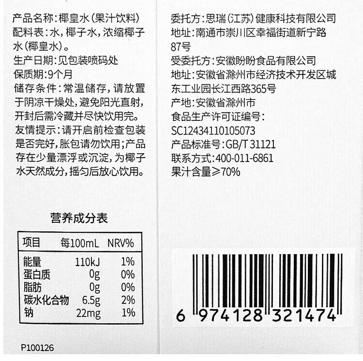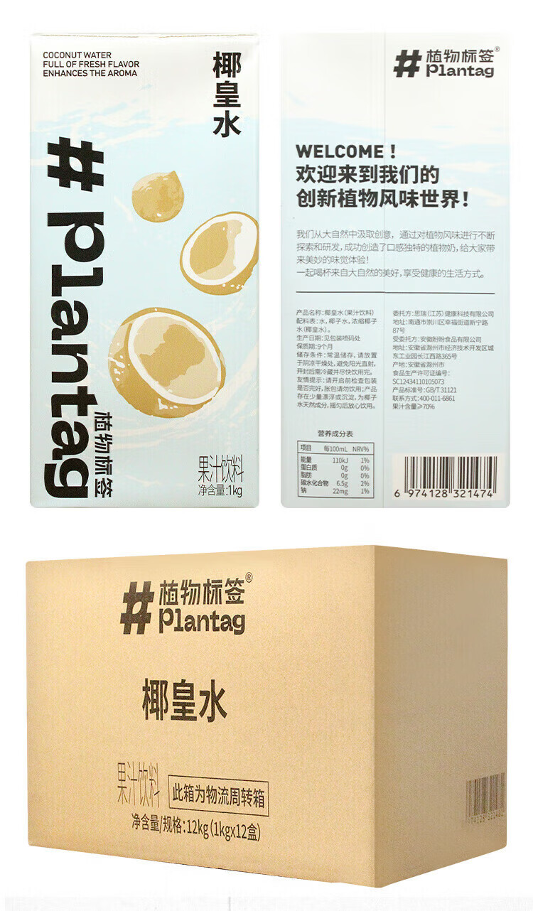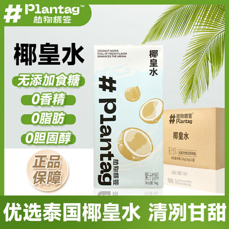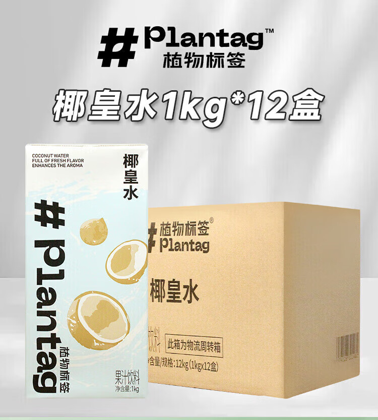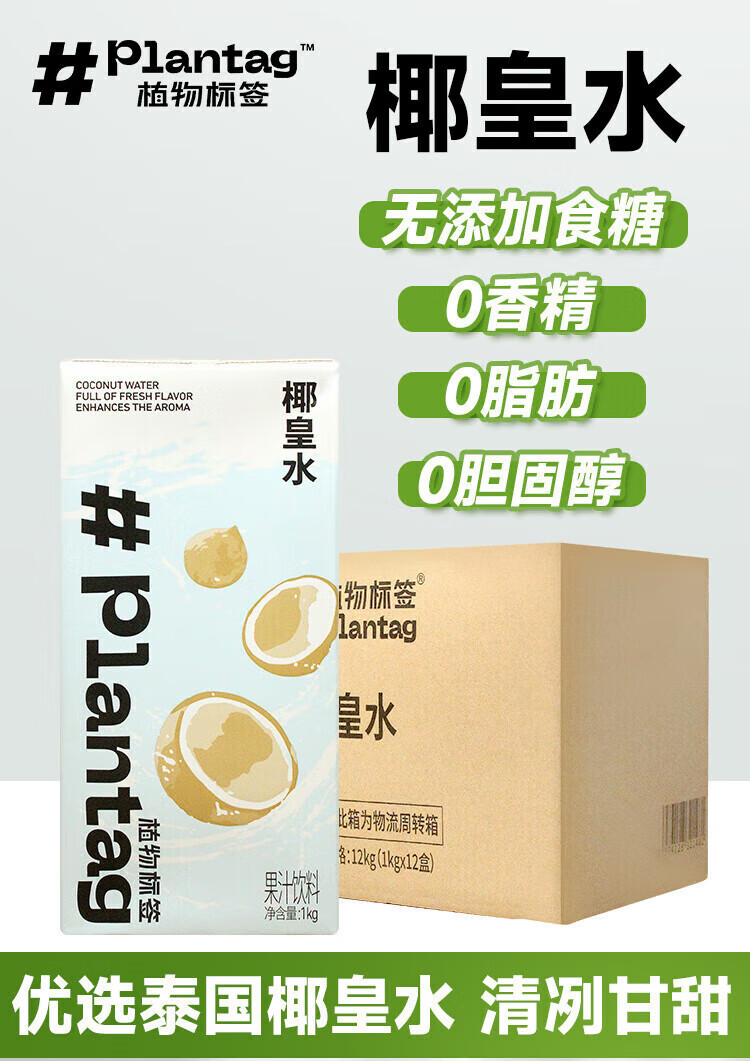 植物标签(Plantag)椰皇水鲜椰子水鲜榨椰青水椰汁生打椰果汁奶茶店商用整箱 【植物标签】椰皇水1kg